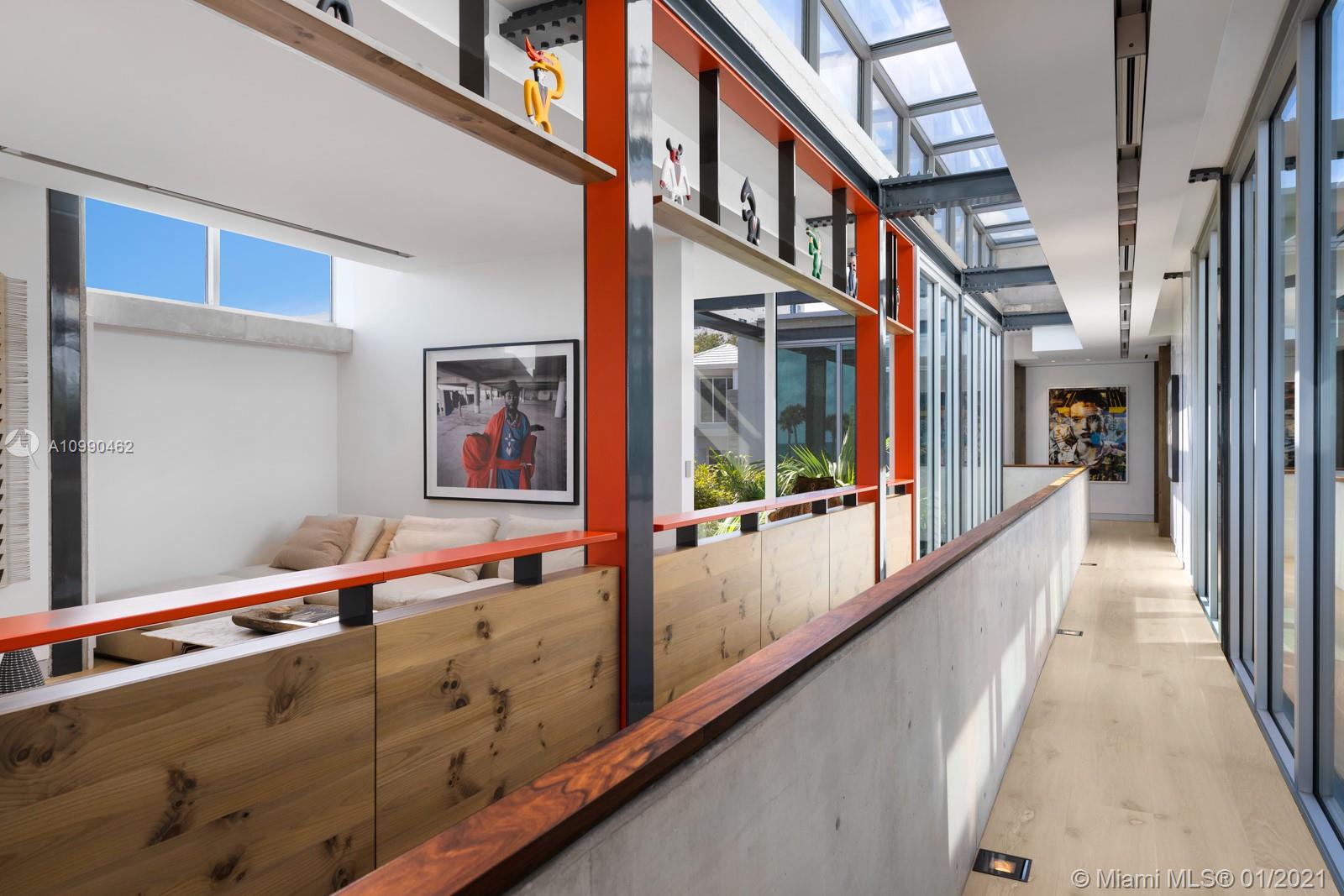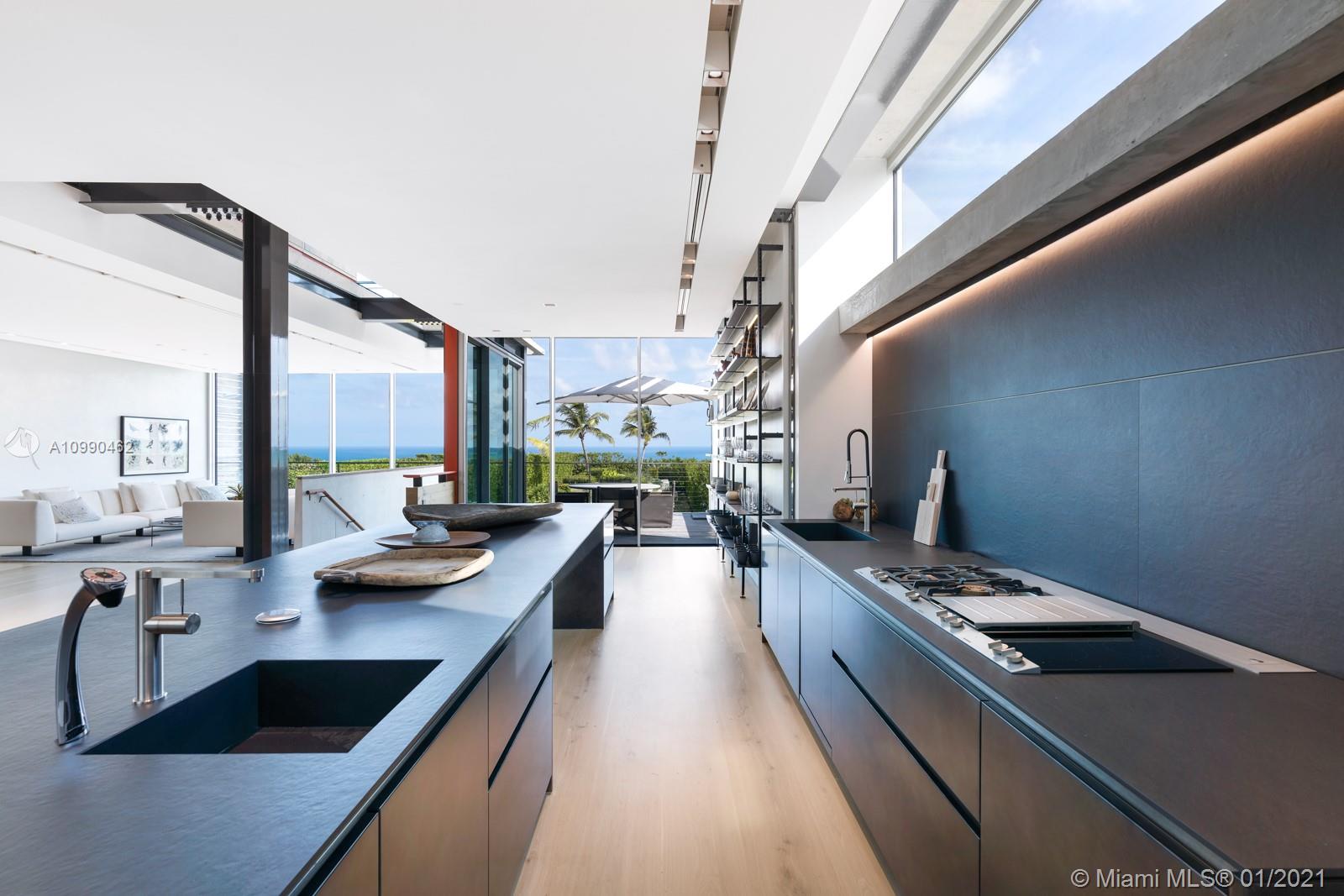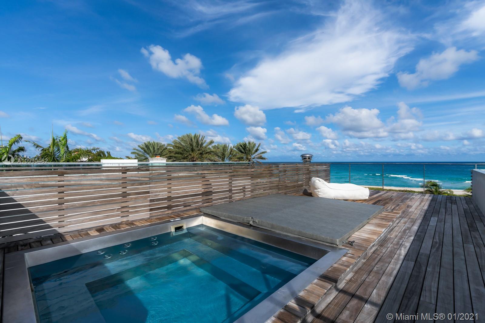 An architectural masterpiece in Miami Beach’s only private oceanfront residential enclave. The home’s exposed steel structure and exquisite design reveal a rare balance of brilliant craftsmanship & functionality, with resort-style amenities and panoramic ocean views for the ultimate Miami lifestyle. Interior features include Victrocsa “invisible wall” windows, Boffi Kitchen with Gaggenau appliances, stunning master suite, custom Porro closets, Boffi bathrooms, Valli Valli door fixtures, Savant smart home system, elevator, office, guest room, and rooftop deck with jacuzzi. Fully equipped first level retreat with home theater, spa & steam room, cold plunge, sauna, & Technofit gym. Expansive outdoor entertaining deck with summer kitchen, cabana, oceanfront garden & pool with 60 ft swim lane.
