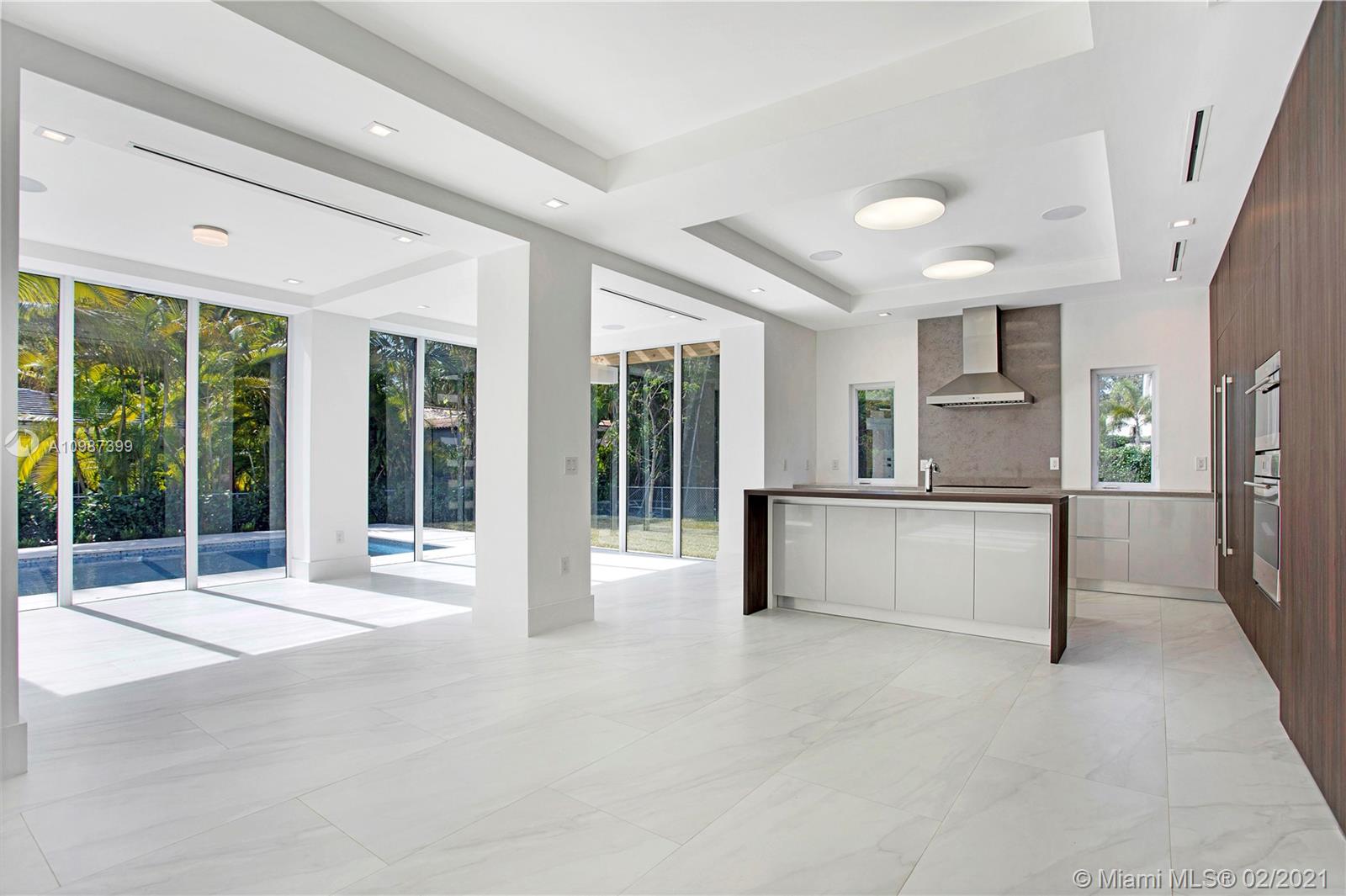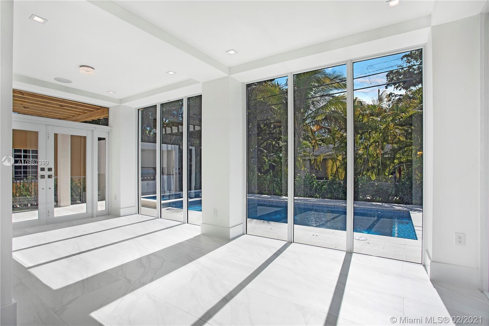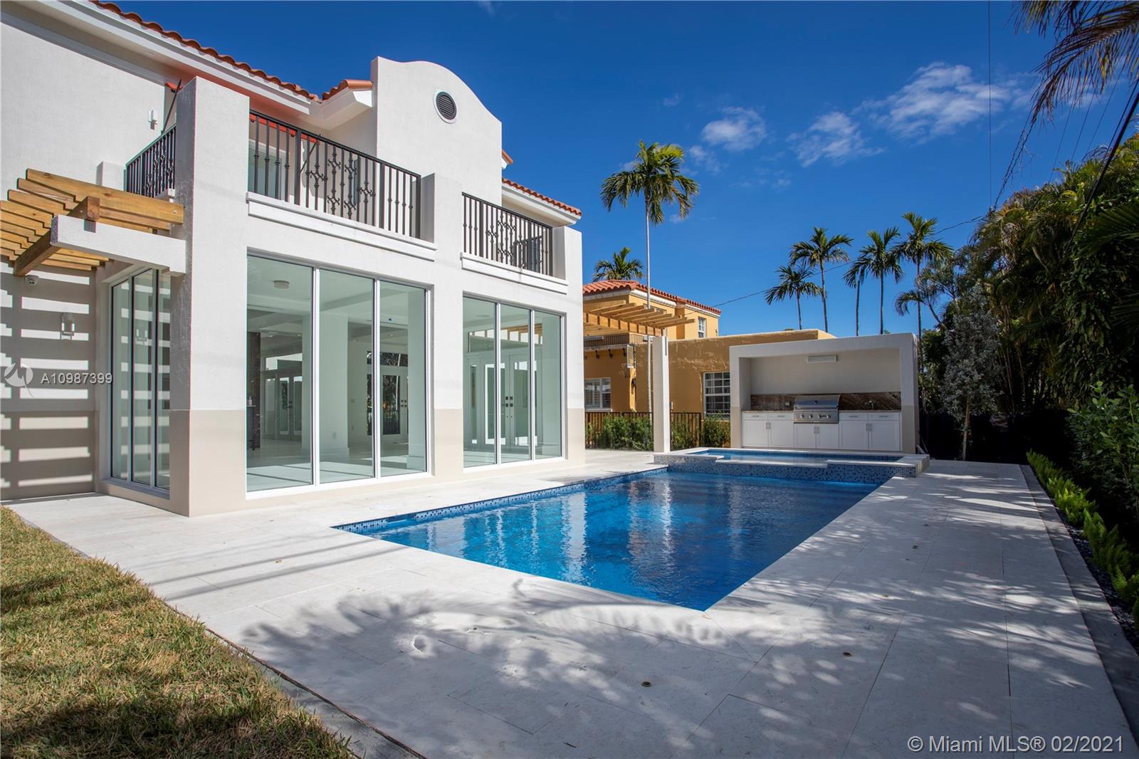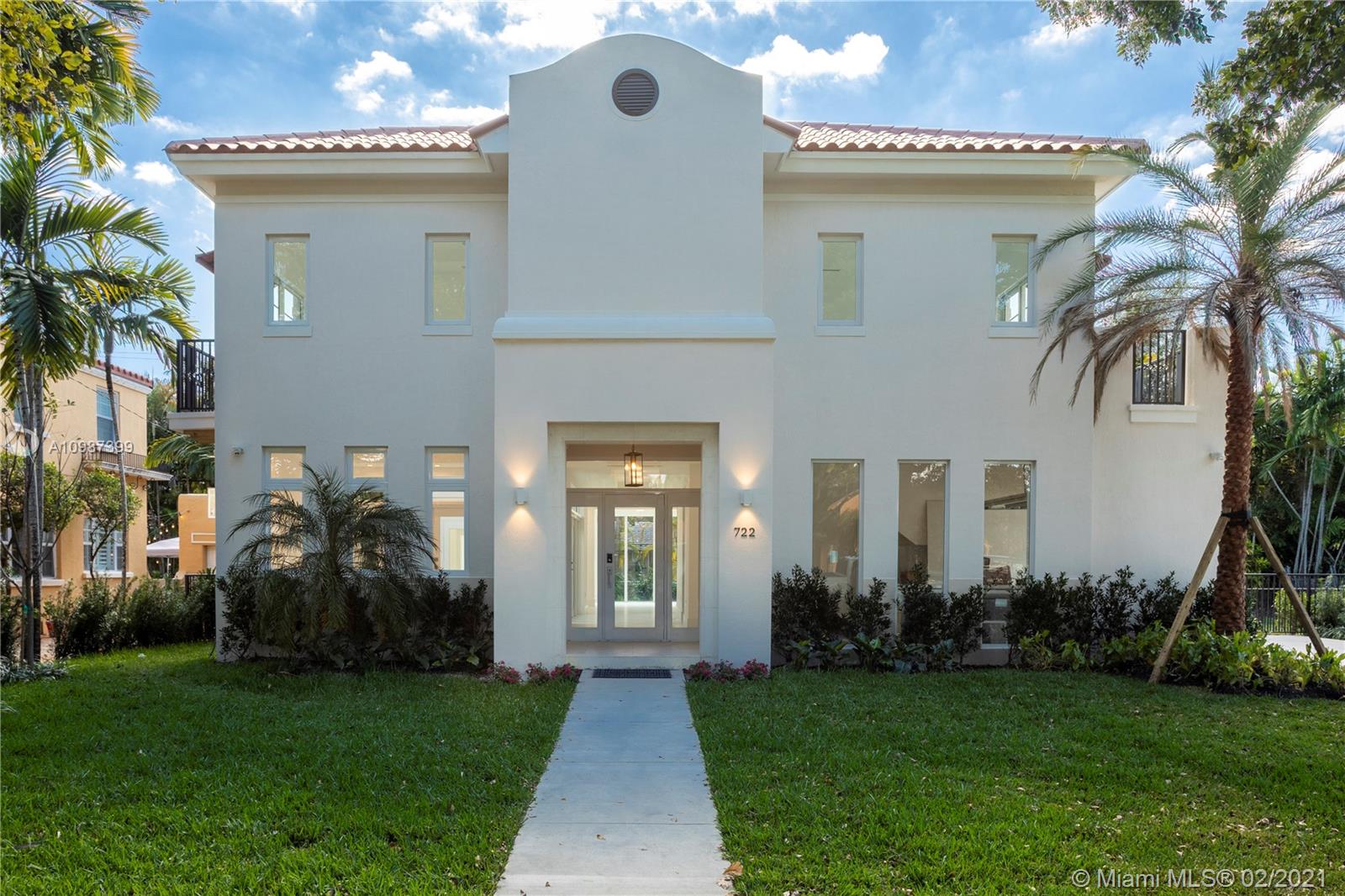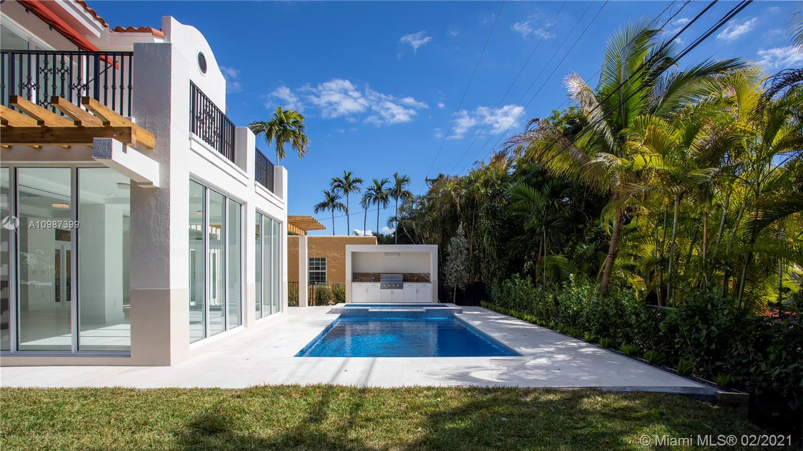 Turn-key, two-story, new construction home walking distance to the heart of downtown Coral Gables. Natural light floods the dramatic open living spaces and high ceilings. This luxurious home boasts 4 bedrooms with ensuite baths, walk-in closets and terraces. Perfect for families and entertaining, main level includes multiple living areas anchored by a modern kitchen with Sub-Zero and Wolf appliances, walk-in pantry and oversized island. A resort-style pool with spa and Baja shelf, summer kitchen, courtyard and cabana bath offers the quintessential retreat. Ideally located blocks from Miracle Mile, the best schools, parks, restaurants and shops in prestigious Coral Gables.