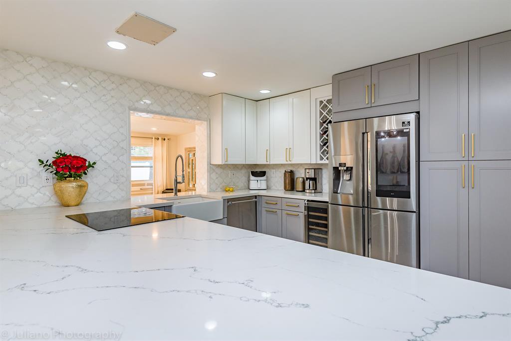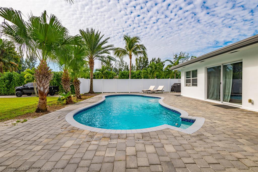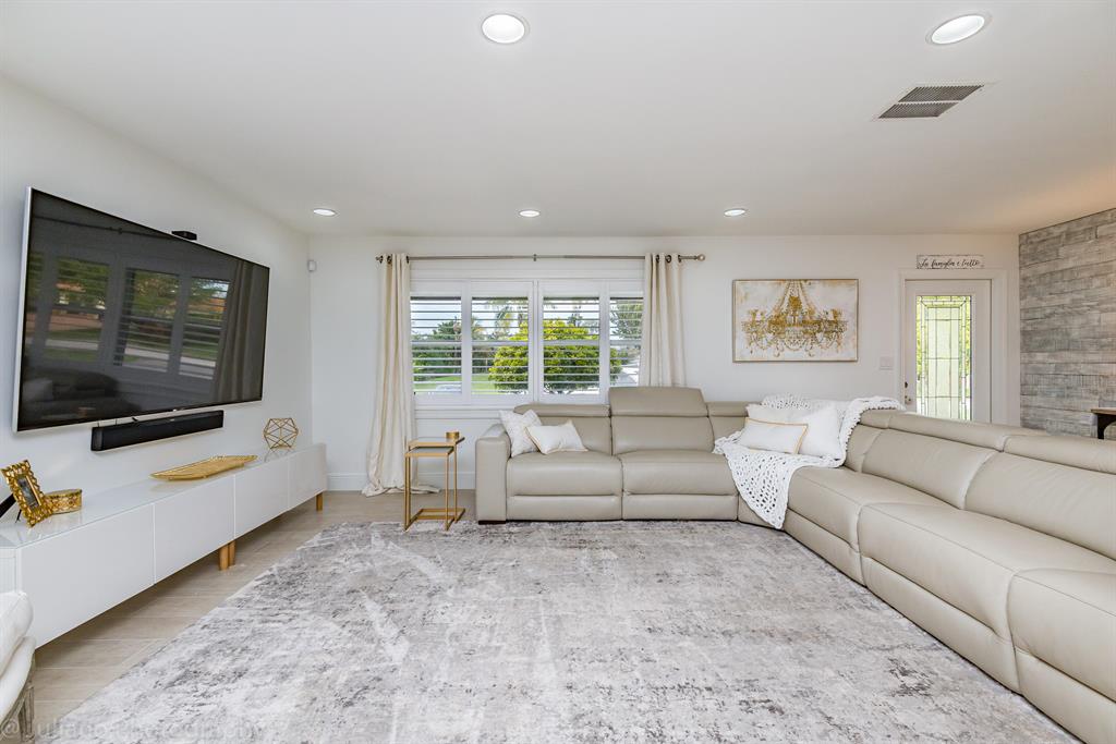 TURN KEY! Renovated down to the studs! Are you ready to hear about this stunning property?New, beautiful flooring, freshly painted walls, and new baseboards fill this home (2020). Smart-phone, color changing recessed lighting installed in the living-room and kitchen is perfect for parties, game day, holidays, or even just simple dimming. The living room has upgraded plantation shutters and a beautiful 3/4 glass hurricane impact front door for optimal lighting (and aesthetics!). The house has Miami-grade hurricane impact windows (2016), and a spanking brand new roof (2020) to ensure safety and longevity for the storms to come.The kitchen features a waterfall edge, faux marble quartz countertop, a luxurious mother or pearl and marble backsplash, all new appliances including smart