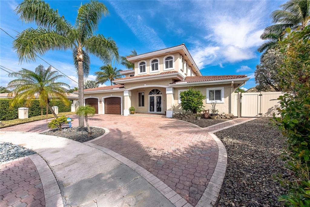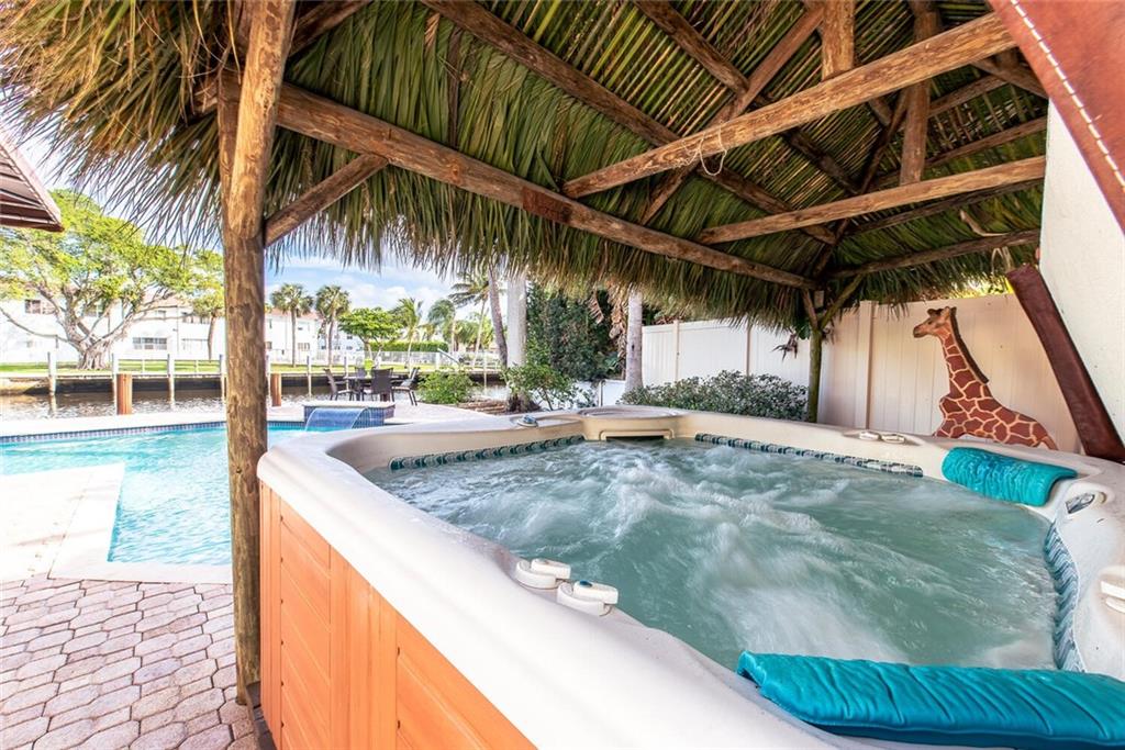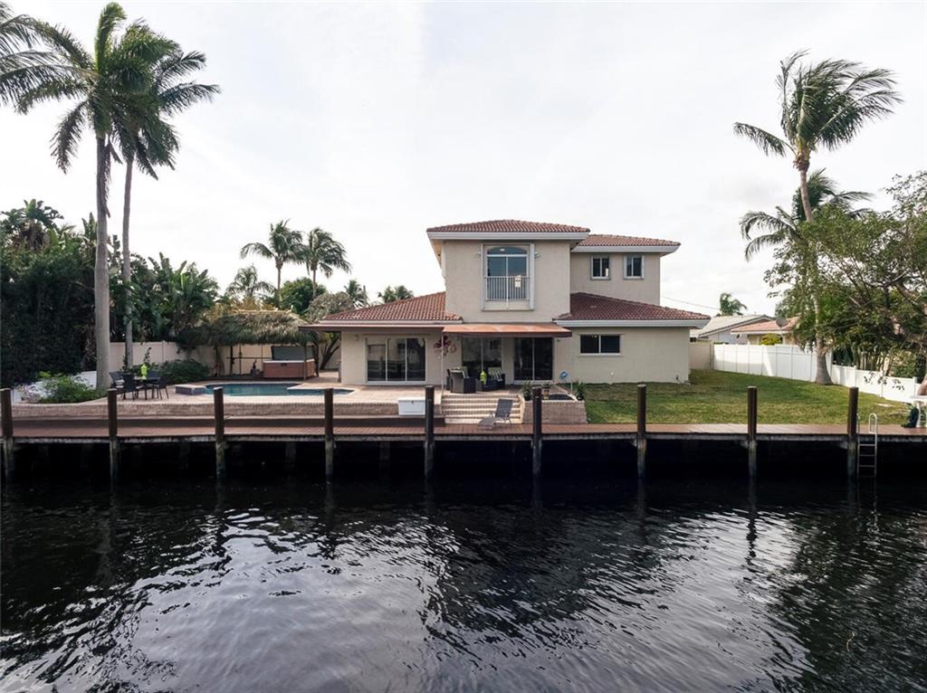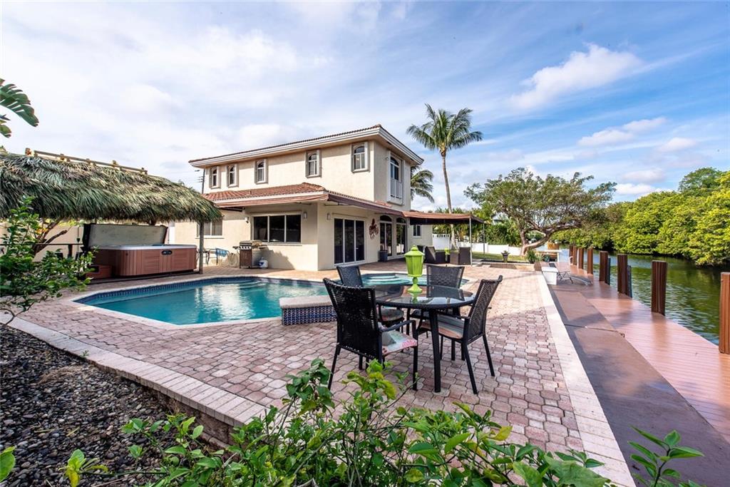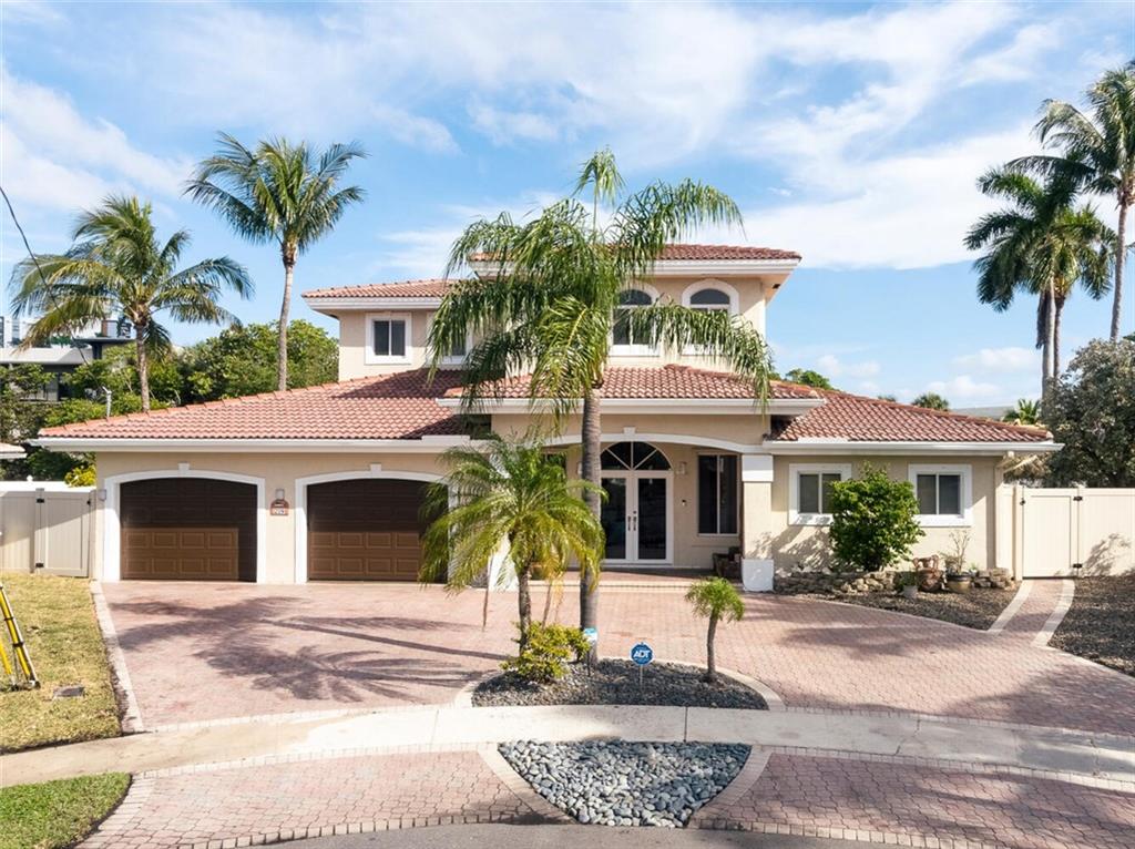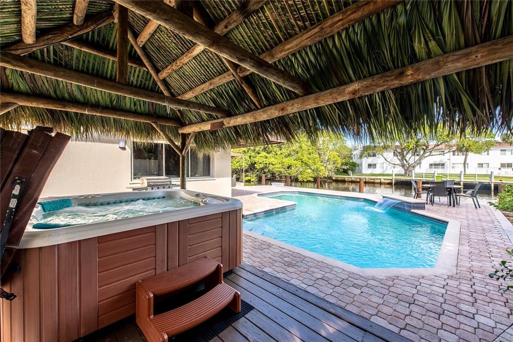 Fabulous cul-de-sac 1999 yr. home with 110 ft on the water 100ft dock w/ preserve&long water views to the N&straight E. You are greeted with a circular paver driveway, 2CG & a double glass door grand entryway with 20ft. ceilings. Light, bright & fresh is the welcoming vibe that you will receive. Formal living and dining, open kitchen suited for a chef, large family room with built in's for your flat screen & full bar that overlooks the tiki hut, jacuzzi, pool, preserve & water! The 1st floor has 1 full suite + 2 additional bedrooms with a cabana bath & 1/2 bath. 2nd level makes up the master & yoga studio. Incredibly spacious! Large walk-in closets, toilet&bidet room, his/her sink areas, spa tub&separate shower. Shutters and impact garage door. PVC plumbing, 2 AC's-2yrs old. Low ins.rate.