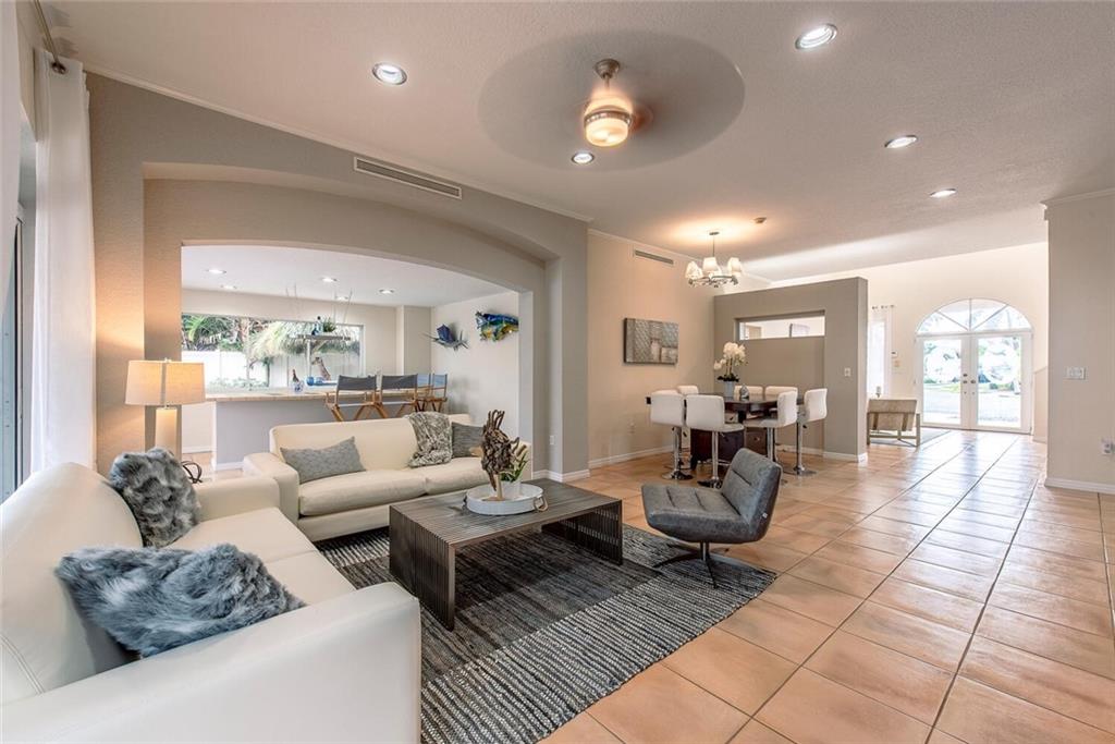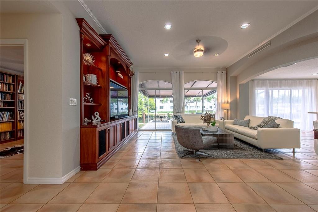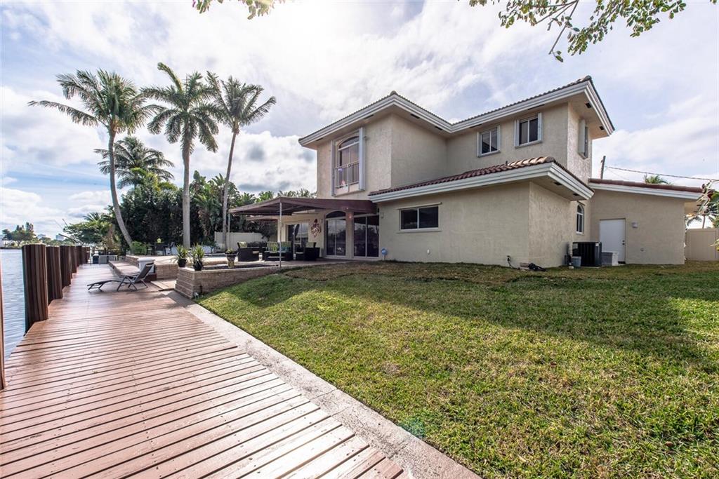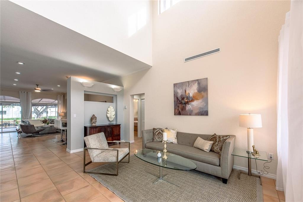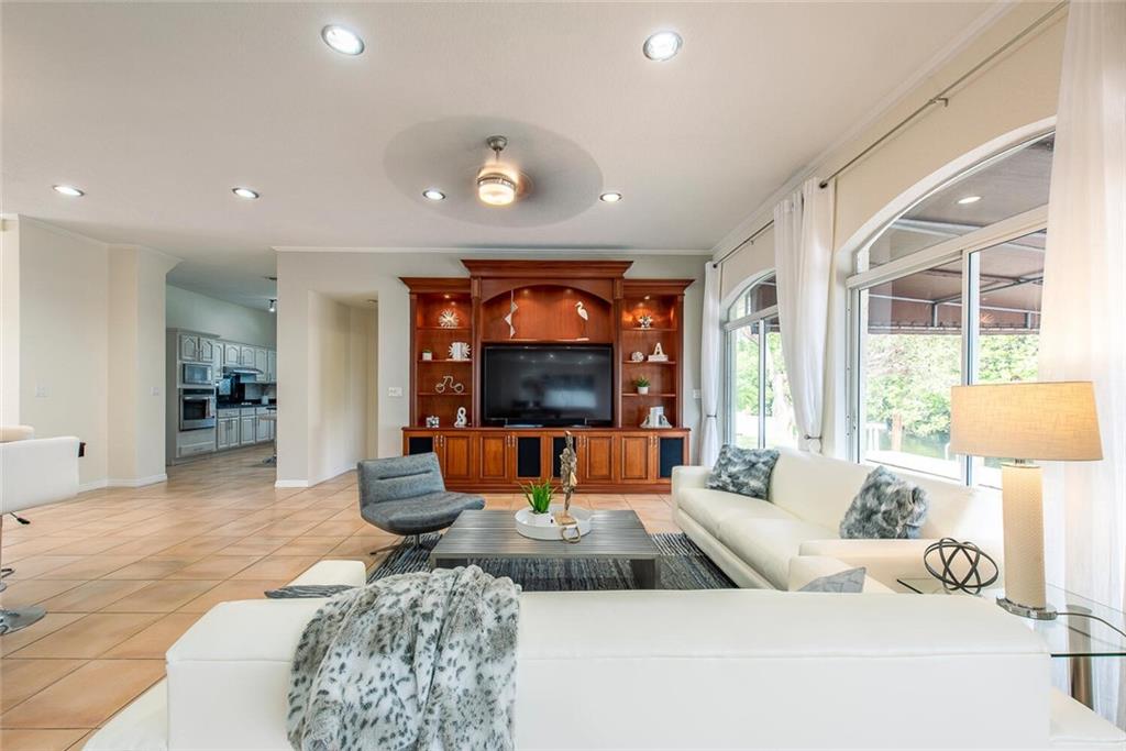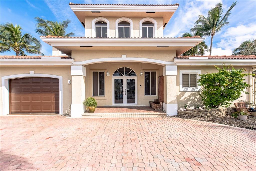 Fabulous cul-de-sac 1999 yr. home with 110 ft on the water 100ft dock w/ preserve&long water views to the N&straight E. You are greeted with a circular paver driveway, 2CG & a double glass door grand entryway with 20ft. ceilings. Light, bright & fresh is the welcoming vibe that you will receive. Formal living and dining, open kitchen suited for a chef, large family room with built in's for your flat screen & full bar that overlooks the tiki hut, jacuzzi, pool, preserve & water! The 1st floor has 1 full suite + 2 additional bedrooms with a cabana bath & 1/2 bath. 2nd level makes up the master & yoga studio. Incredibly spacious! Large walk-in closets, toilet&bidet room, his/her sink areas, spa tub&separate shower. Shutters and impact garage door. PVC plumbing, 2 AC's-2yrs old. Low ins.rate.
