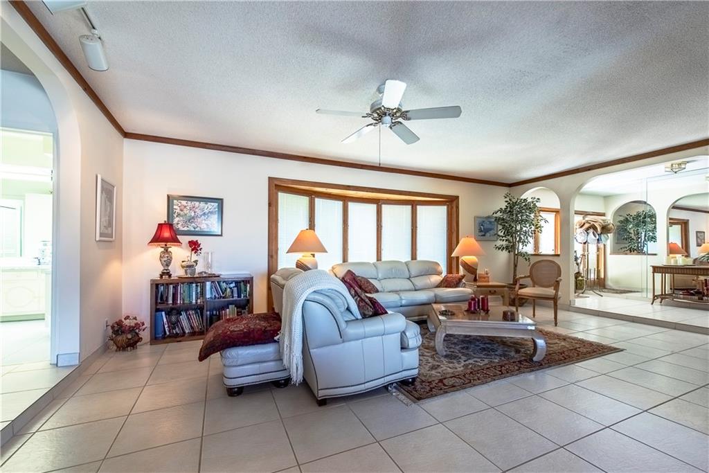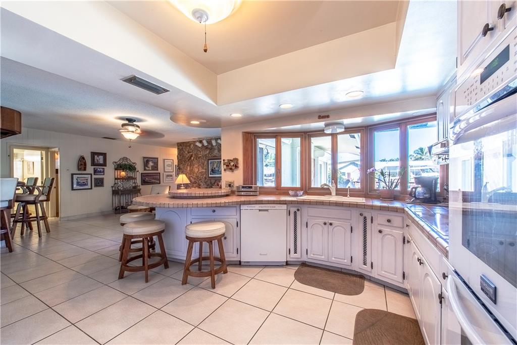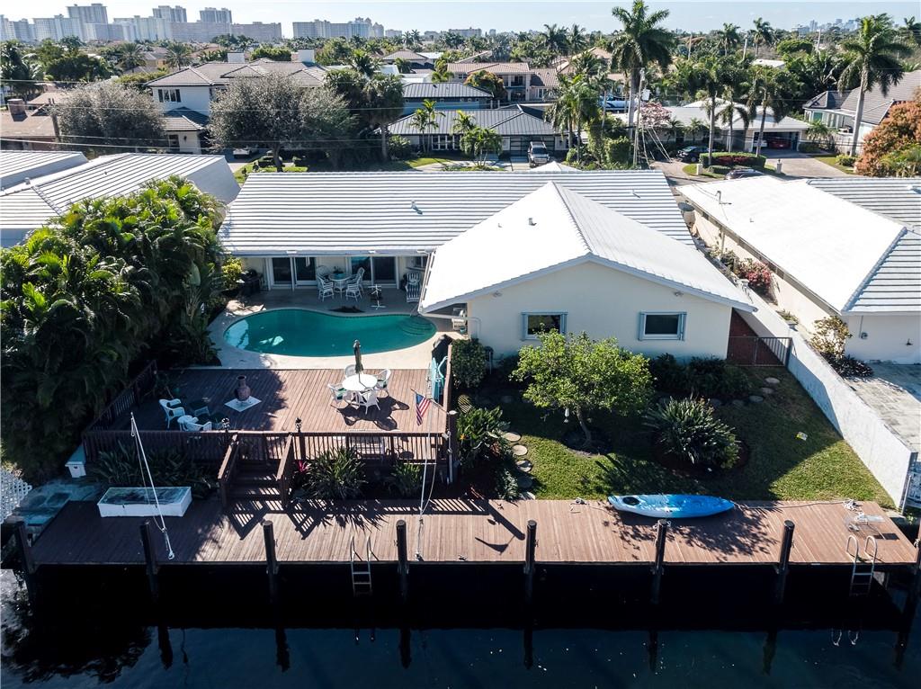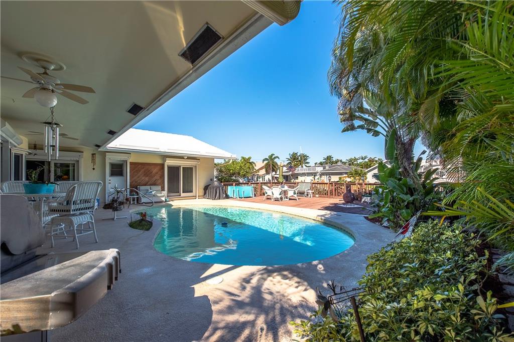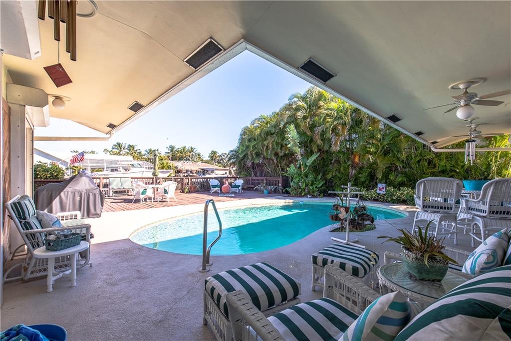 Spacious 4/3 ranch, Coral Ridge Country Club, 85' on the water, no fixed bridges. Beautifully landscaped brick circular drive leads to 2 car garage and covered front entry. Tiled foyer, large formal living/dining area. Family room opens to the Central kitchen with window pass through to pool, porch and backyard plus great cabinet space, double ovens, two pantries and circular eat-at counter/lazy-Susan. The Primary suite has pool/patio views, wood floors and a unique walk-through closet to a spacious bath. All three secondary bedrooms have wood floors, two with walk-in closets. Cabana bath off the family room opens directly to the pool area. Laundry room with wash sink leads to garage and attic storage over garage. Make this your waterfront home today and bring your ideas to life.
