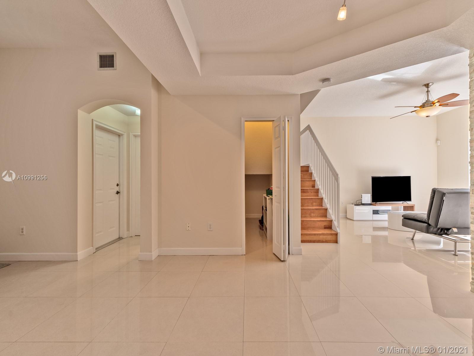 Beautiful townhouse in the best location in Doral. Walking distance to Publix, Starbucks and Morgan Levy Park. Access to Doral Park Country Club with golf course, tennis courts, pool, gym and 19th Hole Bar/restaurant. 4 bed/ 2.5 bath, stainless steel appliances, porcelain tile on 1st floor, laminate on 2nd floor, 1 car garage + driveway w/ 4 car spaces. Low HOA includes 24h security, maintenance, landscaping and basic cable. Close to A+ schools; call agent for appointment