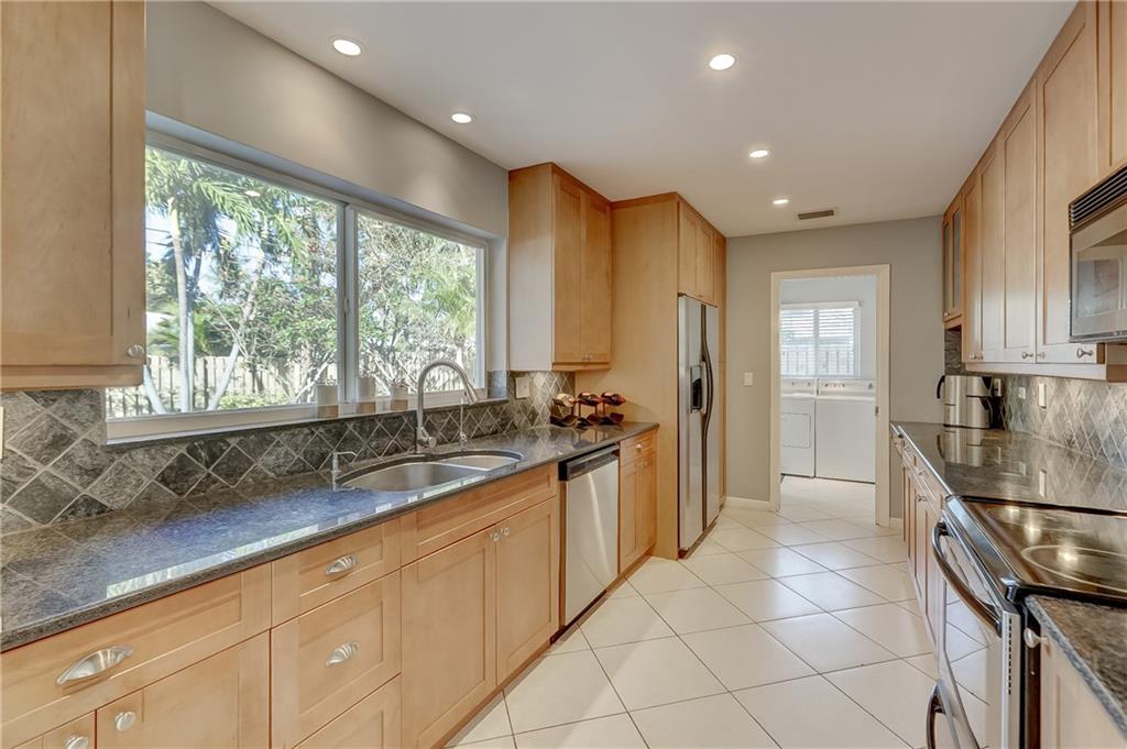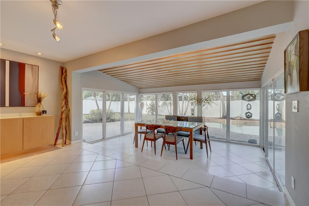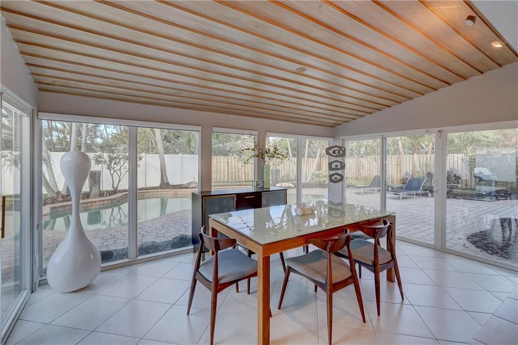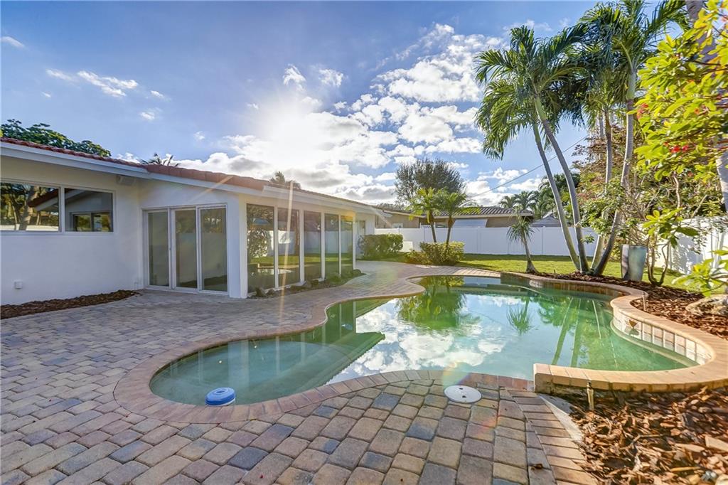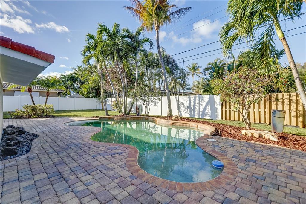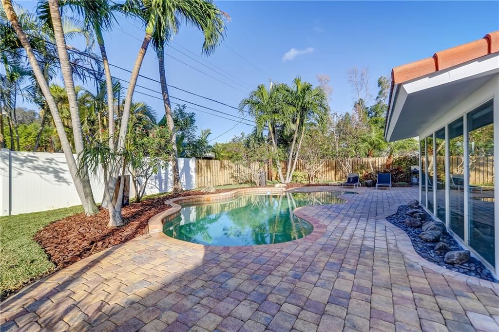 Fantastic 3 bedroom, 2.5 bath pool home in the heart of Coral Ridge! Located on a great interior street, south of NE 26th St. in Old Coral ridge this home is "Turnkey" & a must see. The interior features tile floors throughout the main living areas, open concept great room w/ mid-century modern wood ceiling in dining area overlooking the pool & backyard, updated kitchen with SS appliances, interior laundry room & hurricane impact windows. Exterior of the home has been freshly painted & features brand new landscaping front & back, Concrete S-Tile Roof, 2 car garage, brick driveway, expansive backyard w/ pavered pool deck, resort style pool, newer fence, buried gas tank services full home generator & tankless gas hot water heater. Located in the A+ rated Bayview Elementary School district.