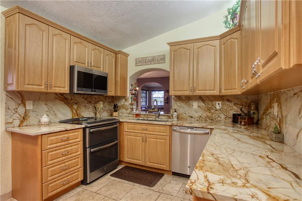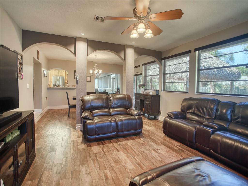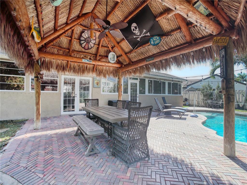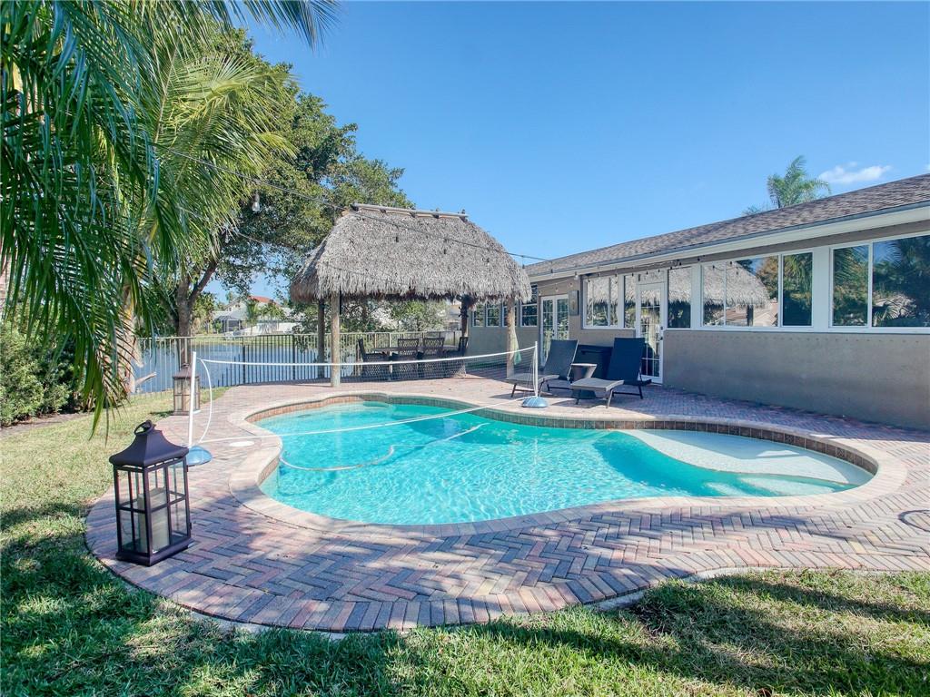 Paradise awaits!! Kick back and relax by your swimming pool & enjoy family time under your own TIKI HUT with big screen TV and gorgeous views of the sparkling lake. Kitchen features exotic granite, stainless steel appliances, & plenty of cabinets. With spacious separate living & family rooms, this home is perfect for entertaining. Split bedroom layout with double door entry into the Owner's Suite, walk in closet and double sinks in bathroom, and both bathrooms have been updated with granite and tile. Expanded versatile living area spanning the entire back of the home can be used as an office, playroom, or whatever your family desires. All tile & NO Carpet! Cul de Sac lot in desirable Shenandoah Community with low HOA fees & A-Rated schools! This home has it all!