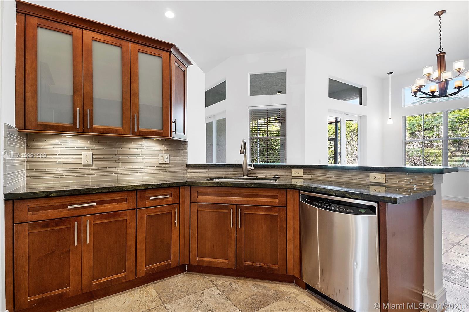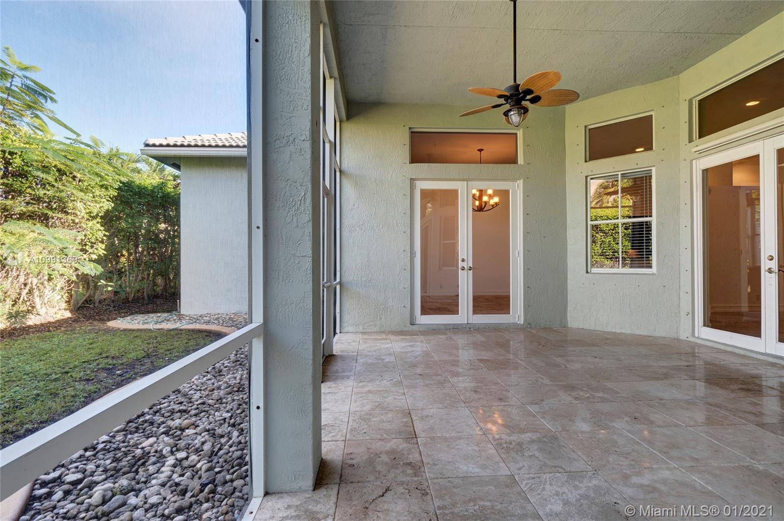Beautiful Heron model single story, 4 Bedroom, 3.5 Bathroom, Den/Study with 2 Car Garage residence located in the very well sought after gated community of Savanna in the City of Weston. Interior features: travertine marble floors throughout main living area, wood floors in master bedroom & den/study. Kitchen features include: all real maple wood cabinets with glass insert doors, under-mount lighting, black granite counter tops with designer glass backsplash & all stainless steel GE Profile appliances. The French doors located in the living room & family room lead you to your very own private screened in patio. Exterior features: paver driveway, private porch and hurricane shutters throughout. Savanna is an excellent family oriented community with outstanding amenities and schools.