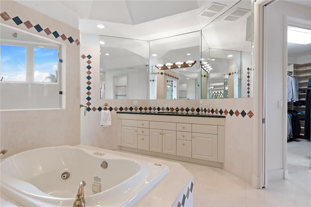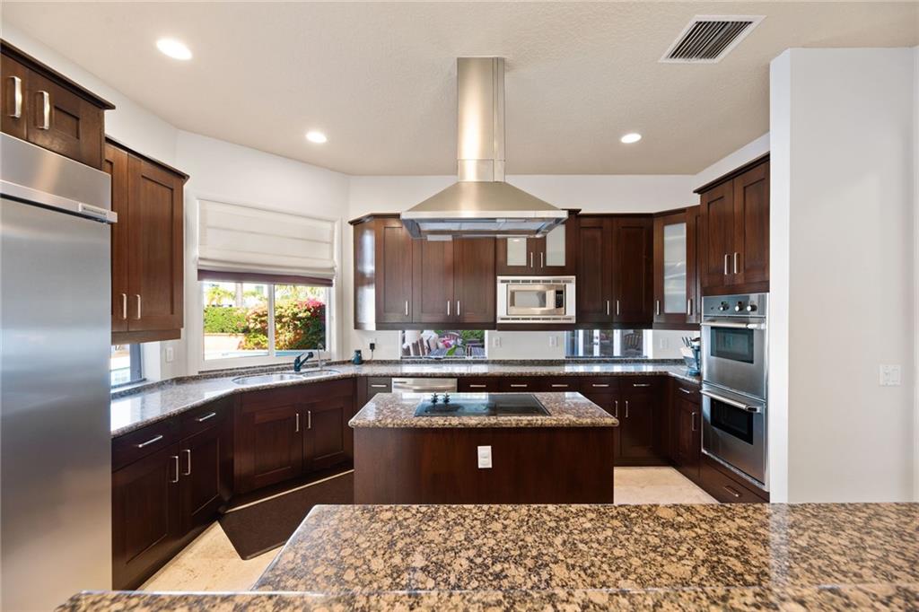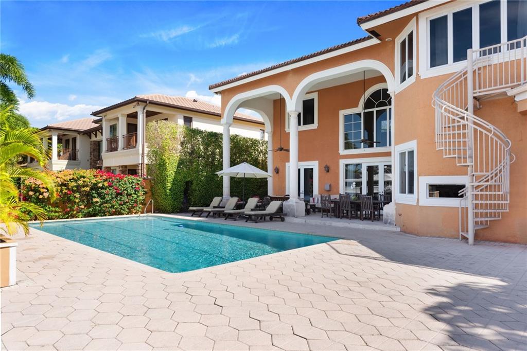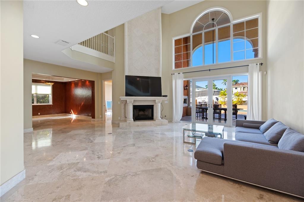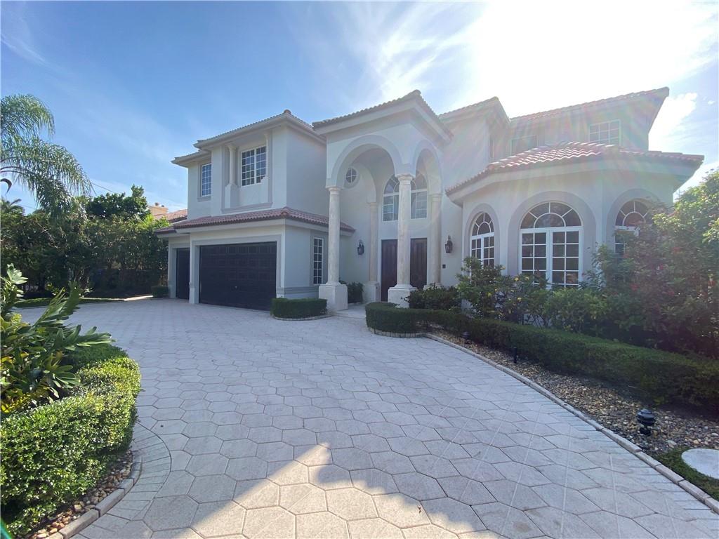 This home in prestigious & security patrolled seven isles neighborhood has 5 large bedrooms plus spacious office, 6 bathrooms, elevator, 3 car garage, and 5870 total square feet. The scale and design of this home make it truly unique. Every bedroom includes en-suite bath and walk-in closet. Prime lot is 2 homes from the point with 25 foot foot high ficus hedges providing added privacy. Additional features include large circular driveway with landscape island, big covered patio in the backyard, rare 20x40 pool, downstairs VIP suite, and a large balcony off of the master bedroom providing views of Rio Barcelona waterway. With an amazing location & great floor plan, this home is ready for your personal touches.