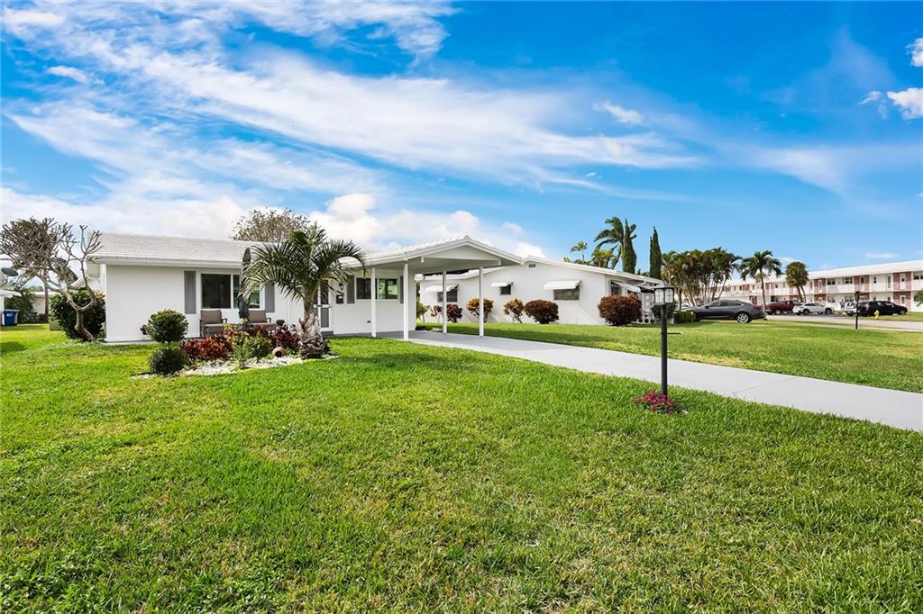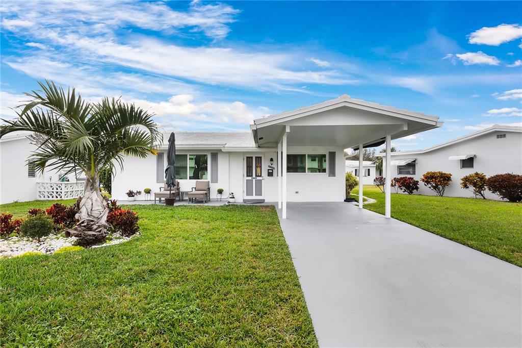 Beautifully updated 2 bedroom, 1 bathroom single family home located in the well maintained 55 plus private golf community of Leisureville. This home features new porcelain tile in the common areas, updated white modern kitchen with newer stainless-steel appliances and granite counter tops, wood laminate in the bedrooms. Very spacious and bright. Long driveway with a carport. Washer/dryer in its own room. Hurricane windows and more. Florida room perfect for an office or relaxing with a book. Bathe in the sun on your front or back patio. Community features two clubhouses and pools and many community activities to keep you active. Close to highways, restaurants, shopping and the beach!!