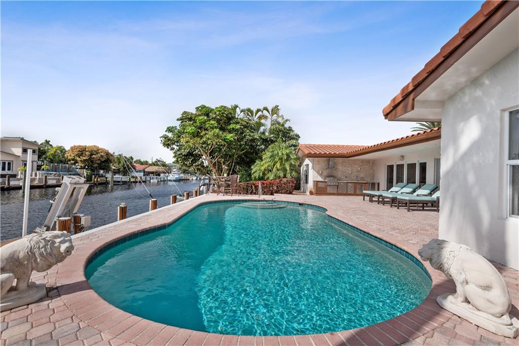 Experience the Location and Luxury of this exquisite waterfront home in the desirable community of Bermuda Riviera. This property w/ 2,254 sq. ft of under air living space has travertine floors throughout, split bedroom configuration, 4 bedrooms, 3 full baths, open floor plan, nicely appointed kitchen with SS appliances to include induction stove, wine cooler, natural stone counter tops, custom cabinetry, and island w/ seating. All impact doors and windows & new whole house generator. With 80’ of deep-water frontage, this property also has an outdoor kitchen, heated/salt-system pool, and boat lift. Two car garage w/Tesla charging outlet. To live in Bermuda Riviera means enjoying easy access to the beach, sun dappled pathways throughout the community and close proximity to dining & shopping