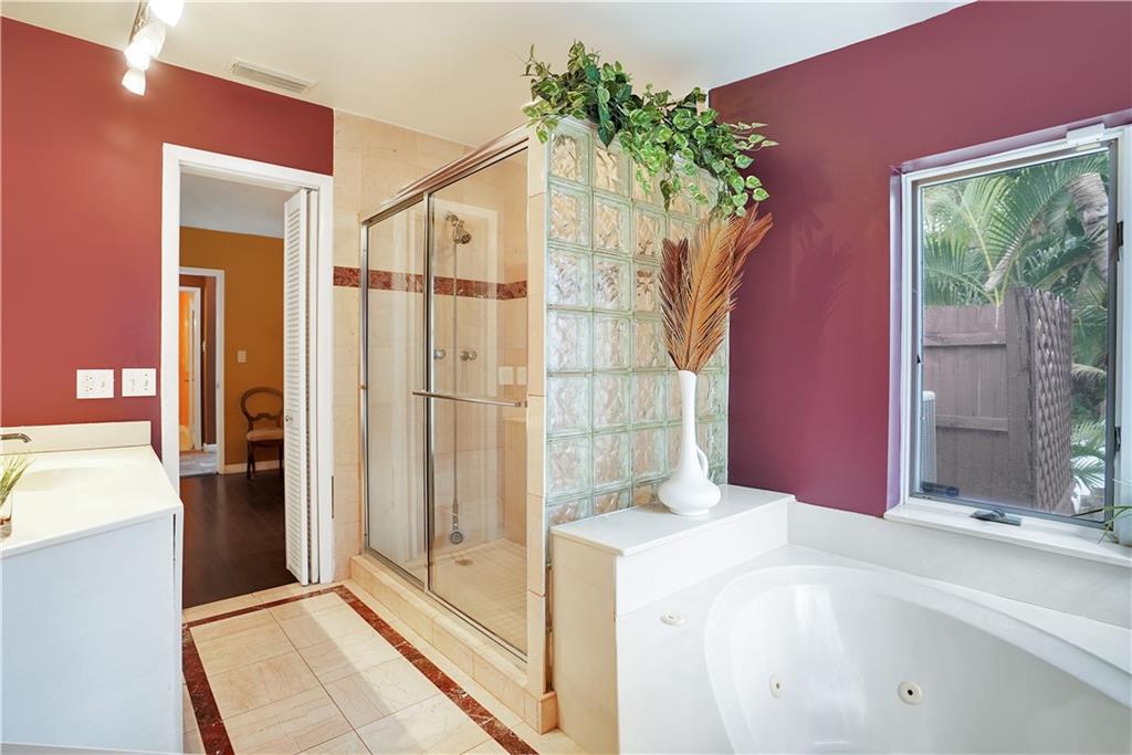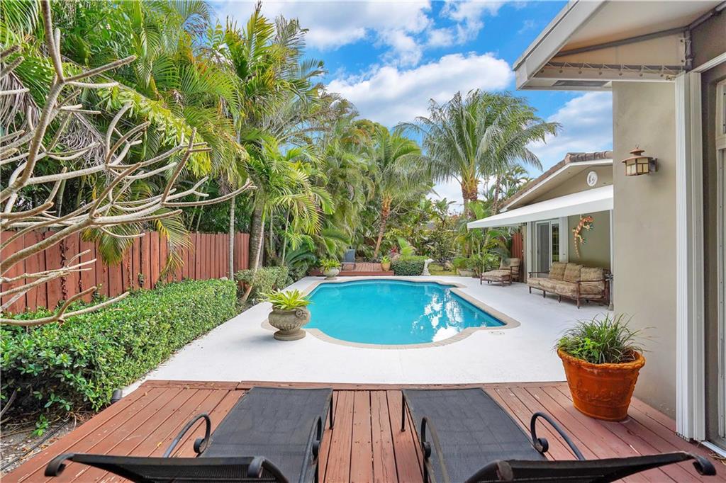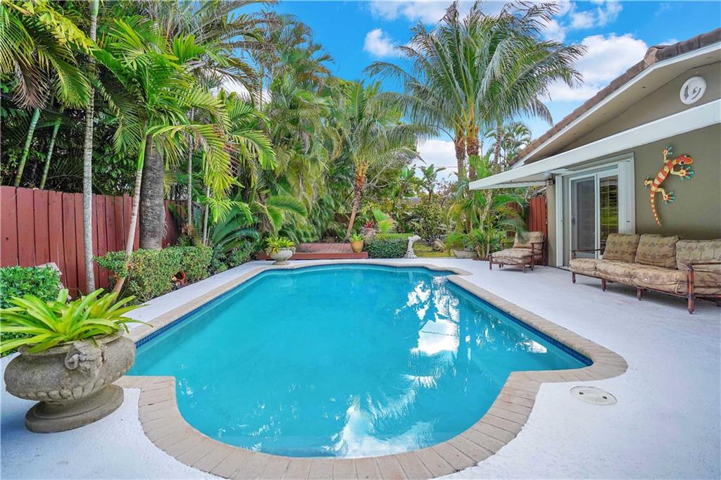 Amazing 3 bed/3 bath home located in the esteemed Coral Ridge neighborhood. Brand new roof just installed!!! This home boasts a huge family room w/ vaulted ceilings + sliders that open to the private, gated, tropical pool area. The kitchen has SS appliances, granite counters, a wall oven + a highly sought after gas range. The living + dining areas are open + spacious with plenty of room for indoor entertaining. The master bedroom + bath look out to the pool. The 2nd master bedroom comes with a private en suite bathroom. Tile + wood floors, plantation shutters, security system, 2 car garage, laundry room, lush landscaped grounds and beautiful pool. Close to shopping, restaurants, the beach + Bayview Elementary school. You don't want to miss this opportunity to own this gorgeous home!