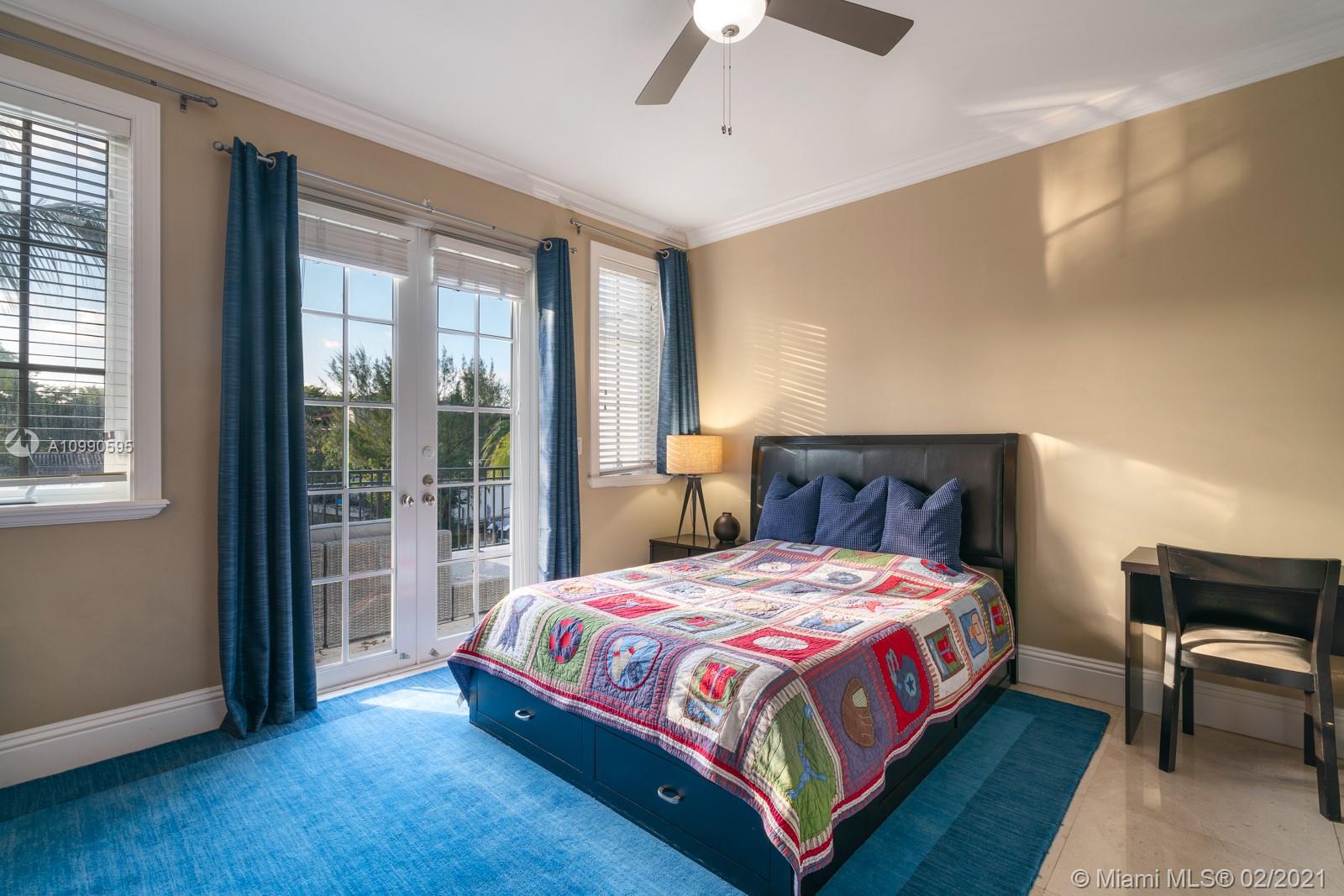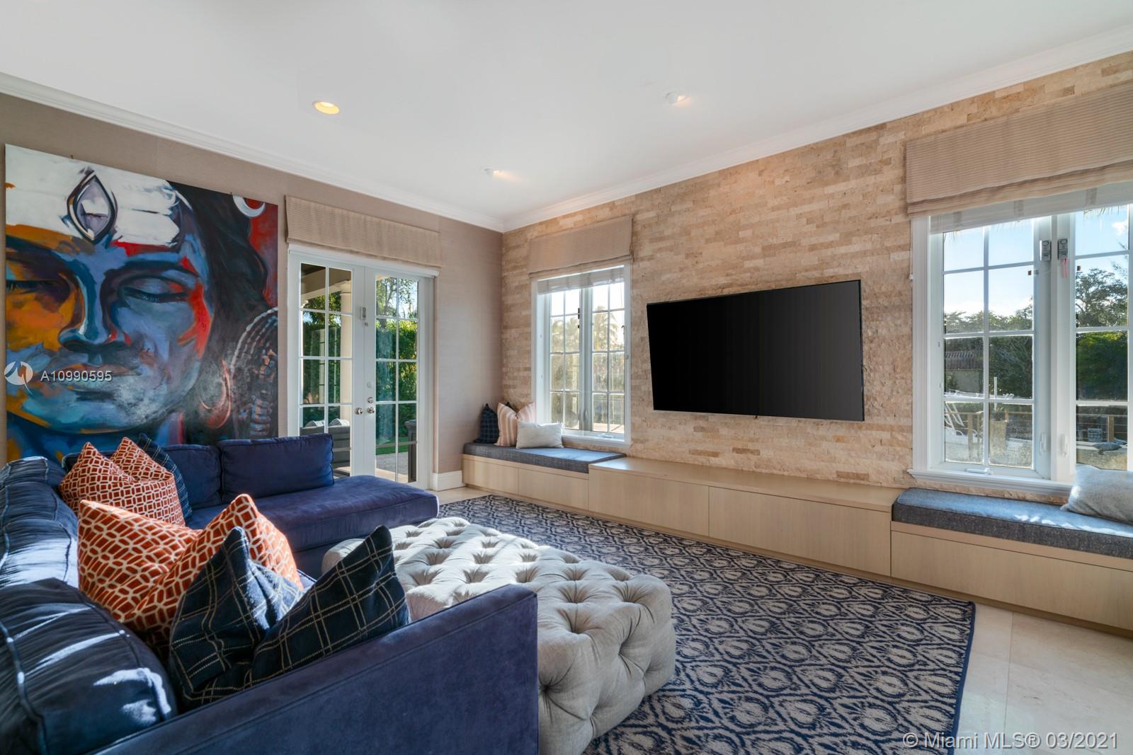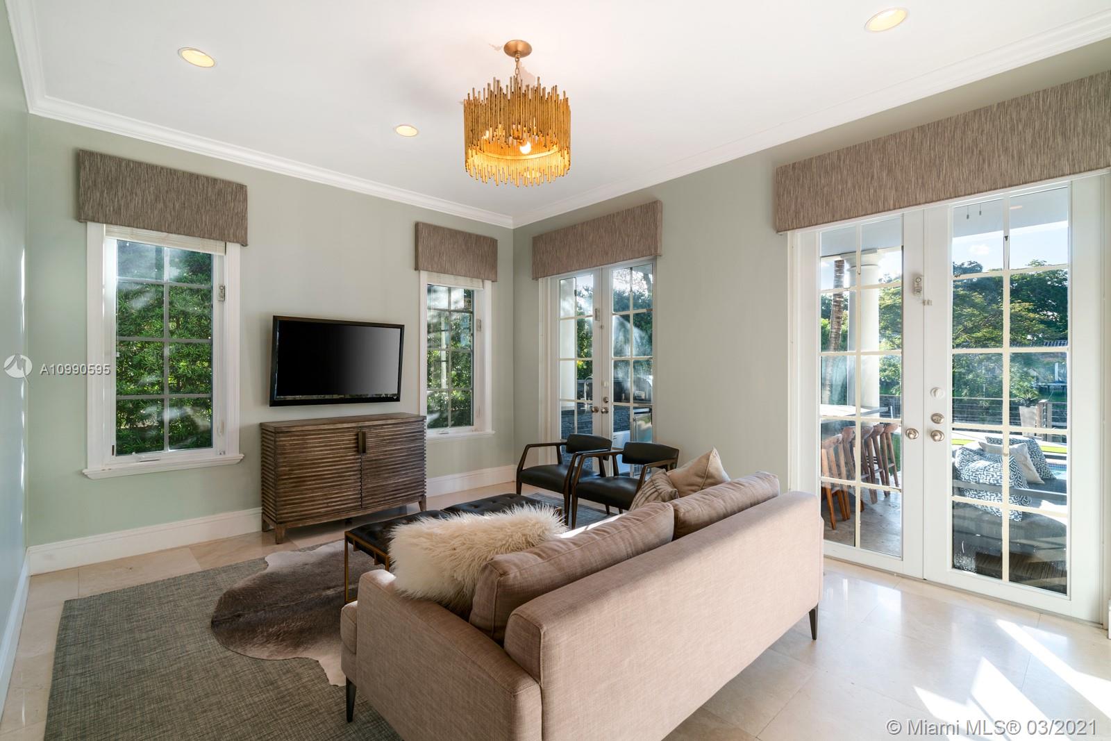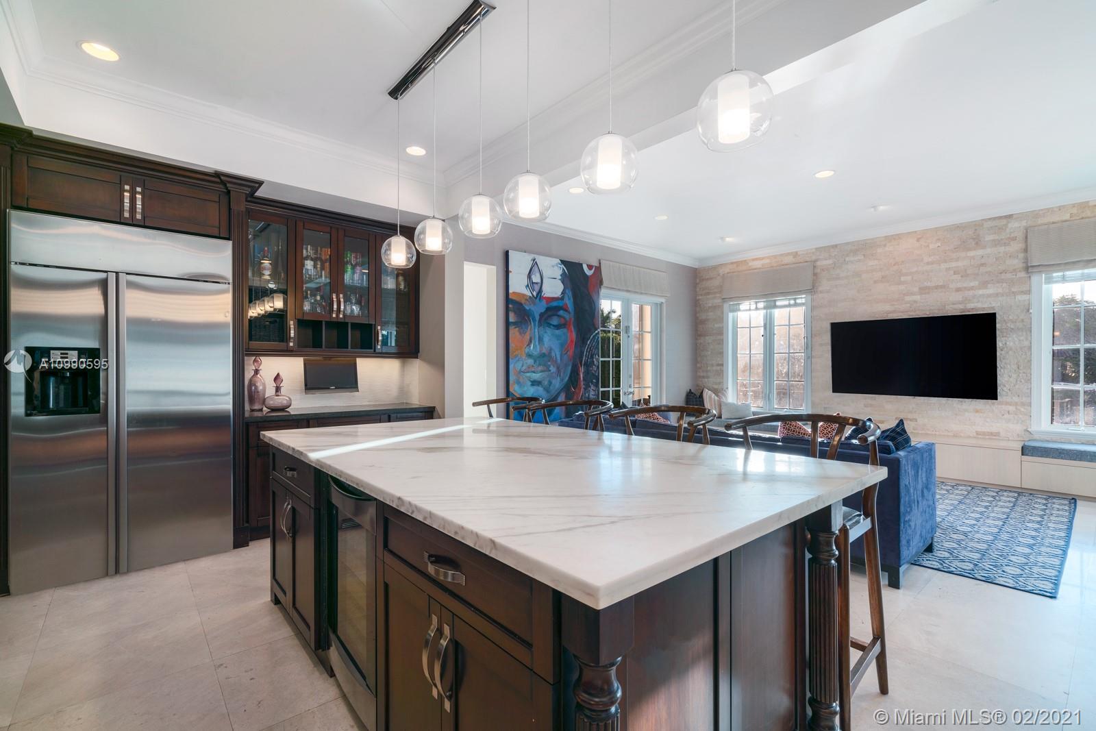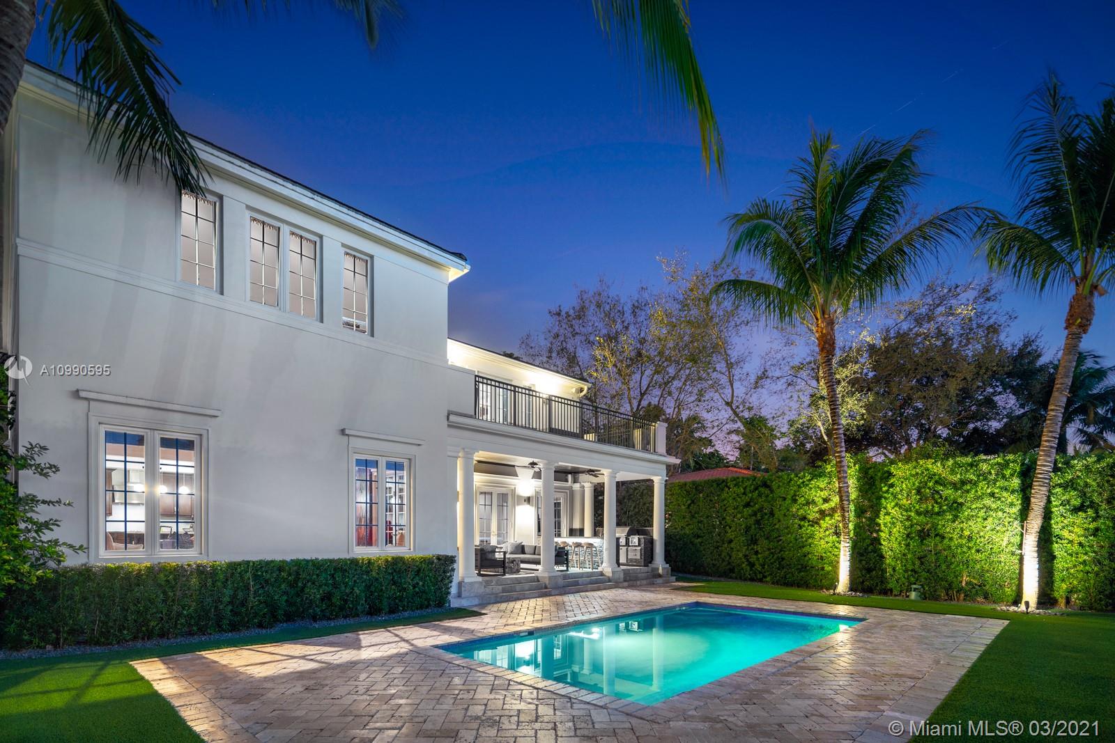 Gorgeous waterfront home located on the prestigious Coral Gables Waterway. It is a stunning contemporary French-inspired chateau on a 9,126 sf lot. The 4BR/4.5BA 4,078 total sf home includes hurricane impact windows and doors, marble floors, marble and granite countertops, high ceilings with recessed lighting, whole property sound system with zones, 13-camera security system, and wifi extenders. Less than 60' of water frontage, boat lift, and 600+ sq ft Brazilian Ipe dock with waterside seating area give access to Biscayne Bay. Gourmet eat-in kitchen is complemented by an outdoor summer kitchen complete with Lynx grill and side burner, icemaker, refrigerator and more, overlooking a sparkling saltwater pool. Generator with an underground propane tank will run the entire house for 4 days.