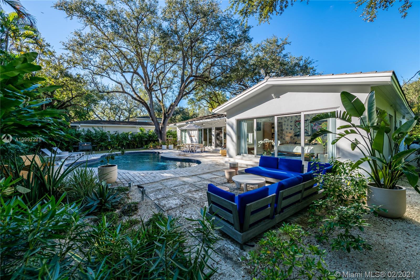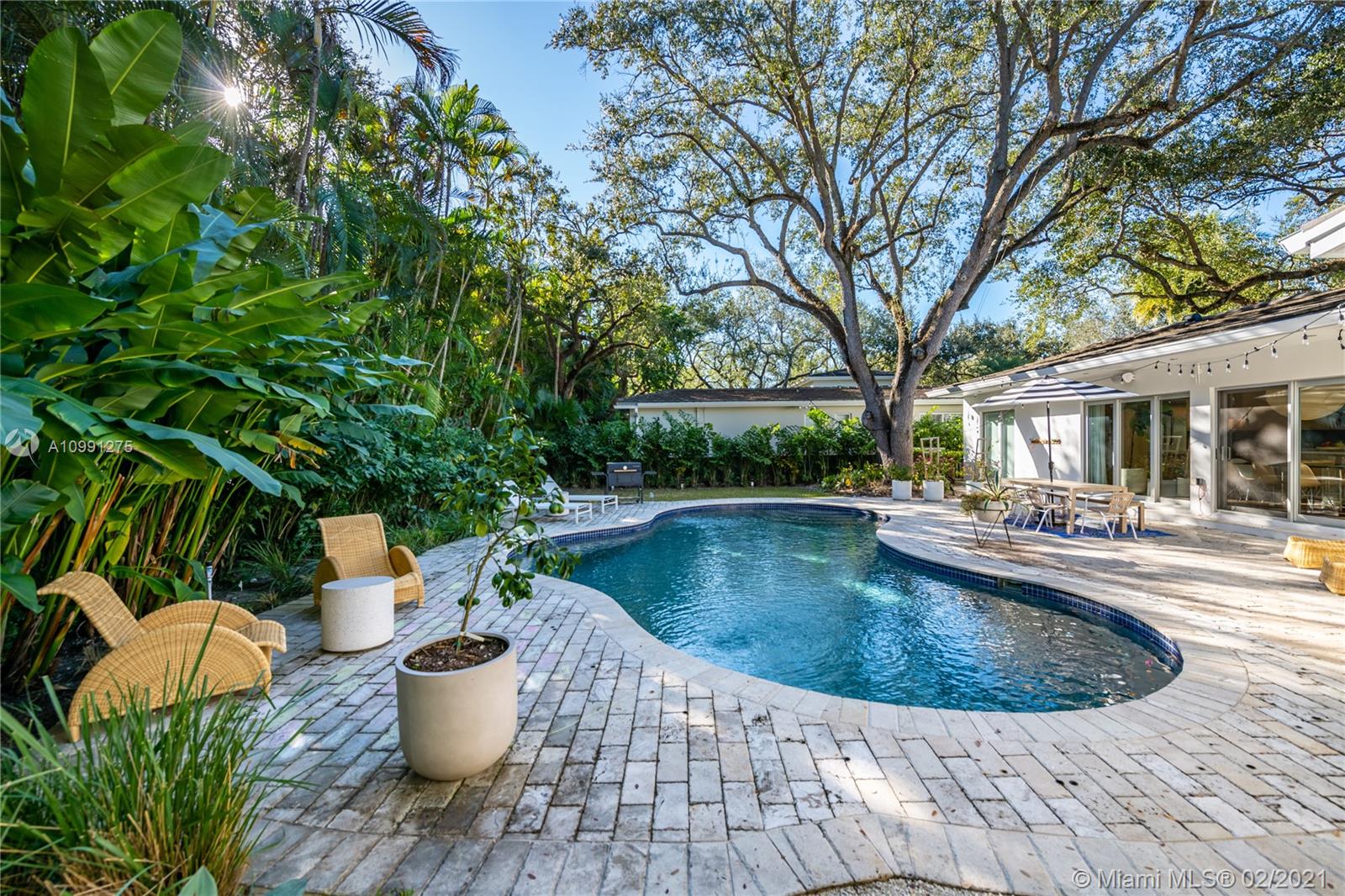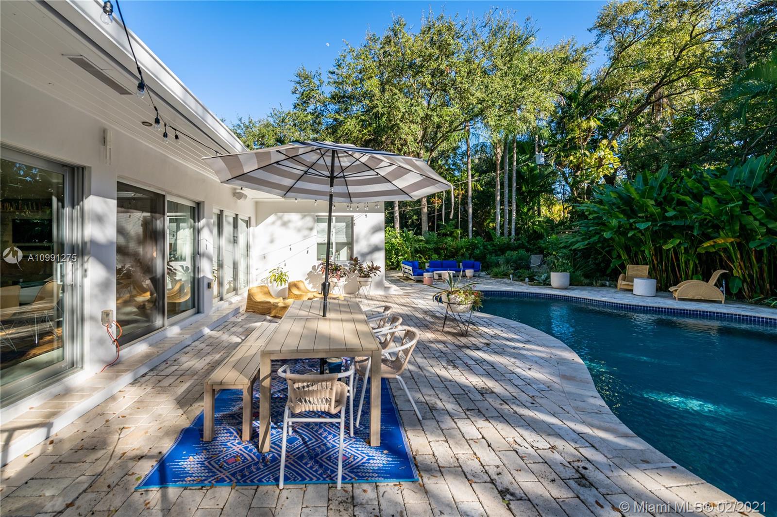 An Ode to Joy, Light & Artisanship. Pass thru the owner-designed redwood front doors of this Central Gables delight into a world of wholly original, globally handcrafted design wonders. Aficionados of luxury craftsmanship utilizing natural & honest materials, the current owners spared no expense or effort to create a home which faithfully conjures a mid-century aesthetic with a nod to the ease and comfort of California Modernism. The dining room chandelier designed by Japanese-American sculptor Isamu Noguchi; the entrance wallpaper that British designer Marthe Armitage screen-printed by hand; the lighting created by Italian designer Artemide; small-batch tiles fabricated by L.A. designer Tracey Reinberg - every room enchants, inspires, relaxes & comforts. Home is where the joy is.