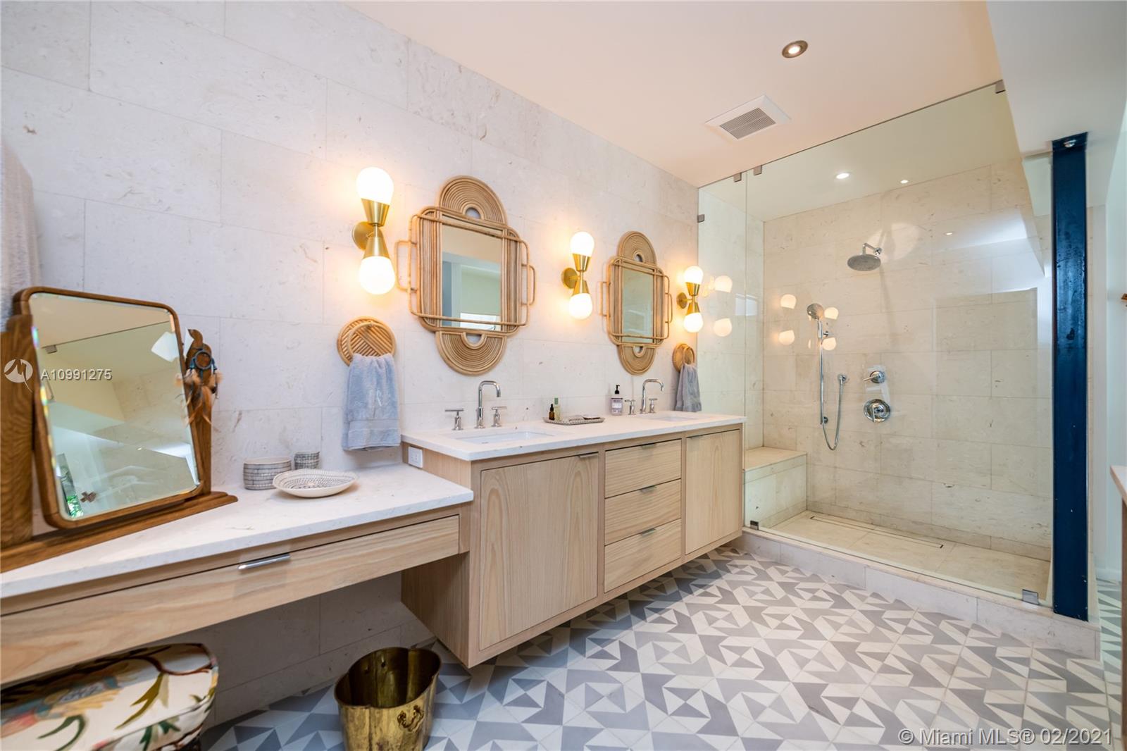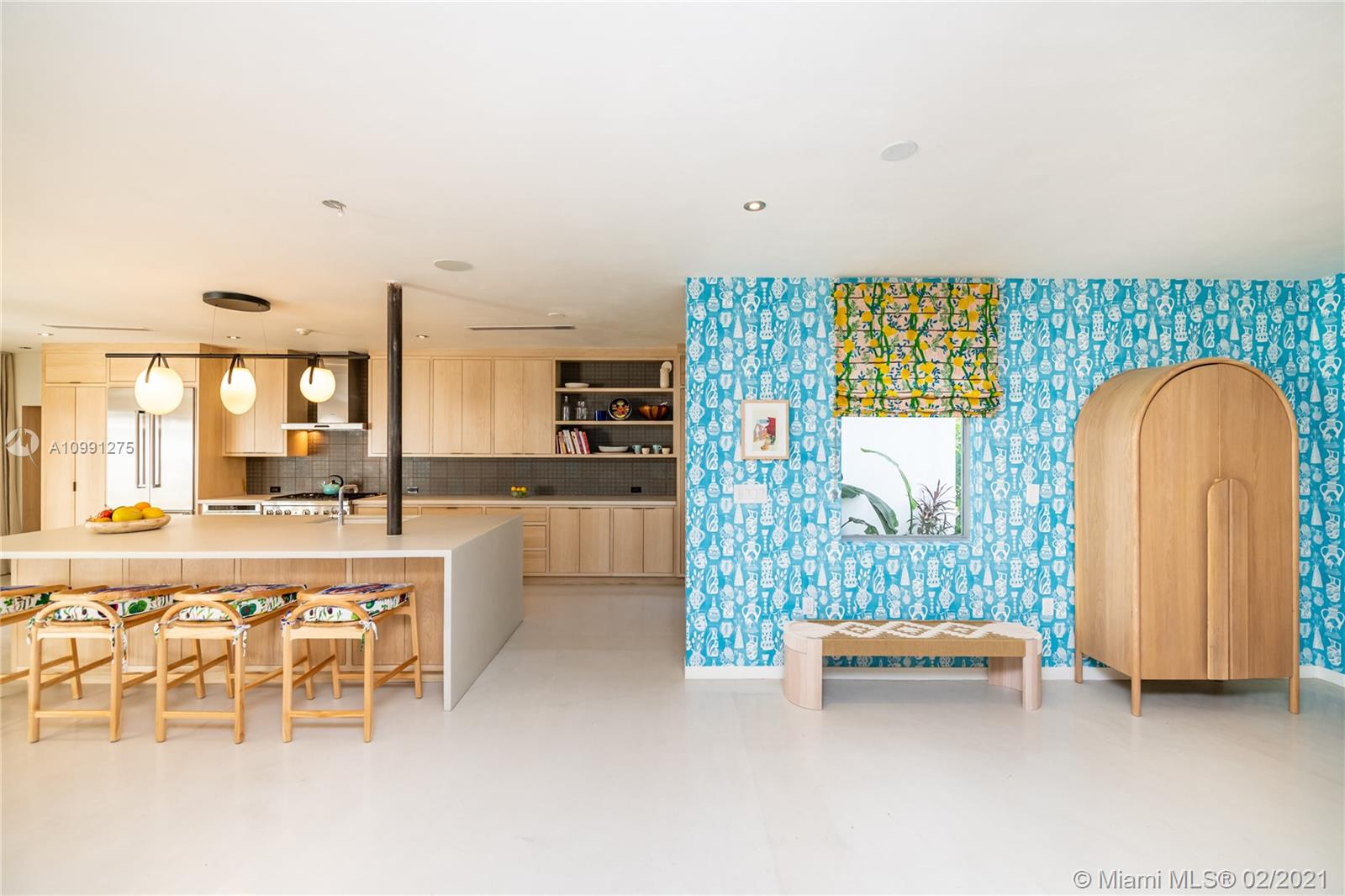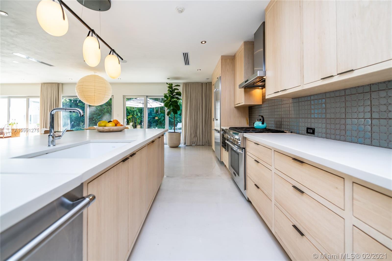 An Ode to Joy, Light & Artisanship. Pass thru the owner-designed redwood front doors of this Central Gables delight into a world of wholly original, globally handcrafted design wonders. Aficionados of luxury craftsmanship utilizing natural & honest materials, the current owners spared no expense or effort to create a home which faithfully conjures a mid-century aesthetic with a nod to the ease and comfort of California Modernism. The dining room chandelier designed by Japanese-American sculptor Isamu Noguchi; the entrance wallpaper that British designer Marthe Armitage screen-printed by hand; the lighting created by Italian designer Artemide; small-batch tiles fabricated by L.A. designer Tracey Reinberg - every room enchants, inspires, relaxes & comforts. Home is where the joy is.