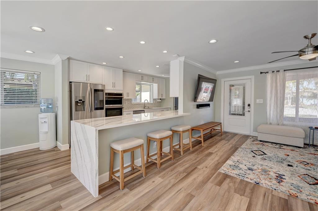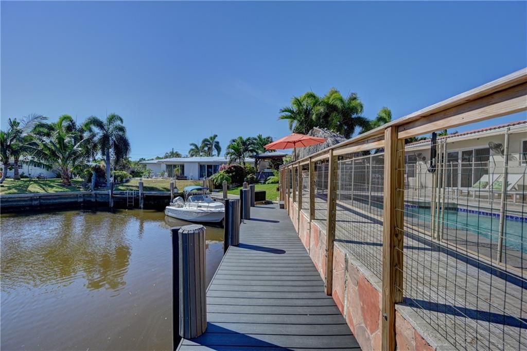 Great AirBnB opportunity! Waterfront living at its finest with this spectacularly appointed 4/2 home in Cypress Harbor! One fixed bridge w/12' clearance at high tide. This completely remodeled home features: ALL impact windows, brand new AC, new luxury vinyl plank waterproof floors, new SS Samsung appliances w/Smart technology, 5-burner natural gas cooktop w/hood, all new white cabinets, Cambria quartz counters w/waterfall peninsula, laundry room w/Brand New W/D & storage & updated bathrooms. Sliding glass doors open up to a resort style backyard w/Tiki bar, heated (natural gas) pool w/baby gate, travertine patio, hot tub, all new composite decking on extended 40' private dock with 8" raised seawall and fenced yard. Owner willing to sell furnished. Close to restaurants, beaches & highways.