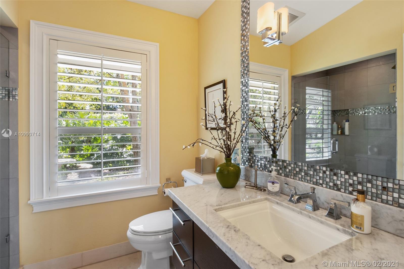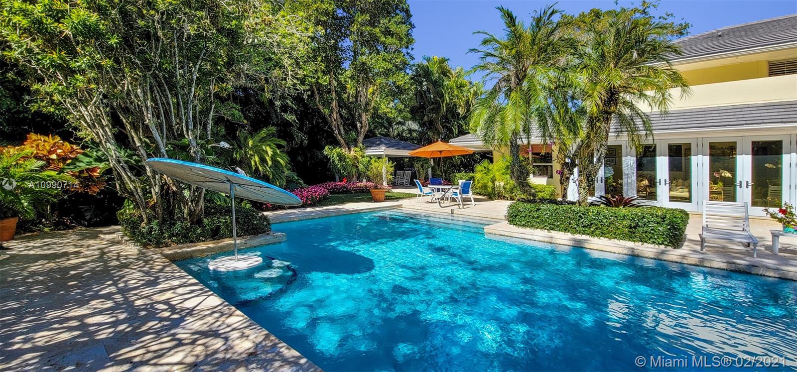 Elegance in Pinecrest. Large updated residence with separate guest house, heated pool and tennis court nestled in 49,222 sq. ft. of lush landscaping. Two story main house has 5 bedrooms, 5 bathrooms, two powder rooms, office, family room with wet bar, separate dining room, kitchen with island, adjoining breakfast room, laundry room and two car garage. Ideal happy home for a large family.