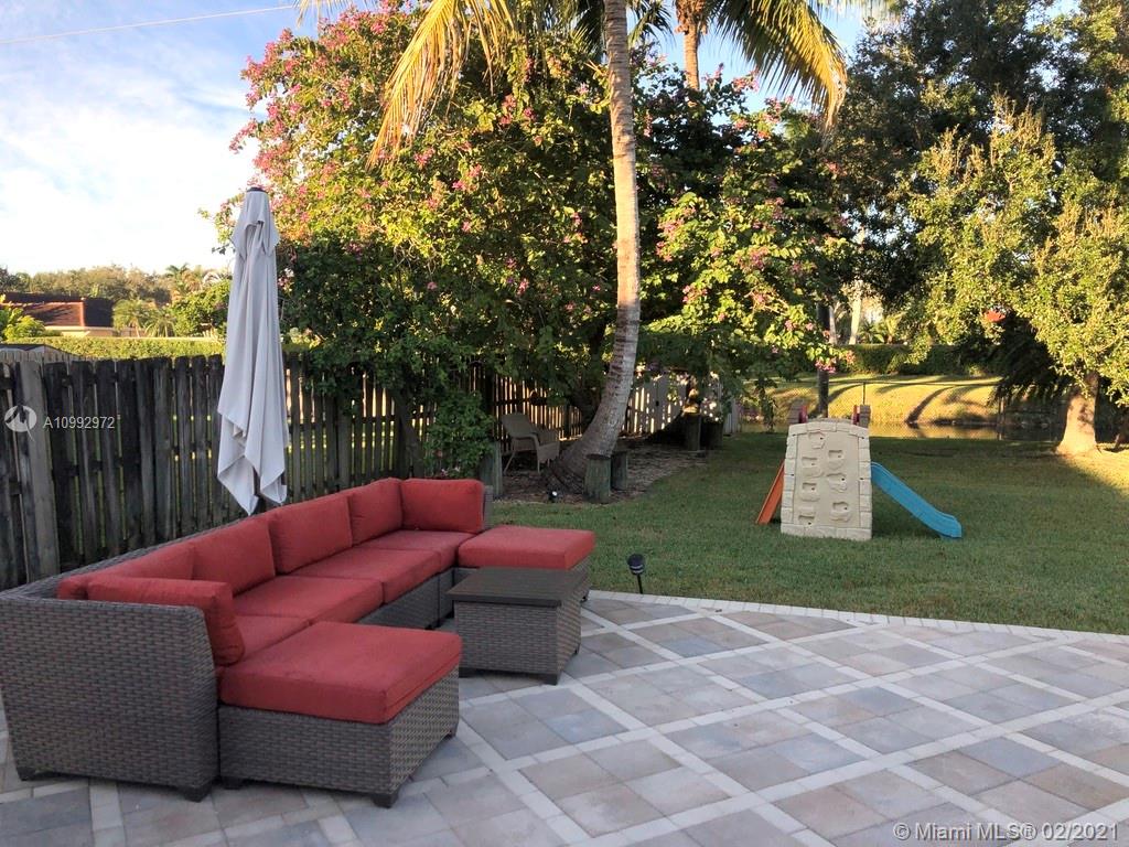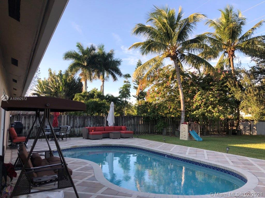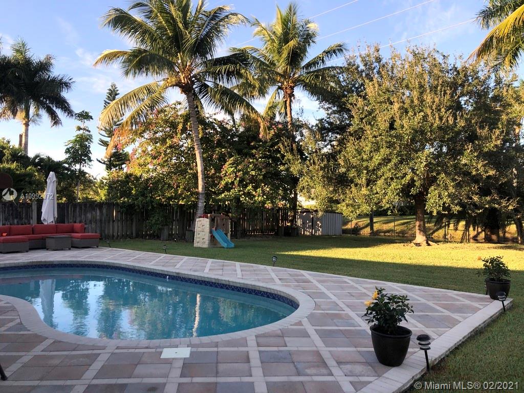 Stunning Property !! Huge lot with backyard bordering on 2 sides a canal. Very relaxing and spacious unscreened pool area and back garden that is fenced in with herb garden. Vaulted ceilings in the living and great rooms, master bed overlooking the pool area. Wonderful kitchen nook and island kitchen counter. 3 bedrooms on the opposite side to master for privacy. In 2017 the pool was resurfaced with Diamond Bright, new pool brick pavers and air conditioner. A + schools and a heavenly neighborhood to live in. Quiet and peaceful and walking distance to Publix, Starbucks, shops, Parks and schools. Plenty of coconut trees to enjoy.