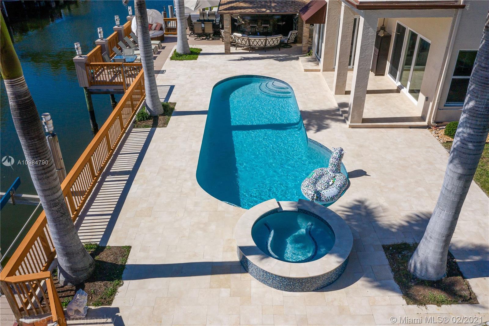 Beautiful upgraded waterfront home features 4bed/3.5bath + office and 2 car garage. Oversized lot 12,100 sq.ft. No fixed bridges, direct ocean access, private deck (100 foot dock & 25,000 lb. boat lift). Hurricane impact windows & doors. Fully equipped, open kitchen & family room. Vaulted ceilings. Formal dining room & breakfast area. Master suite with a walk-in closet & bathroom on a ground level. Two-car garage converted to a big kid's playroom/theater (can be easily converted back). Huge backyard with brand new pool deck, heated pool & jacuzzi. Cabana, built in grill, mancave with large screen TV and two sheds. Over $250K of interior & exterior upgrades! Located 5 min from the beach, grocery stores, schools & restaurants. All showings will start on Saturday 02/06: OPEN HOUSE 11AM-3PM.