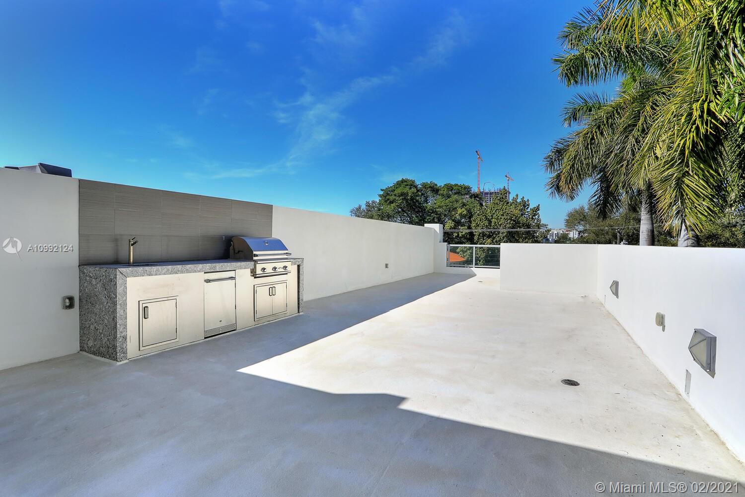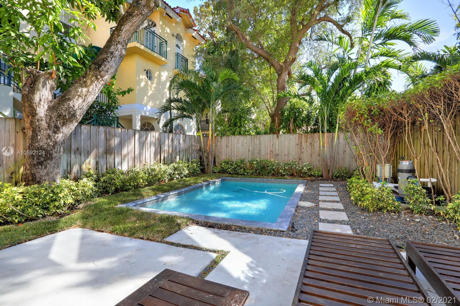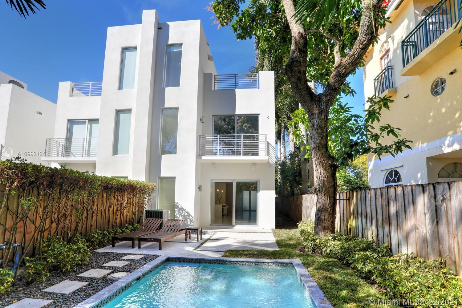 Stunning, Tropical-Modern style townhome, walking distance to the Grove village center’s galleries, boutiques, cafes and bayfront parks & marinas. Built in 2015. Light-filled, open living spaces w/ volume ceilings, floor-to ceiling impact glass, porcelain tile flooring & high-end designer finishes. Formal living /dining & family room overlooking private tropical garden & pool (10’ X 17’). Custom kitchen features European-style cabinetry, quartz countertops, top-of-the-line appliances & island w/ seating. Luxurious master suite offers large walk-in closet, balcony & spa-like bath w/ oversized walk-in rain shower. Enjoy tree-top views of lush Coconut Grove from the large roof-top terrace w/ summer kitchen for year-round entertaining. Minutes to downtown, MIA, Key Biscayne & the Beaches.