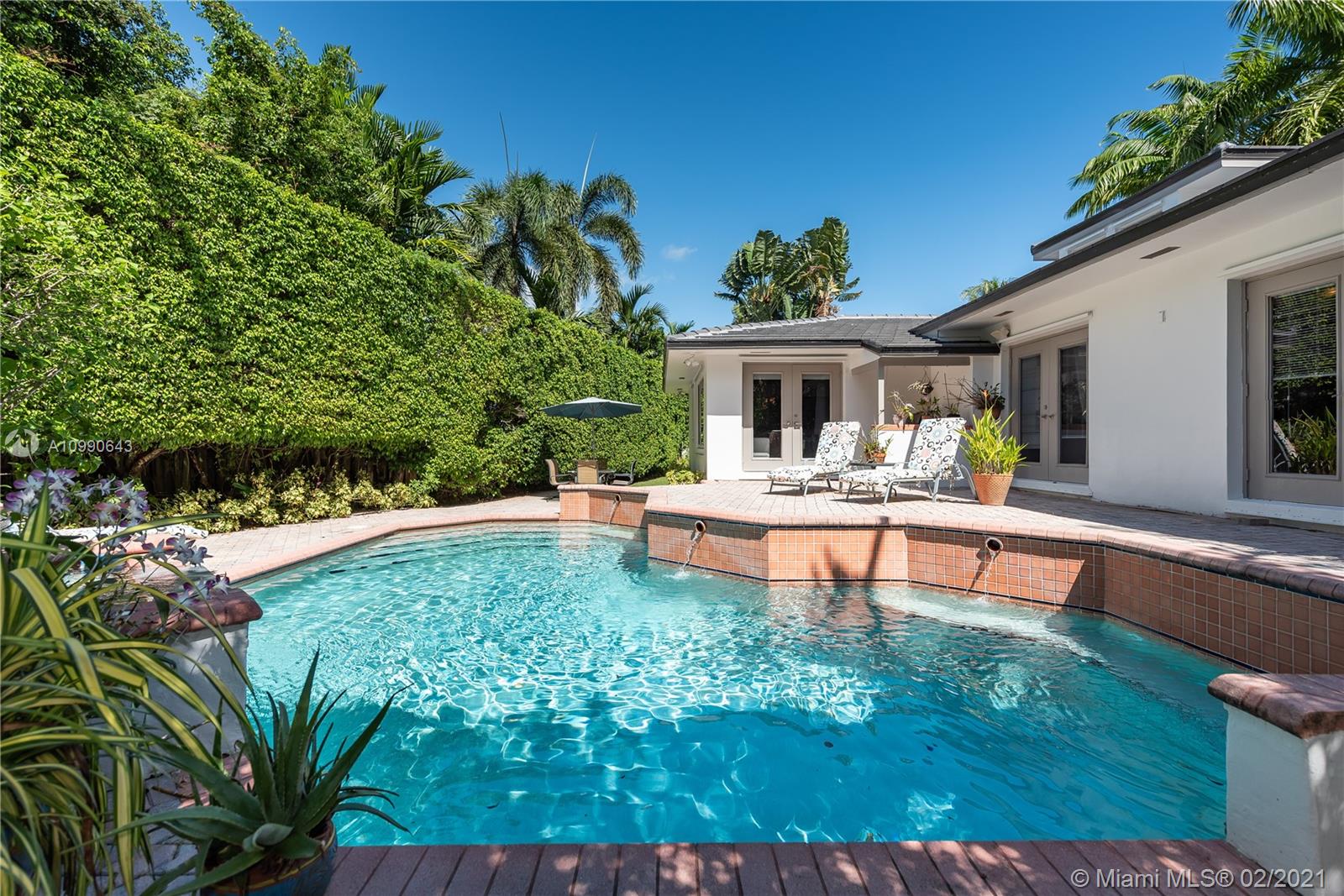 Looking for exclusivity, security, a pool, a yard and a real family neighborhood? Moving from up North? Look no further. This significantly renovated sun drenched mid century Bal Harbour Village home features a private main floor master suite with steam shower, separate childrens wing, home office, maids room and bath, cabana bath, new roof, newer air conditioners,oak and porcelain flooring, built in vac and two car garage. The kitchen has granite counters, double ovens, gas stove and lots of storage. Also a rose garden, herb garden, mature landscaping and private pool oasis which jacuzzi ,waterfall, & built in BBQ. The Village is a coveted gem, guard gated /private streets, marina for yachts, with easy access to Bal Harbour shops, the beach, parks, A+ rated schools and houses of worship.