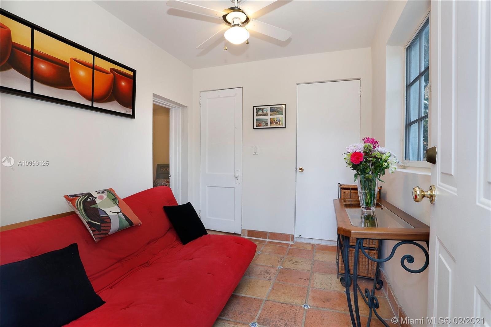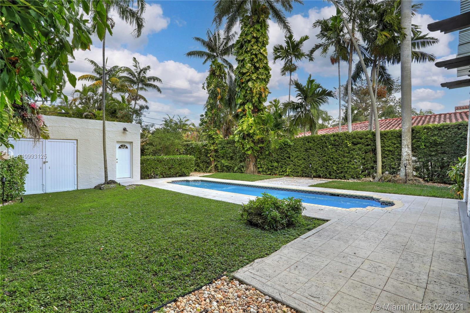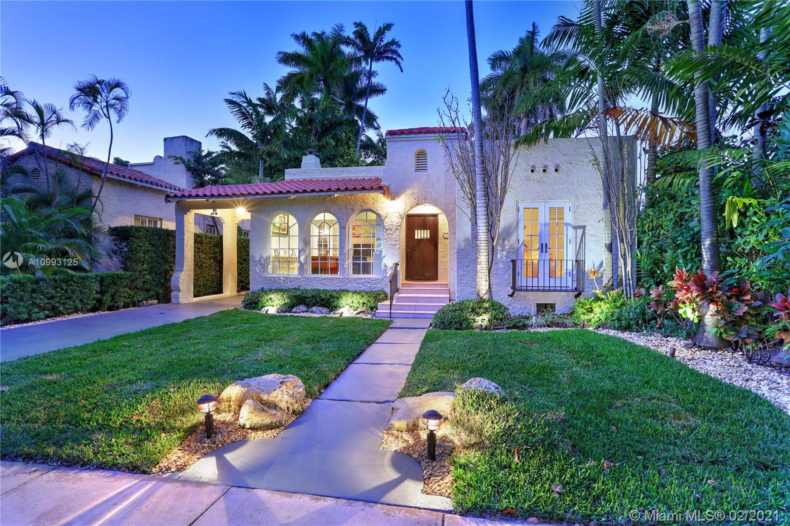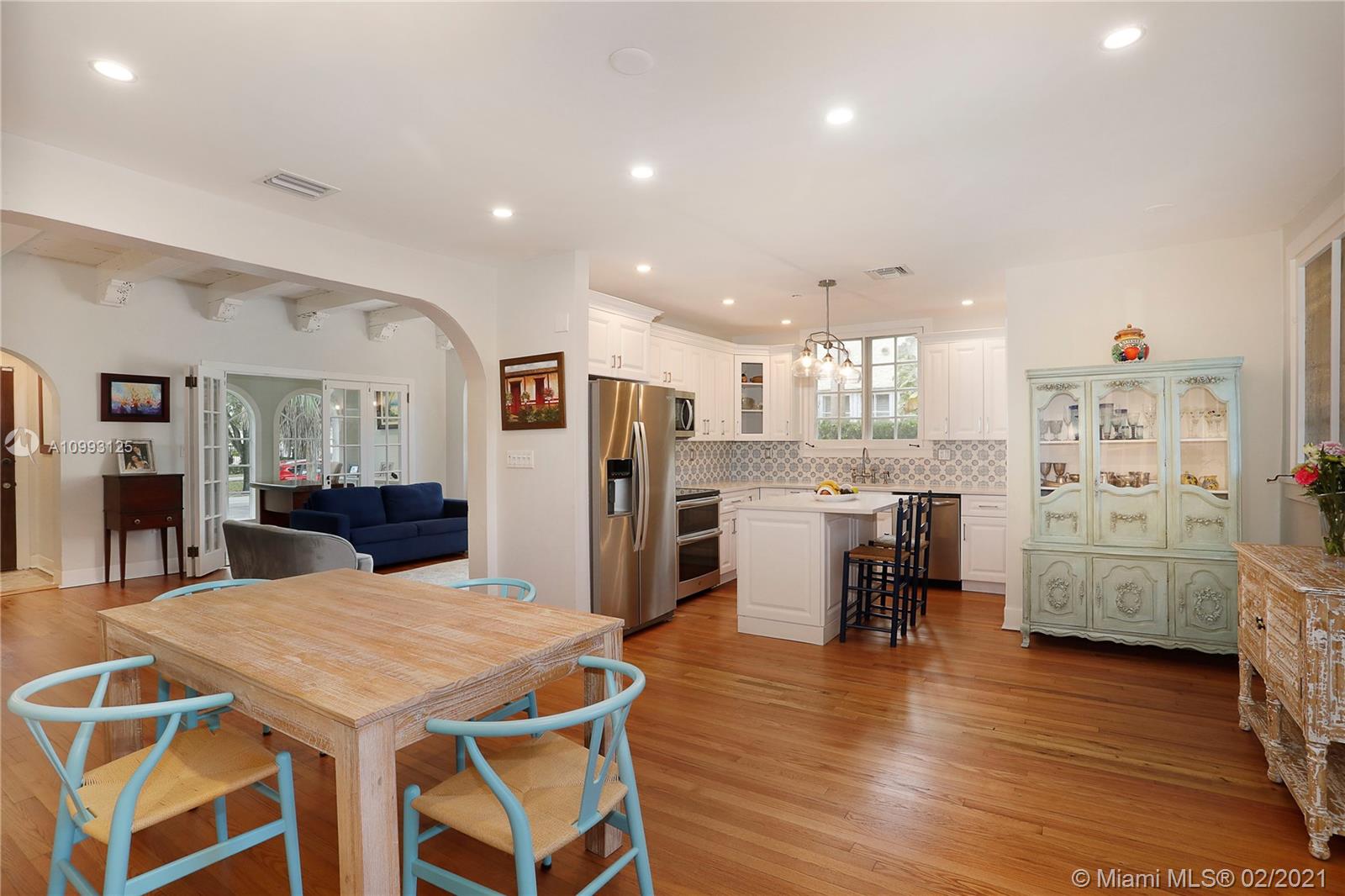 This absolutely charming Old Spanish home is perfectly updated and sits on a deep, private lot with lap pool and gorgeous palm trees. The main home features a new spa-like master bath and walk in closet (what was a 3rd bedroom), large second bedroom & bath, new kitchen w/ lovely details & new appliances that opens to dining and living rooms, functioning fireplace, Florida room perfect for your home office flooding the house with natural light, newly refinished wood floors, new a/c, carport, partial impact glass, new roof. The back patio overlooks the yard, newly refinished pool & guest house. This quaint guest house offers a small liv room, bedroom, bath and efficiency kitchen. Just steps from the Granada golf course on prestigious Alhambra Circle with large median.