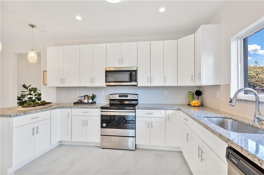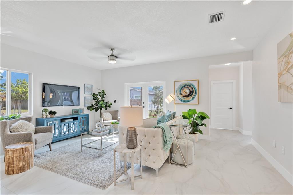 BRAND NEW HOME. NEVER LIVED IN. Move right into this meticulously & tastefully designed home. Home features an open floor plan with 9 foot ceilings allowing lots of natural light throughout. Home Includes: Concrete Flat Tile Roof, Impact Doors and Windows, High Efficiency A/C system, tank-less water heater, automatic sprinkler system, 42" kitchen cabinets, recessed lighting, 1 car garage with auto opener, and the list goes on and on. Main bedroom includes a walk in closet, french doors exiting to a patio area, a beautifully designed bathroom with double sinks and a stand up shower. This home has a nice foyer entrance area and a powder room (1/2 bath) off of the main family room. The flooring is all 24 x 24 (highly durable) porcelain tile. Don't miss out on this one. Will not last long!