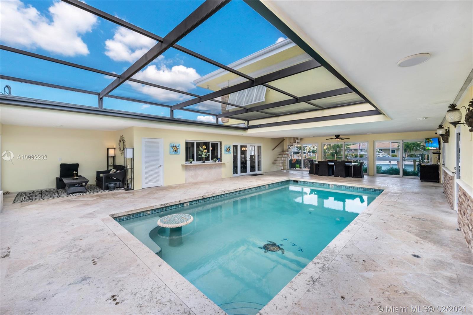 Gorgeous courtyard home on a wide canal with views of the Intracoastal! This unique home sits on 99ft of waterfront, NO FIXED BRIDGES with new seawall, new dock, and new 30,000lb lift. This 4 bed, 3.5 bath home has a large upstairs master bedroom with sitting area, his & her’s dressing rooms and separate vanities. All other bedrooms are downstairs off the newly refinished, heated, salt water pool. Kitchen has been updated with granite counters and all SS appliances. Italian porcelain tile throughout kitchen, dining area and great room. Great home for entertaining!