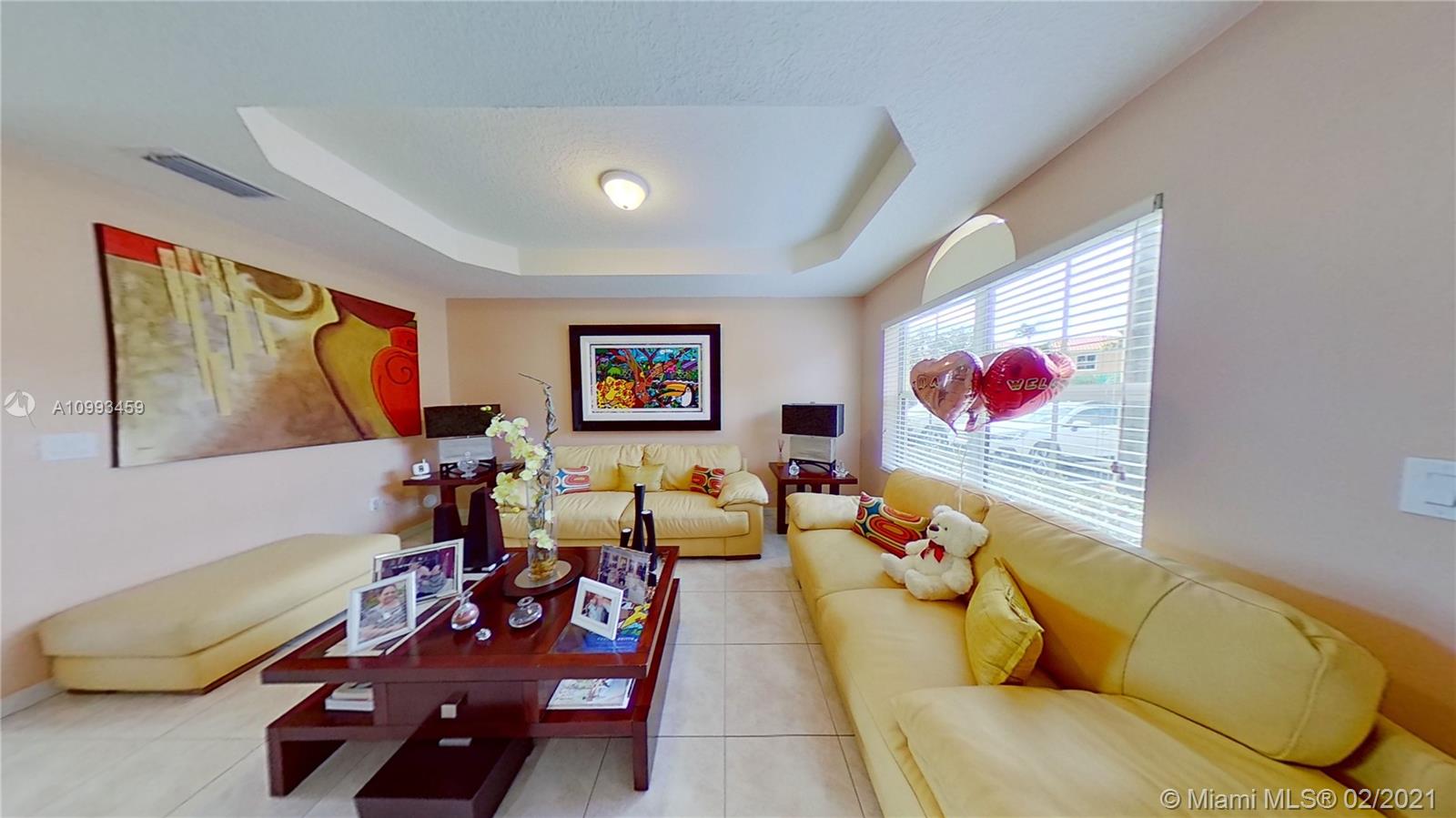GEORGEOUS TWO STORY TOWNHOUSE IN THE GATE AT DORAL, THIS UNIT CORNER FEAUTURES AN OPEN AND LIGHT FILLED FLOOR PLAN WITH A GREAT LIVING AREA, DINING, 3 BEDROOMS, 2.5 BATHS, OPEN KITCHEN WITH WHITE WOOD CABINETRY AND ELEGANT BLACK GRANITE COUNTERTOP, THE HOME HAS CERAMIC ON FIRST FLOOR, ON SECOND FLOOR AND STAIR HAS CARPET COLOR CHAMPAGNE. ENJOY A BEAUTIFUL LAKEFRONT VIEW FROM YOUR PRIVATE PATIO. THE AC WAS REPLACED IN 2018, IMPACT PATIO DOORS, SECURITY CAMERA SYSTEAM. MANY GUEST PARKING IN FRONT OF THE PROPERTY. THE PROPERTY IS IN AMAZING CONDITIONS, GREAT SCHOOLS DISTRICT LOCATION. " ALL FURNITURE IS FOR SALE SEPARATELY FROM THE PROPERTY."