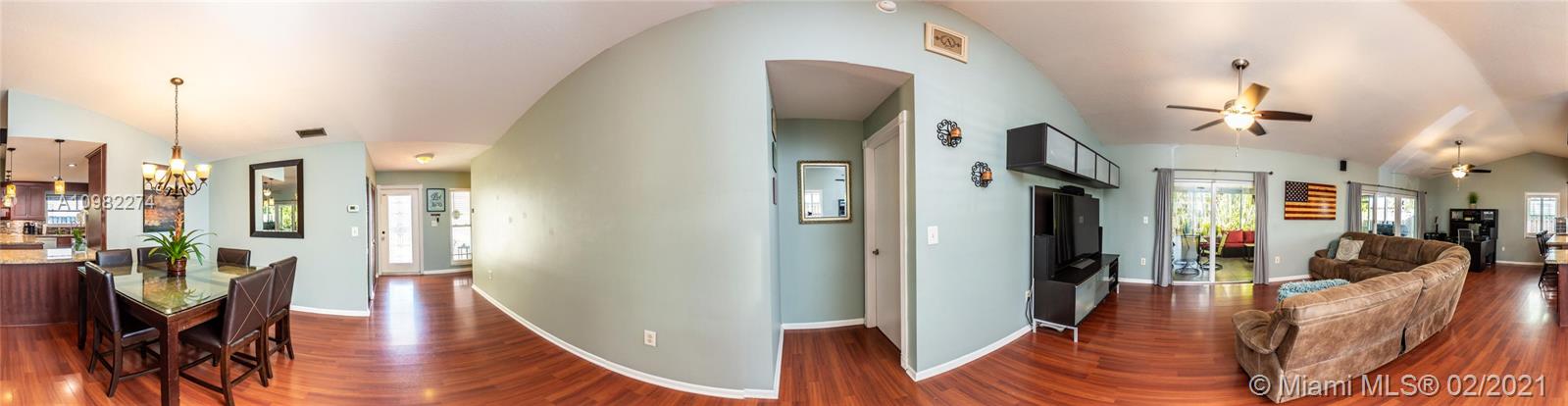 Come see this charming 3 bedrooms 2 bathrooms one story home nestled in one of Davie's best "A" school zone communities. It features NEW ROOF AND ALL IMPACT WINDOWS. The open floor plan of this home shows off its renovated bathroom and kitchen with granite counter top and stainless steel appliances. Also, laminate floors throughout the house. The Washer and Dryer are new. The back patio is enclosed, insulated and peaceful for relaxation and the enclosure is permitted. Community is Ivanhoe At Waverly Hundred. Perfect location close to high way (I 75) and restaurants and supermarkets.
