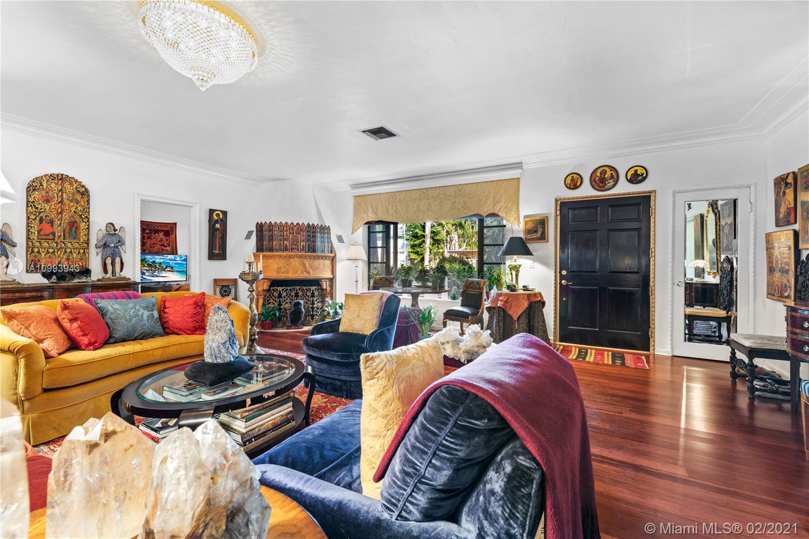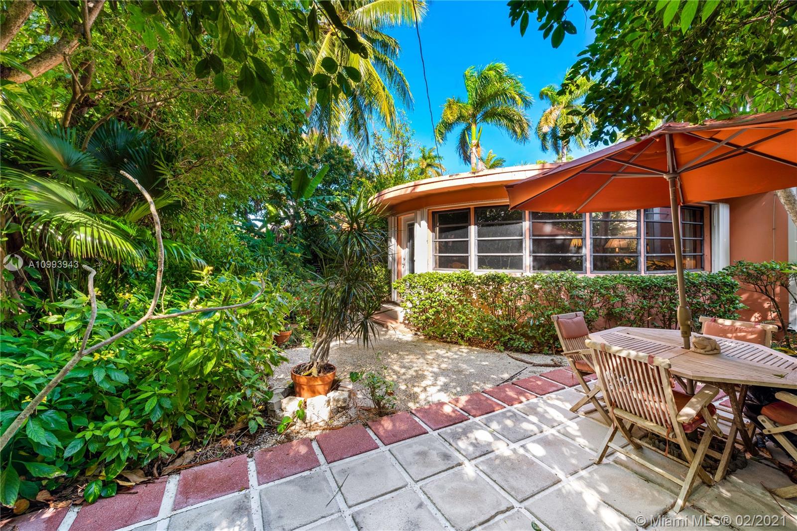 Nestled into an "enchanted garden", this spacious home offers a tranquil retreat from the hustle of the city. This home features Brazilian cherry hardwood floors, a spectacular statement fireplace, remodeled marble bathrooms with a jacuzzi tub and multi-jet showers, closets with built-in custom cabinetry, and a remodeled kitchen with high-end appliances including a Viking gas range and professional hood. The home is very well maintained with new copper plumbing (2002), a new roof (2003), full accordion shutters (2004), a newer 4 ton AC unit, tankless water heater, etc. The landscaping is a low maintenance organic butterfly garden with mature fruit trees including Mango, Banana, Papaya, Cherry, Guava, and Jackfruit. There is also room for a pool if the buyer prefers. Will go fast!