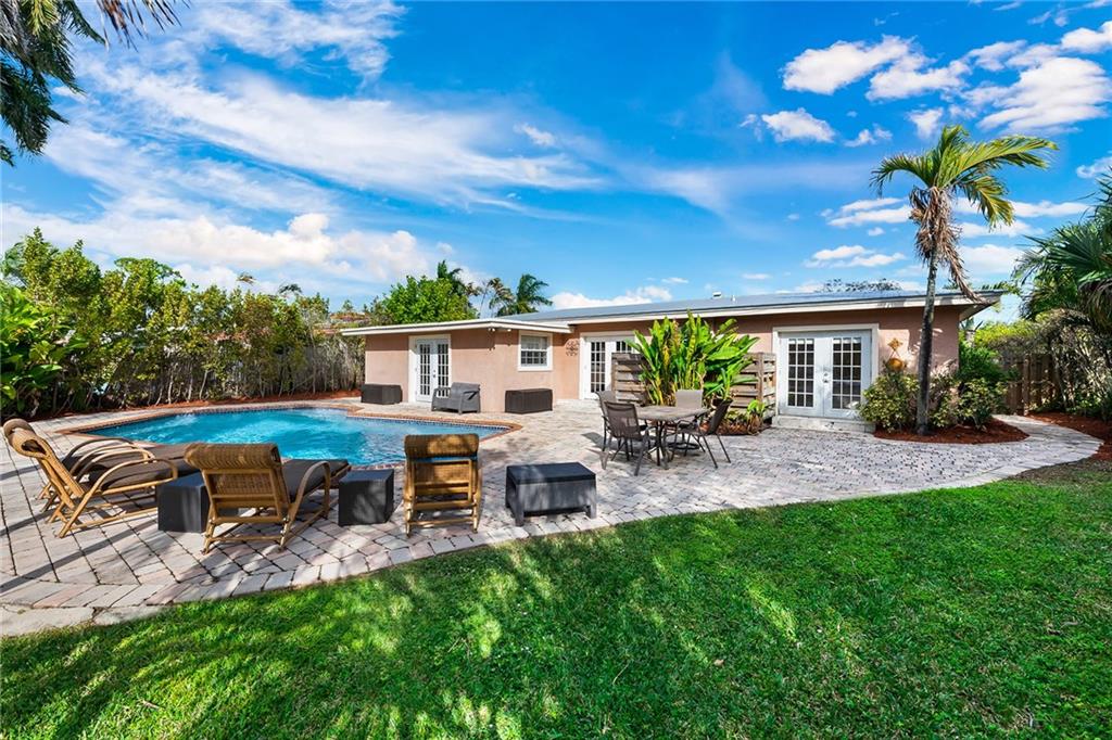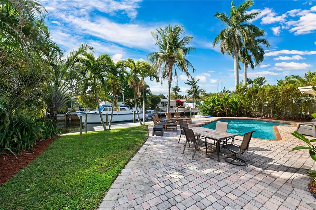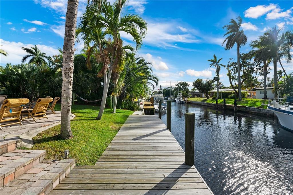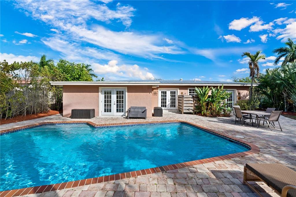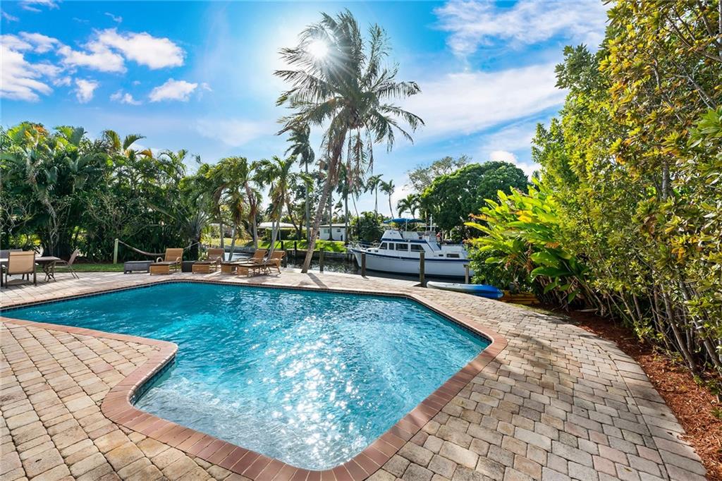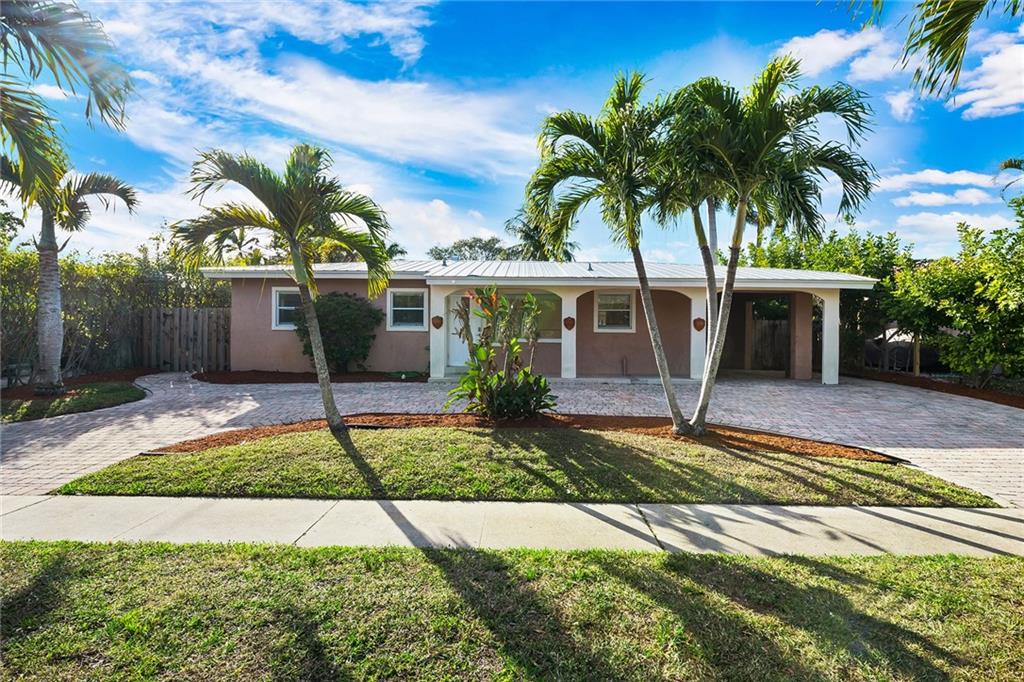 Beautiful 3 bedroom, 2 bath waterfront home in the quaint neighborhood of Flamingo Park. Deep water ocean access with 70 feet of water frontage with no fixed bridges. Open living floor plan with travertine tile, bamboo flooring, French doors, recessed lighting and spacious rooms. Spectacular backyard with paver patio, fenced yard and oversized pool. 1 car carport. Metal roof in 2017.