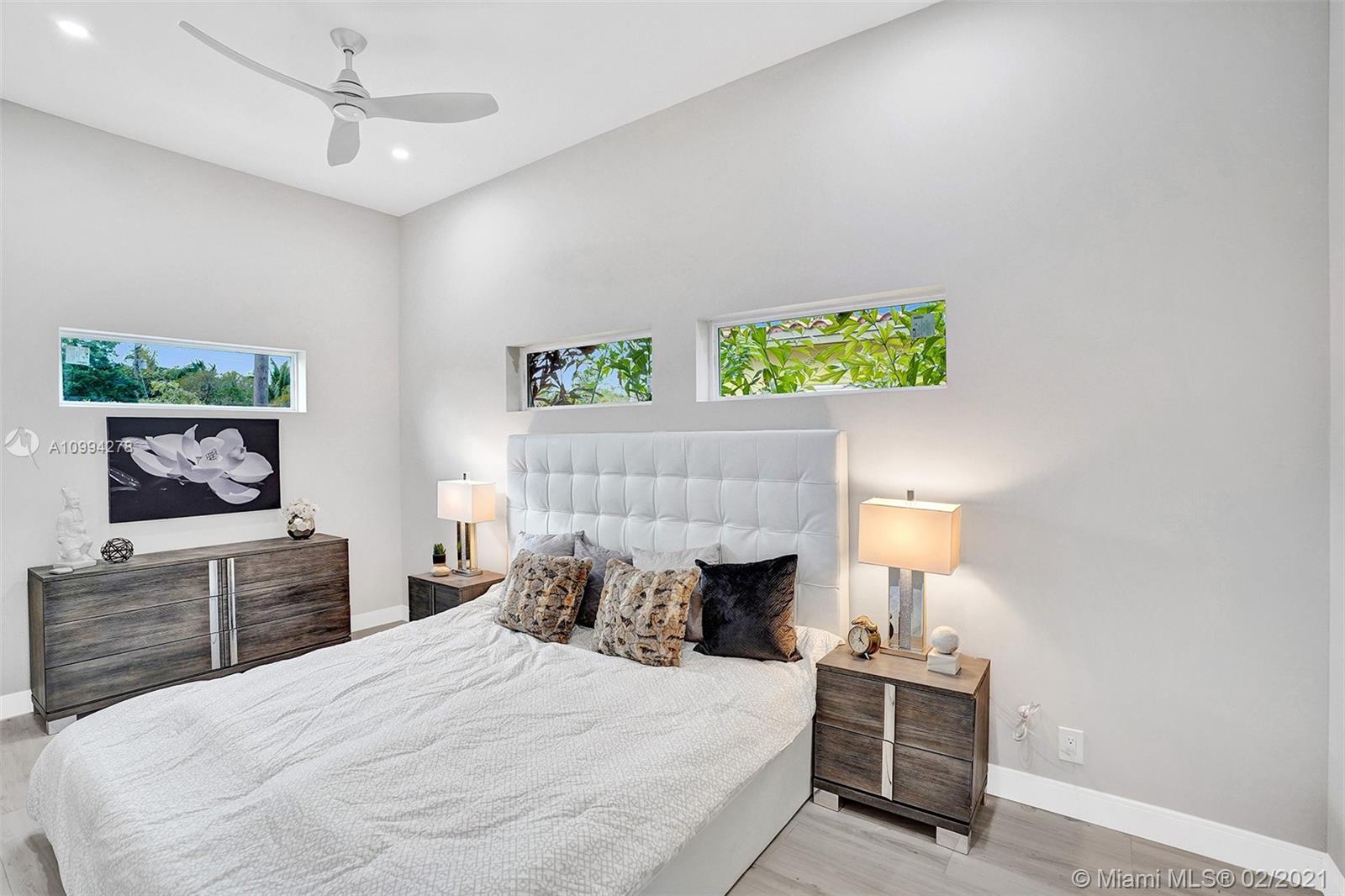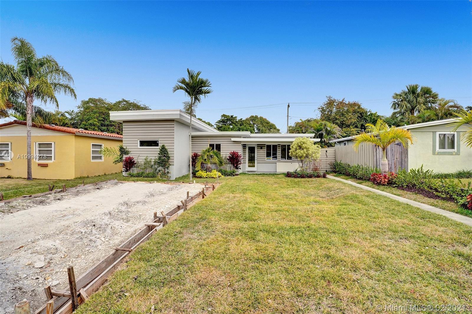 "Mid-Century Modern Duplex" consisting of a 2/2 & 1/1 has been re-designed & re-inspired to the present, by “Griffin Designs of Ft. Laud”. Enter the 2/2 with a New Custom Kitchen w/Quartz countertops. Top of the line S/S Appliances & a Skylight that radiates natural sunlight into the home. New fireplace in the living room. New Master Suite w/ 14 foot hi volume ceilings, Dual custom vanities, & an oversized shower plus 2 closet. Your master suite invites you to a private tropically landscaped backyard & newly fenced Plus a New resort styled pool.The1/1 is just as fabulous as the 2/2! Great investment for Air B & B," snowbird retreat" Professionally Staged By: Florida Stage Hands & Design's Of Wilton Manors.