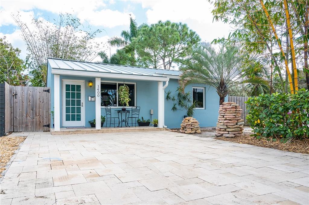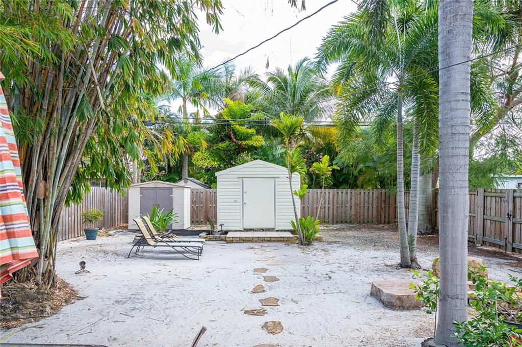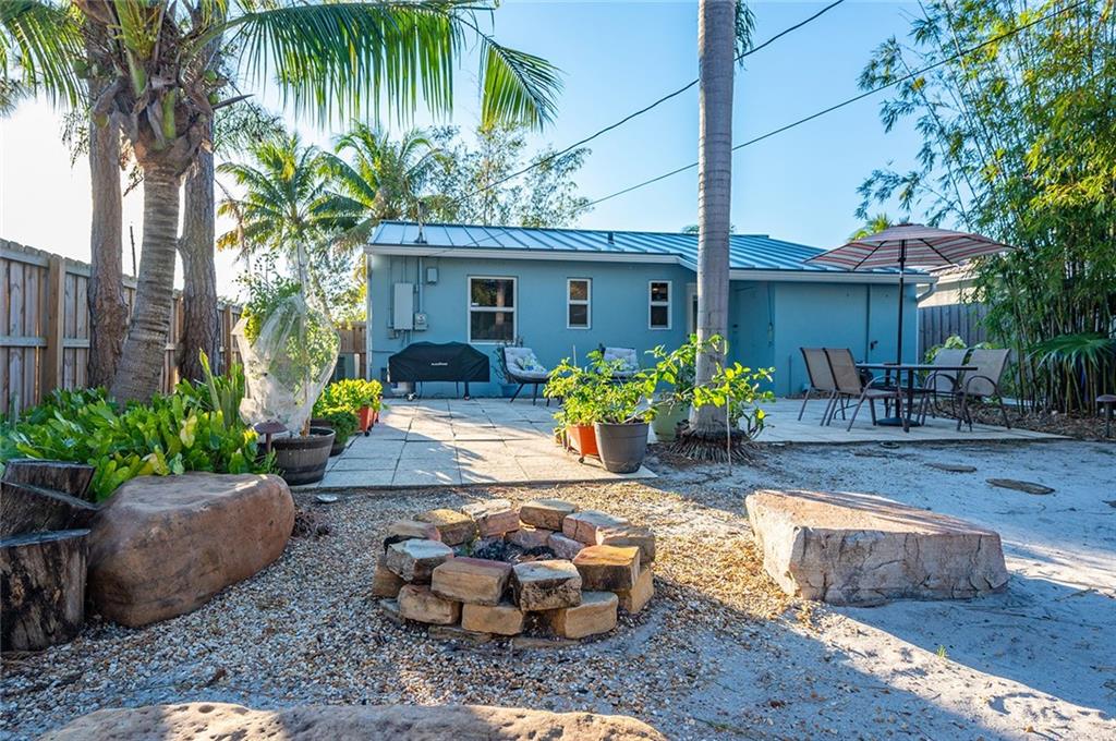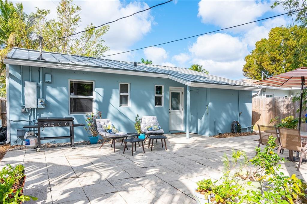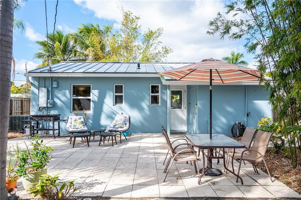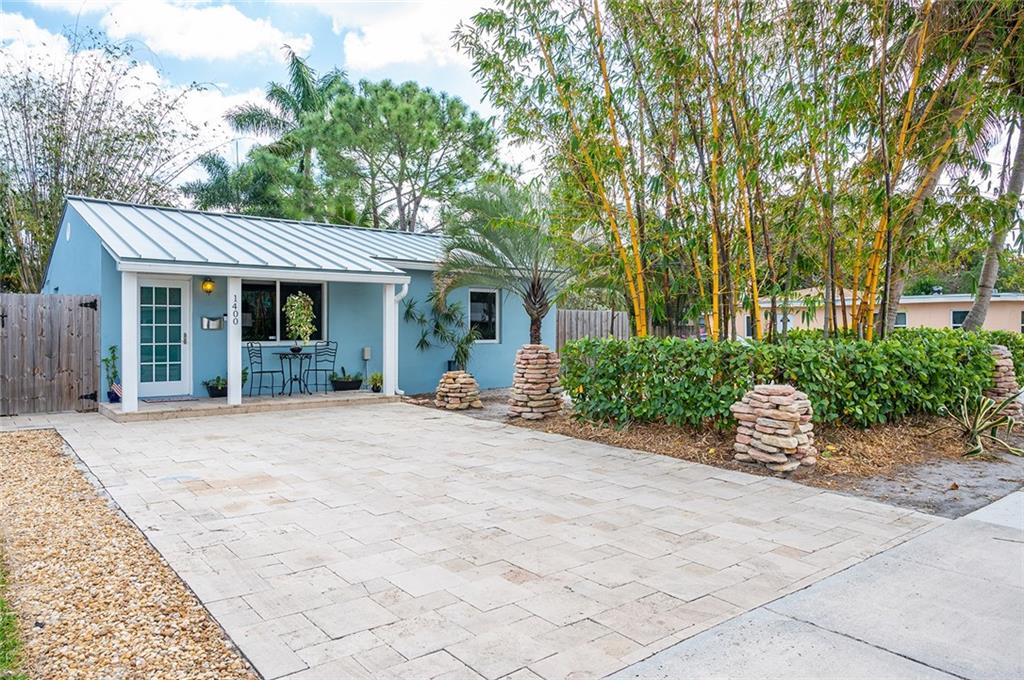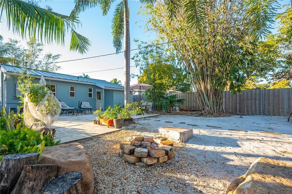 Gorgeous Tropical Gem! Beautifully maintained 2bd/ 1ba single family corner lot home, includes long lasting metal roof, hurricane impact windows and doors, new energy efficient A/C, ducts, and grills, all new copper plumbing, Italian walnut wood laminate floors, stylish modern remodeled bathroom, Eco smart instant water heater, newer energy efficient washer and dryer, and custom Levolor blinds. For the huge backyard you will find gorgeous pressured washed marble pavers that follow through from the driveway to the stone boulder seating fireplace in the backyard, two Sheds, with mature pine trees and bamboo, and a new wood fence with a side entrance gate for easy access. The bigger shed has been wired for electric and A/C providing additional flex space.