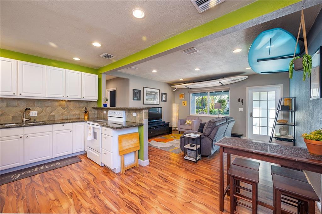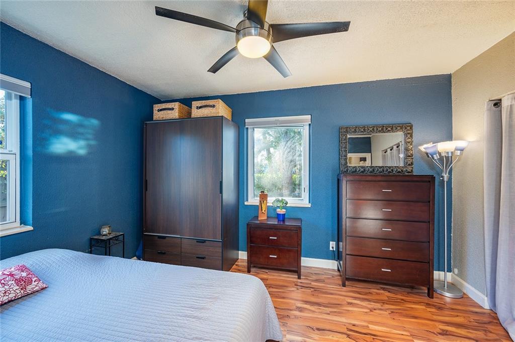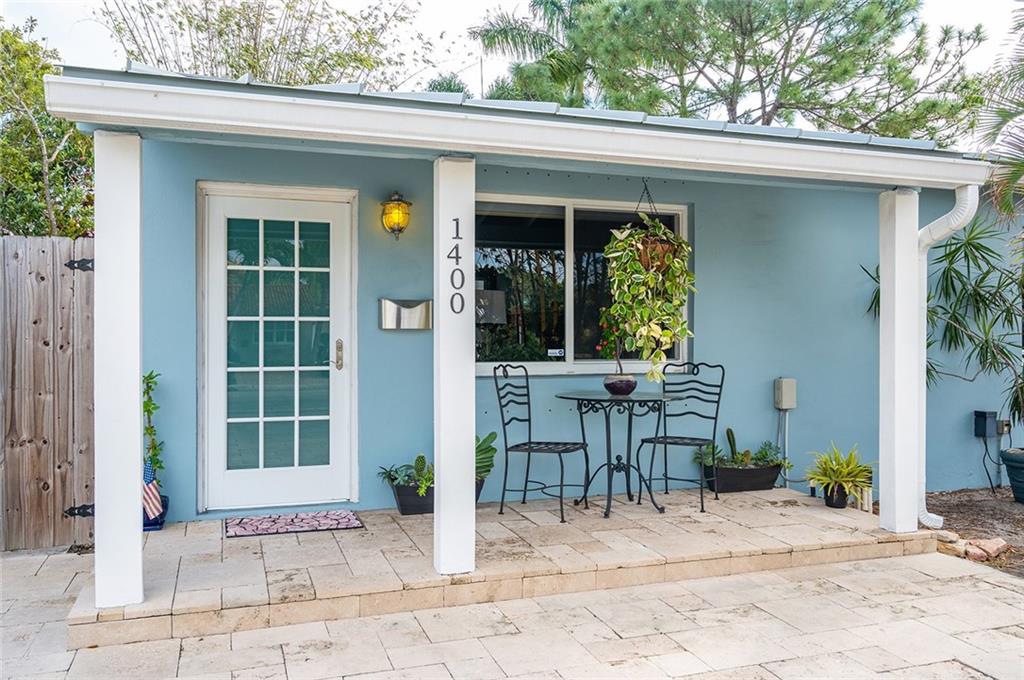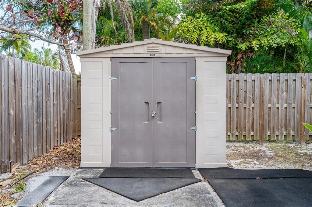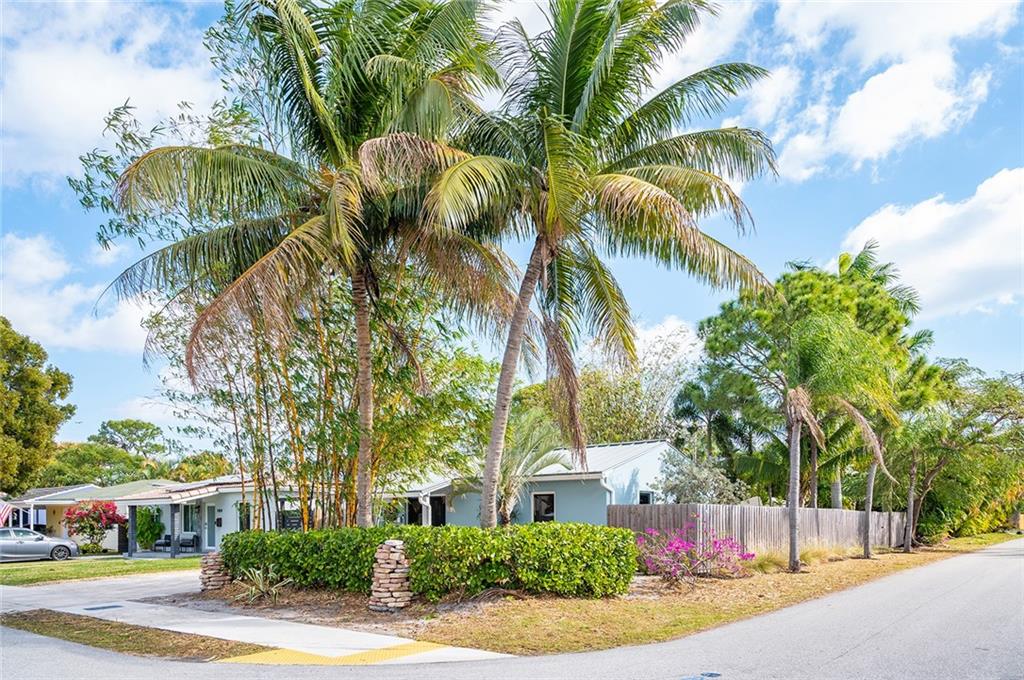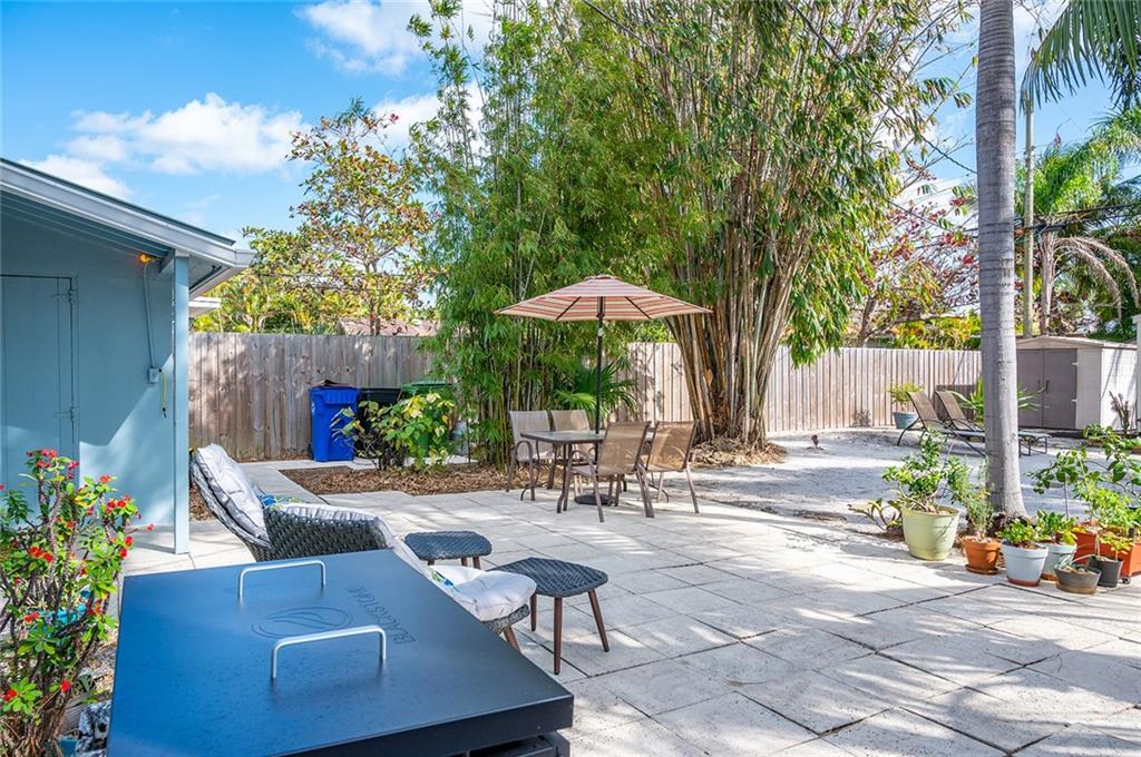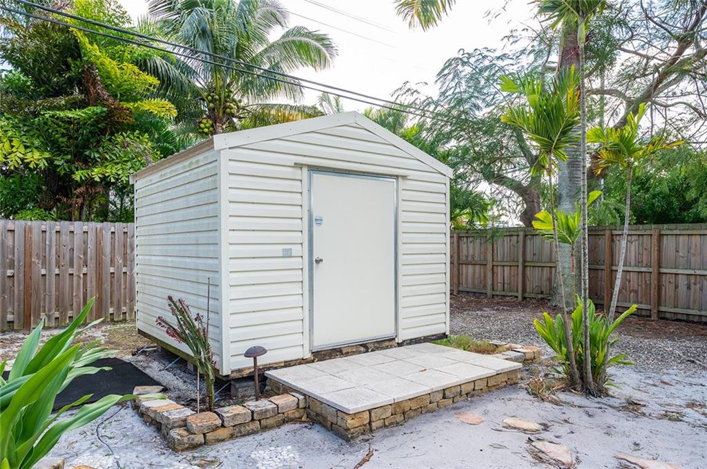 Gorgeous Tropical Gem! Beautifully maintained 2bd/ 1ba single family corner lot home, includes long lasting metal roof, hurricane impact windows and doors, new energy efficient A/C, ducts, and grills, all new copper plumbing, Italian walnut wood laminate floors, stylish modern remodeled bathroom, Eco smart instant water heater, newer energy efficient washer and dryer, and custom Levolor blinds. For the huge backyard you will find gorgeous pressured washed marble pavers that follow through from the driveway to the stone boulder seating fireplace in the backyard, two Sheds, with mature pine trees and bamboo, and a new wood fence with a side entrance gate for easy access. The bigger shed has been wired for electric and A/C providing additional flex space.