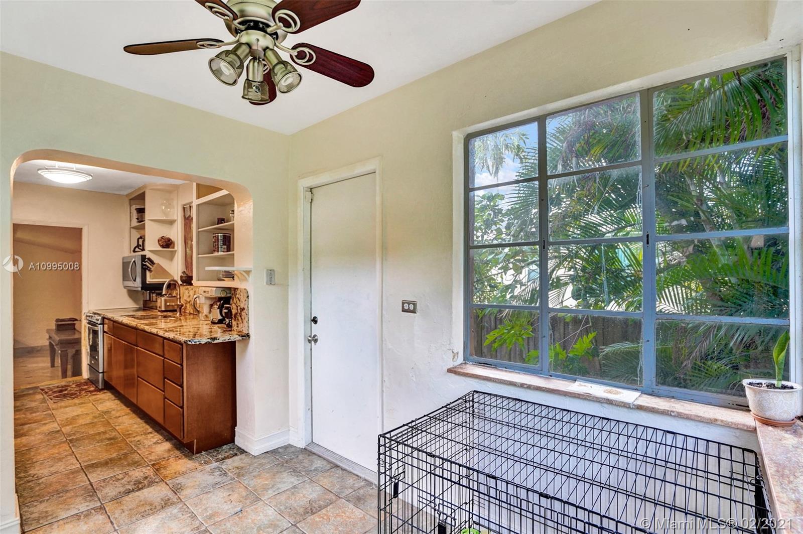 Extraordinary 1930's home with tons of beauty, sitting on an oversized lot of 14,300 sq ft. Located in the very desirable Miami Shores, this home features 3 bedrooms and 2 bathrooms in the main house, and a separate 1/1 living Guest House that is detached, and filled with charm. The main house offers original oak floors, spacious floor plan with a large family room and sun room, volume ceilings, wood burning fireplace, and much more. Very ideal detached guest house, with a 2 car garage on the first floor and a very comfortable 1/1 on the second floor, with an office. Guest house is currently vacant. Fenced yard with an abundance of trees, flowers and butterfly garden. Fruit trees include:avocado, mango, lychee, papaya, mamey and banana trees. Update plumbing and Electrical.