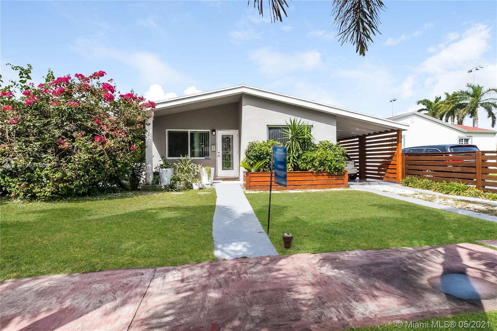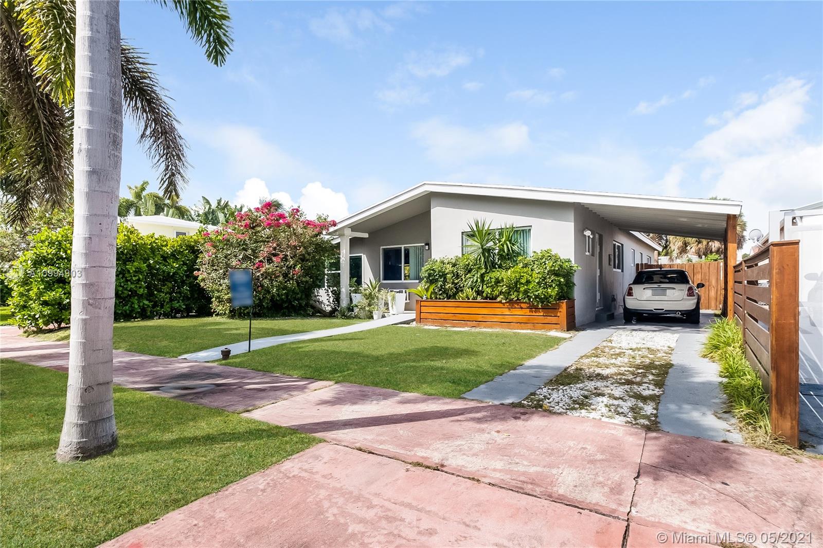 Gorgeous mid-century masterpiece sited on a wide street with bay breezes. 3 bed/2 baths. New Impact Windows & doors. Stunning original terrazzo floors. New kitchen & stainless appliances with abundant cabinetry. Entertain in the formal living room or in the adjacent den with doors to a private side courtyard. A few steps from the Normandy pool & park. Gigantic fenced backyard is a tranquil haven with room for a pool or to build in-law quarters. Covered porte-cochere in the MiMo style. Live the Normandy Isle Village lifestyle with great restaurants, shops and access to the bay, parks & fabulous beaches within steps of your new home. Normandy Isle is the trendy place to live in 2021!