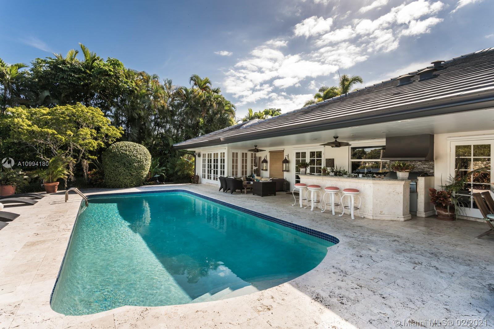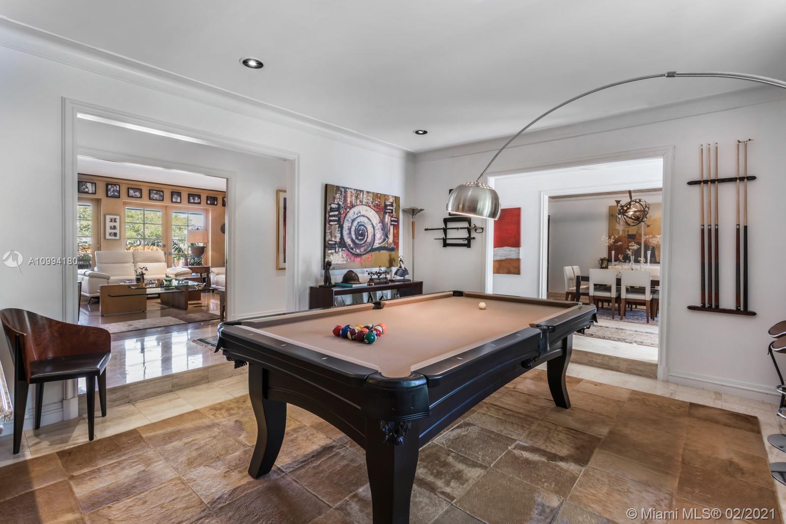 Beautiful home in the peaceful and scenic Hammock Oaks guard-gated Coral Gables community. This 5,136 Sq. Ft. residence, with a casual yet elegant style, has 4 bedrooms and 3.5 bathrooms, living room with fireplace, formal dining room, chef’s kitchen with breakfast area, billiard room, and a spacious main suite with a luxurious bathroom. The spectacular patio, complete with an alfresco dining area, summer kitchen, bar and pool, makes the home ideal for relaxing and entertaining. The residence is surrounded by lush, mature landscaping, and the French windows and pocket doors bring in tranquil and beautiful views. Conveniently located only minutes away from schools, shopping, dining and entertainment.