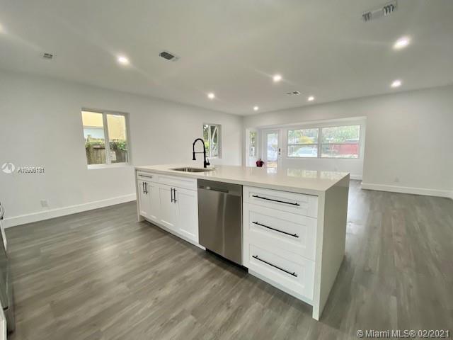 Open concept home that smells like NEW! This 3 bedrooms 2 baths totally has been beautifully remodeled with convenient brand new hurricane impact doors & windows, including front and back yard access door. Overextended kitchen with gorgeous quartz countertops, white custom cabinets, deep sink, stainless steel appliances and so much more. Tasteful new vinyl floors throughout. Upgraded bathrooms with double sink, new shower heads and modern tile floor. Brand new tankless water heater, new stylish bedroom and closet doors. Oversized backyard with room for a pool. Utility room with washer and dryer. Air conditioning is 2015, roof is 5 years old. No restrictions, No Association, No Pets restrictions. Commercial vehicles welcome. This is the ONE! Contact listing agent for more information.