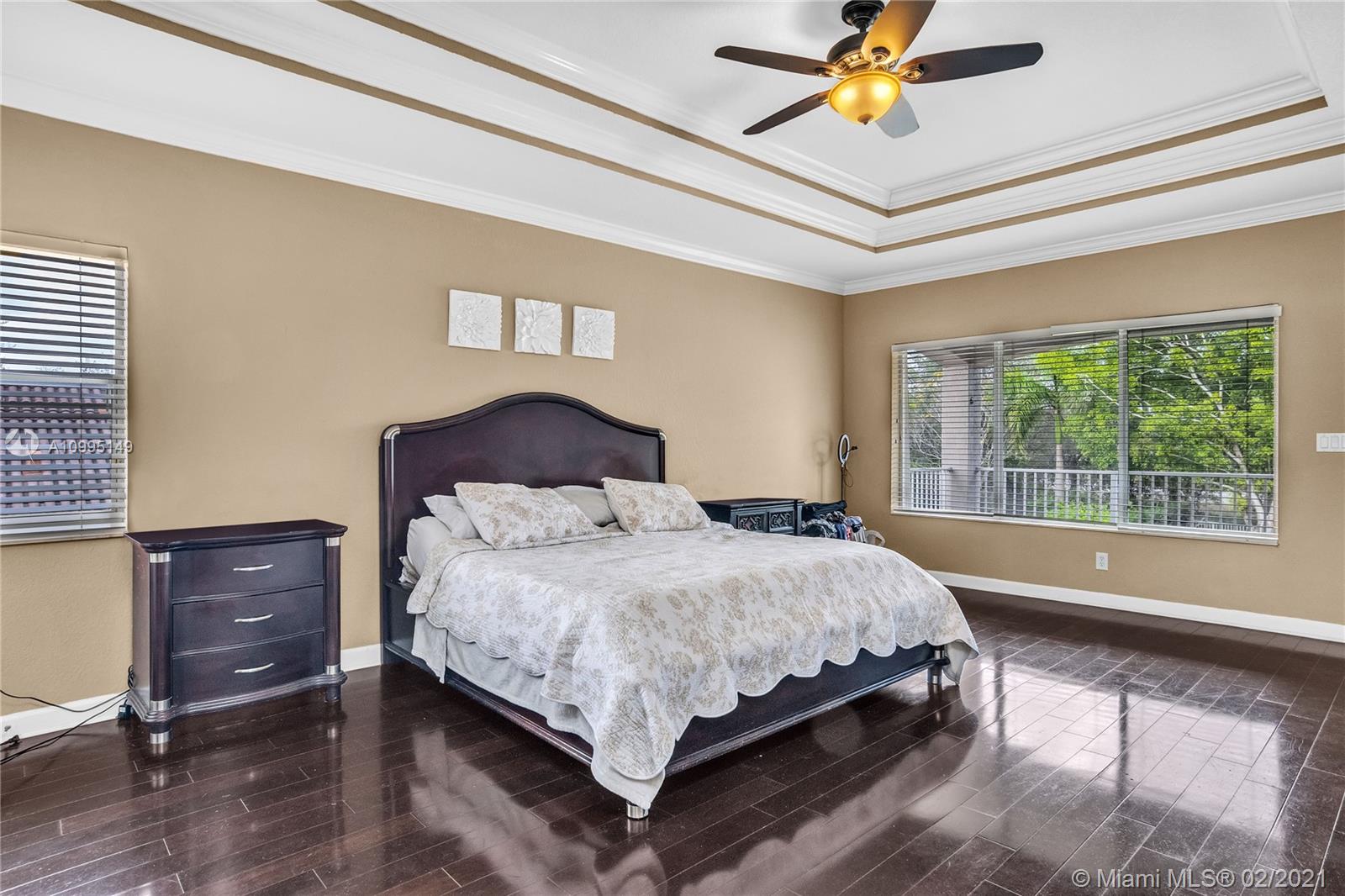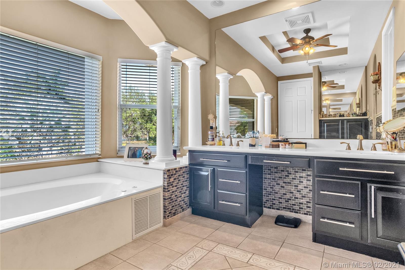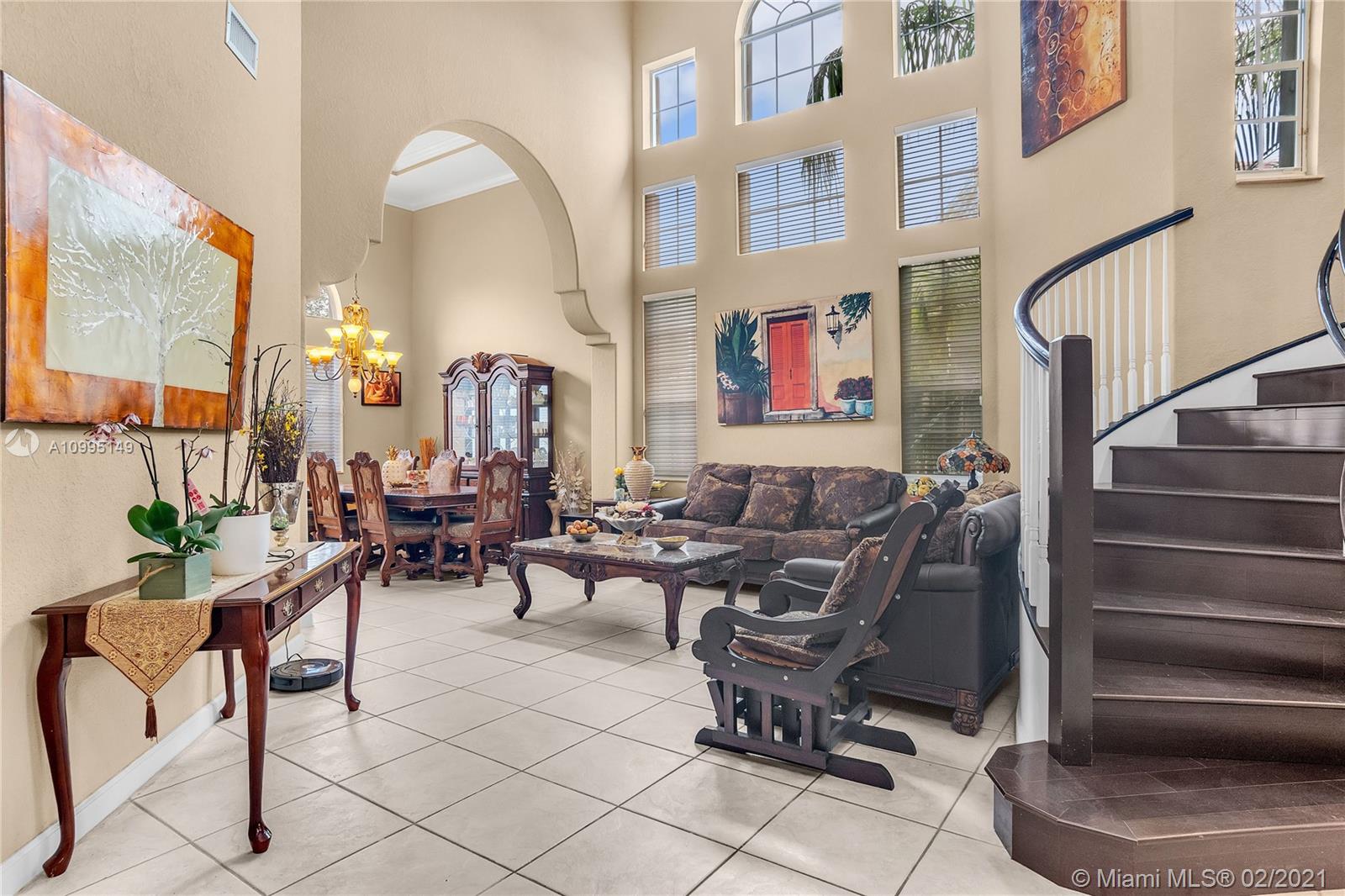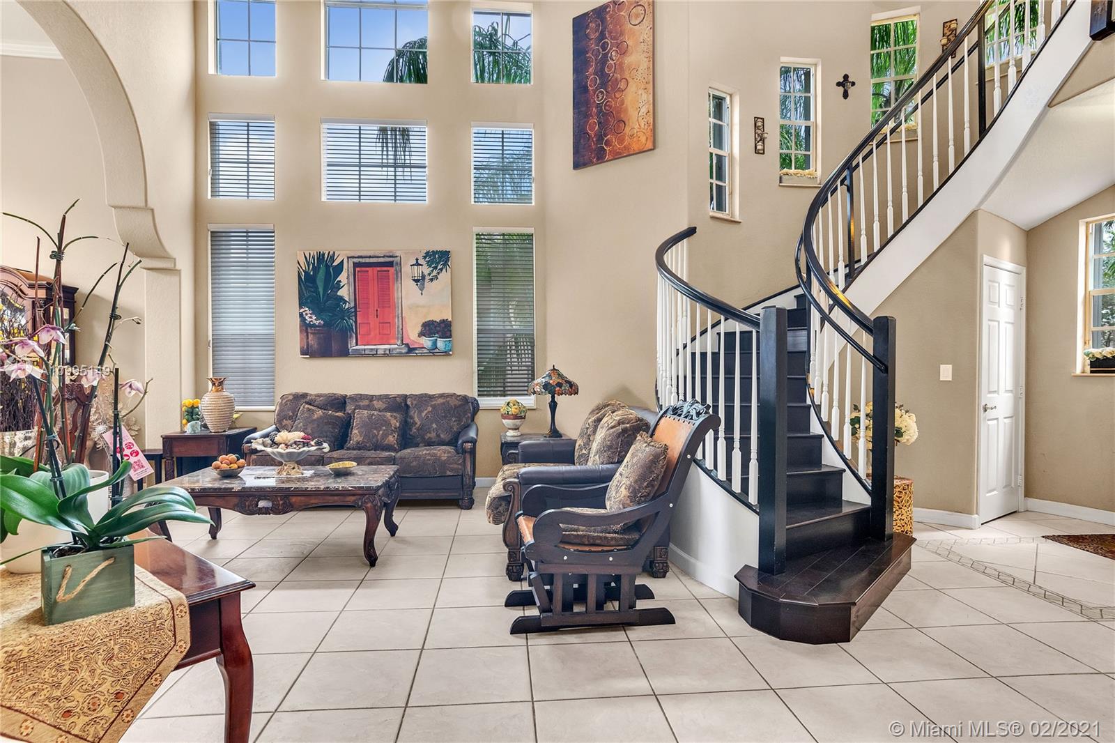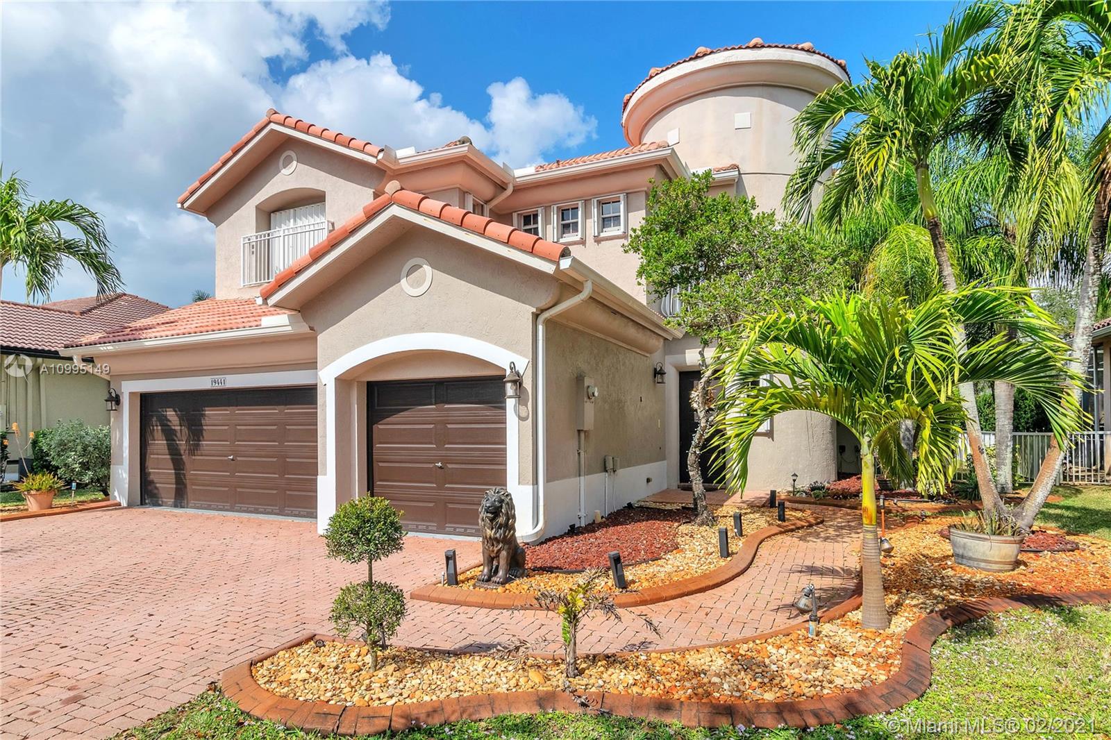 Stunning home@Sunset Lakes exclusive community to the West of Miramar Parkway. Over 12,674 sq ft lot, garden view. Your dream home is located just before a cul de sac, with almost 3,000 sq ft under a/c, 4 beds 3.5 baths, vaulted high ceilings, spiral staircase, ceramic & wood floors, accordion shutters, security system & lighting, 2 master bedrooms (1st floor with private entrance) original master on the 2nd-floor, kitchen with granite countertops, eat-in area, stainless steel appliances, pool + garden. The community offers an awesome clubhouse 18600 Sunrise Ave. Includes room for events, tennis, basketball, gym, pool, playground. $219.00 p/m. No HOA pre-approval needed. By appointment-only/Listing Agent to open door. water heater 2109/AC 2019-2020.