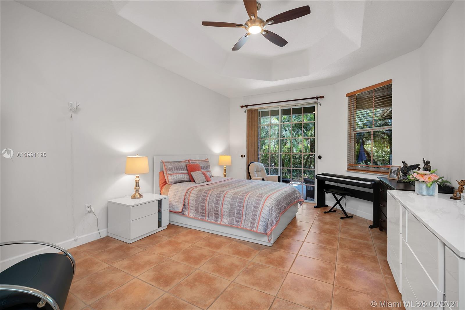 Beautiful 3/2.5 Home on Cul-de-sac. Formal Dining. Master Bathroom Shower Tub with double faucet. Bedroom w/French Door. Walk-in Closet. Open Kitchen with stainless steel appliances, mini-bar w/wine cooler & granite countertops, backsplash, kitchen island. Totally remodeled bathroom w/frameless glass showers enclosure & master bath w/jacuzzi. Crown moldings, elegant light fixtures, tile flooring, surround sound, LED hi-hats thru-out. Garage converted, used as 4th bed, that unit A/C is 2018. One in the main house & another one in the garage. Fenced backyard, stylish patio w/custom pergola & jacuzzi for 6 people, Keystone tile on the terrace, stone veneer on columns/walls & professional landscaping, perfect for entertaining. Great location, close to Shopping Plazas, Restaurants, Highways.