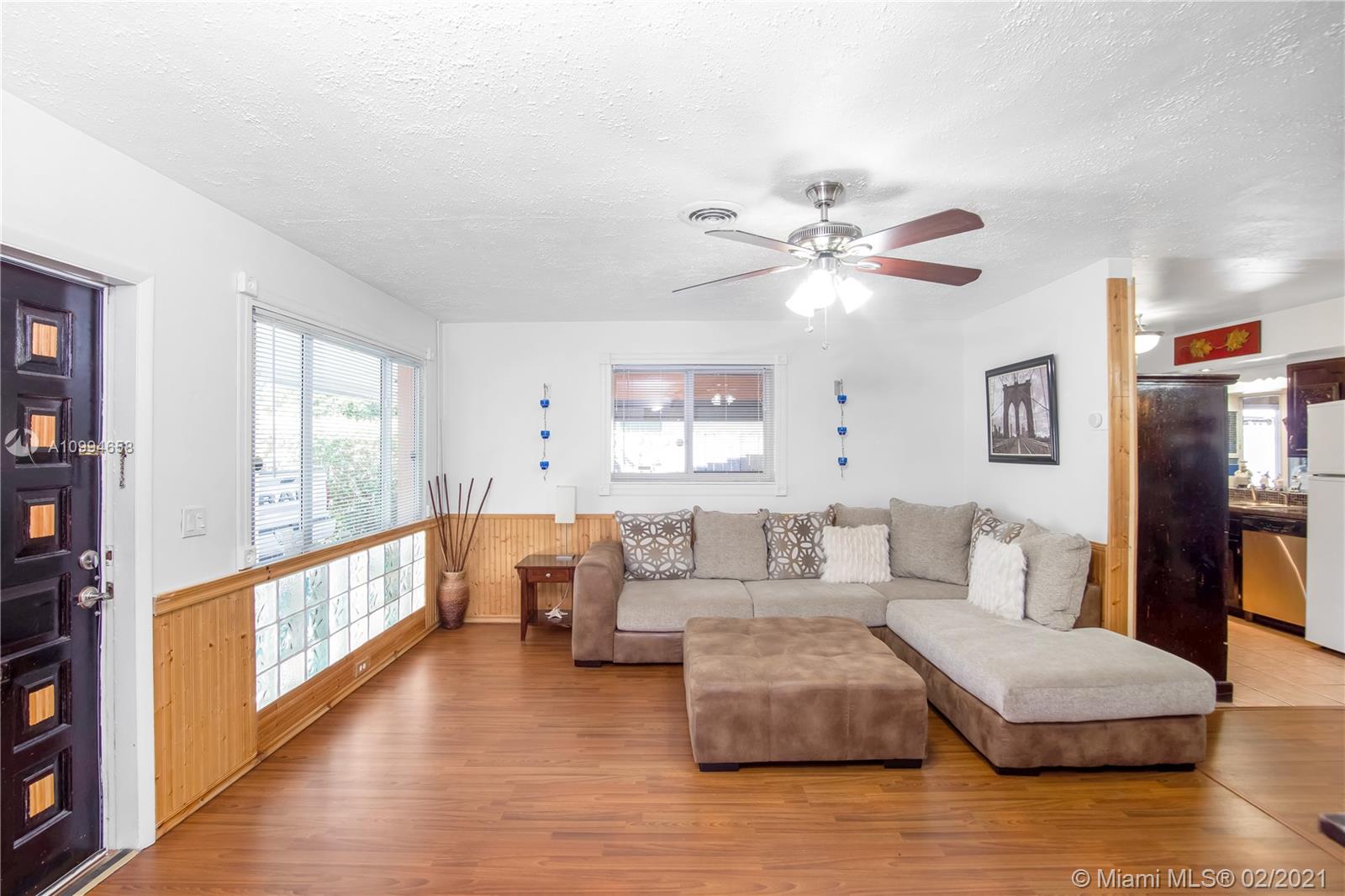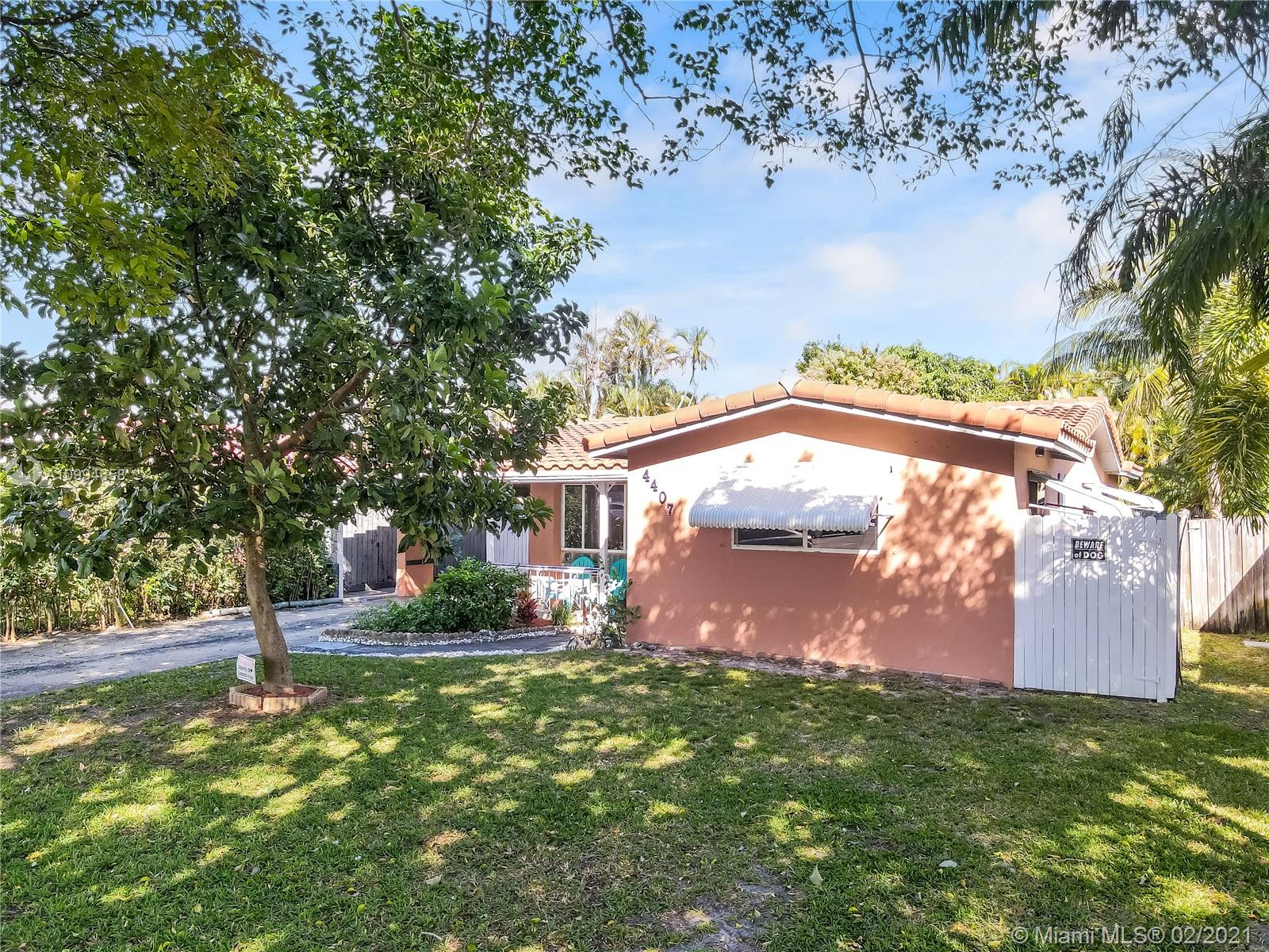 Well-maintained 3 bedroom 2 bathroom home in the desirable Hollywood Hills area . Home features laminate wood flooring (Terrazzo floor under), new roof installed in 2016 and gas powered stove, dryer and water heater . Spacious backyard with assorted fruit trees that include mango, avocado, starfruit, nispero, guanabana, hog plum, calamondin. Security cameras in place, not connected. Single Car Carport. Great school district and centrally located to shops, restaurants and a short 16 minute drive from the beach.