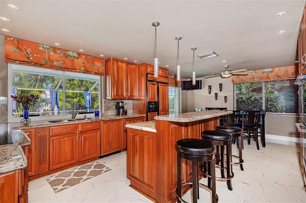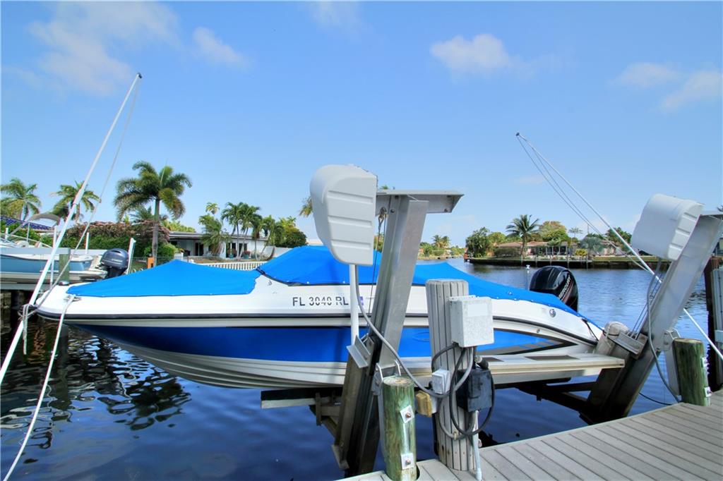 Magnificent home located in desirable Imperial Point. An open floor plan layout, this immaculate home is move in ready.Attention to detail is evident.New 18" Carrara marble tile throughout living area.Kitchen features beautiful custom cabinetry, granite counters, island, wine cooler, & high end SS appliances including a double wall oven.Double French sliding doors open both the living room and kitchen area to the pool & patio.Screened pool designed for entertaining,includes several patio areas that are private and serene.Gorgeous ocean access water view with surrounding lush tropical landscaping.Private dock with boat lift (2 fixed bridges).Details include crown molding,wood floors in bedrooms,plantation shutters,accent lighting and closet built-ins.Den/Office could be fourth guest bedroom