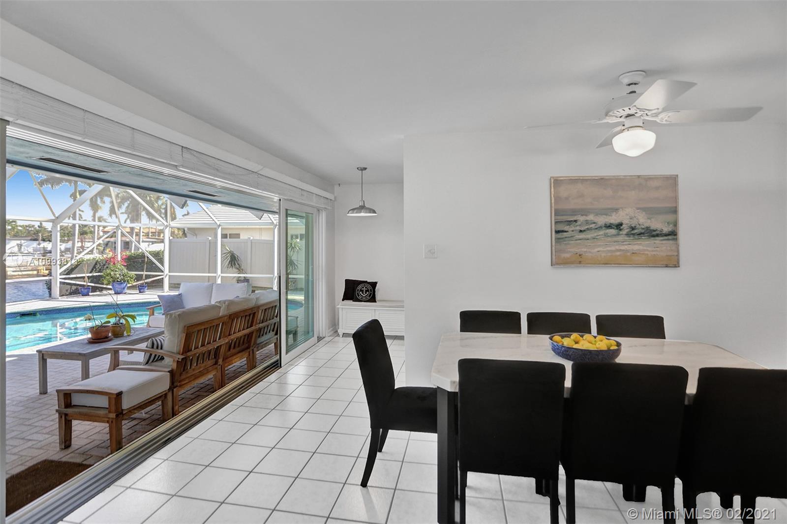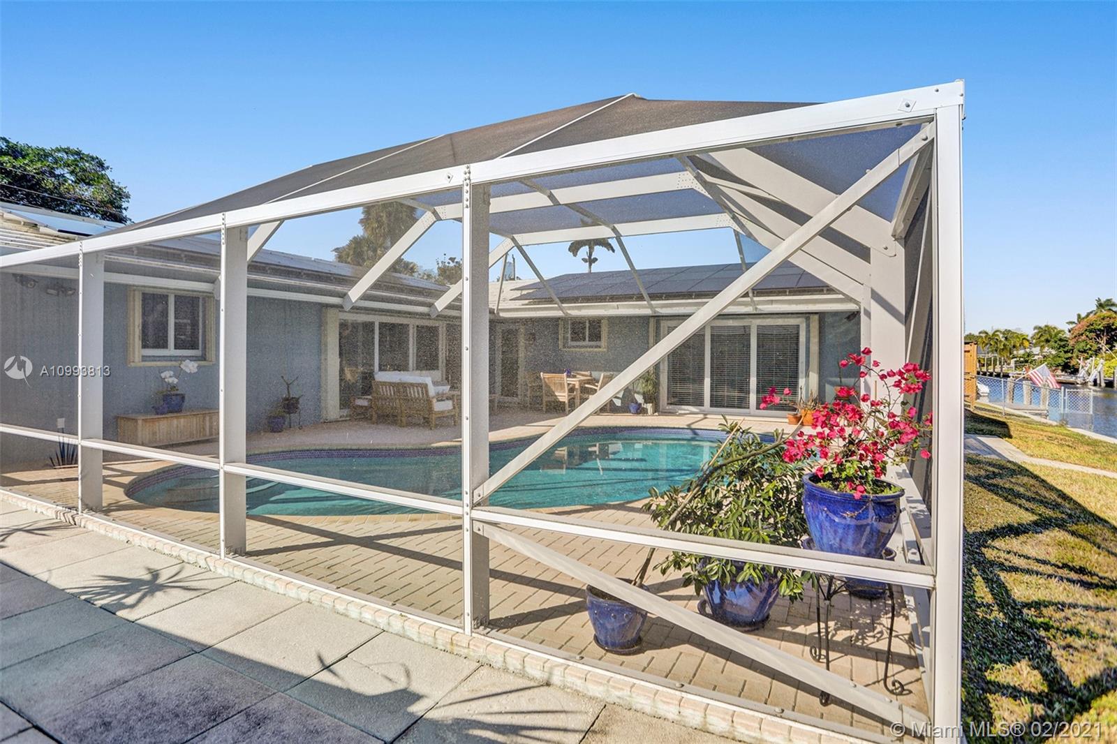 Captivating & spacious waterfront, pool home in highly desired Coral Ridge Isles. Ocean access in minutes, 4 fixed bridges. Boasting 75ft of waterfront this impeccable cul' de sac home has it all. Bright, spacious & open living concept floor plan, 2 large bedrooms, 2 baths & bonus (office/den space), inviting crystal clear pool & waterfront views from almost every room in the house & 1 car attached garage. All Miami Dade rated impact windows & doors, accordion shutters for additional protection, environmentally conscious EcoSmarte Ozone pool system (C02 +UV Sterilizer). Tech upgrade to whole house surge suppressor system, ultra low loss coax + CAT6 in bedrooms/living room, 16 channel security system w/ DVR, 14 night vision cameras with infrared LED's. 40 Panel solar grid system (optional)