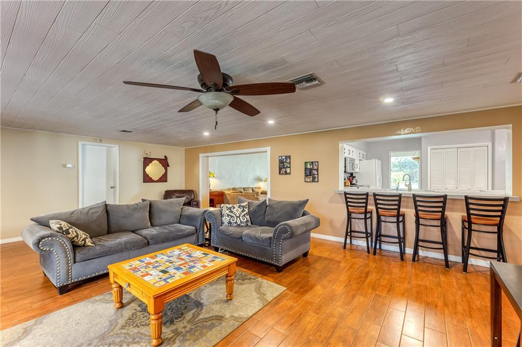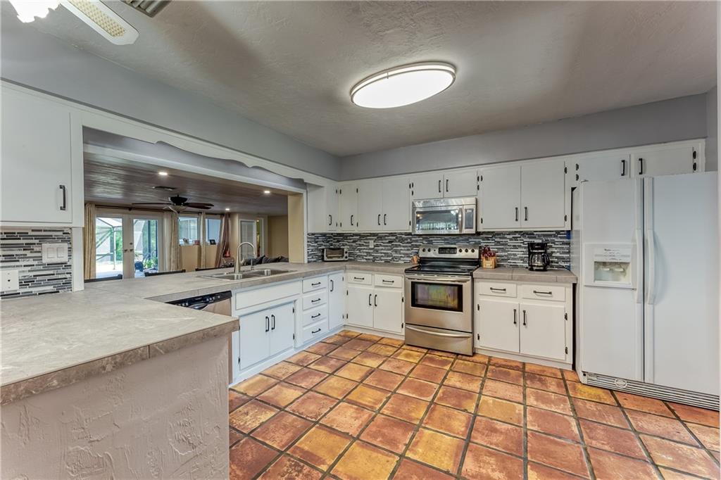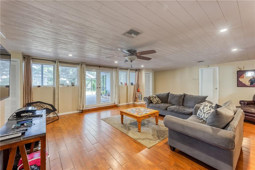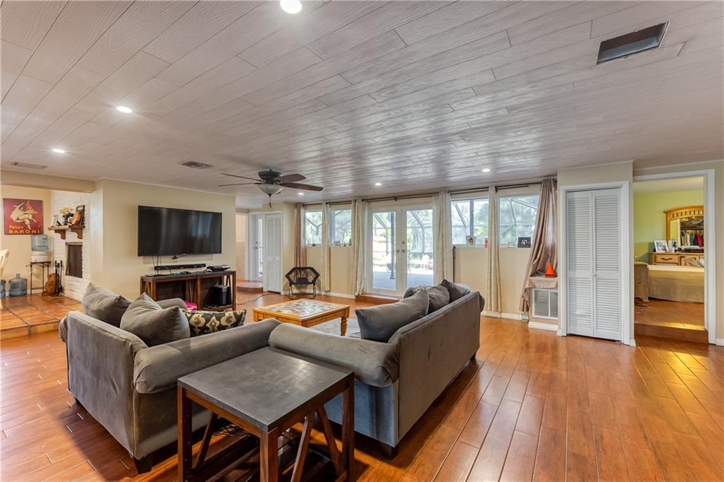 *4 bedroom 3 bathroom single-family, lake-front home, home with a double car garage* Situated on an over-sized lot (36,000 + square feet - approx 195 x 188) in a very desirable and centrally located neighborhood awaiting its new owner* Features include an open floor plan, an updated and spacious kitchen with pantry, impact windows and doors (2020), lots of storage space, high-efficiency washer and dryer, formal dining room with fireplace. Additional large storage shed (permitted and recently constructed) A light, bright, and airy large family room with french doors open to a large screened-in paver patio and a large backyard. Also includes a 15000-watt standby generator. Newer screened - in structure over the rear paver patio