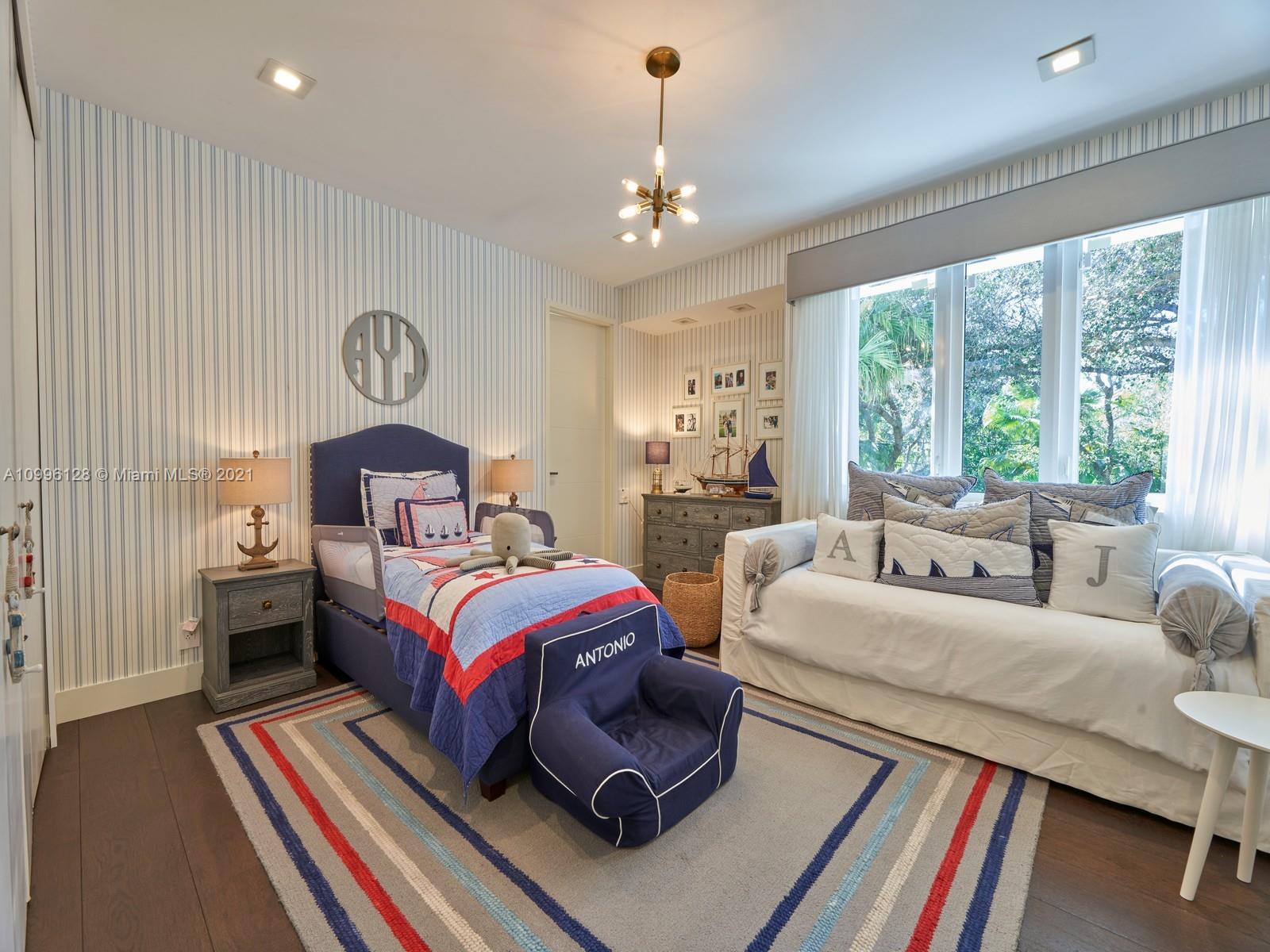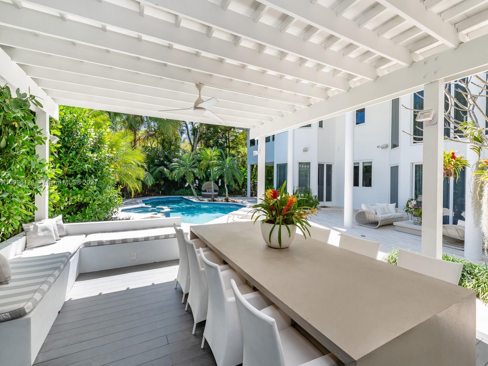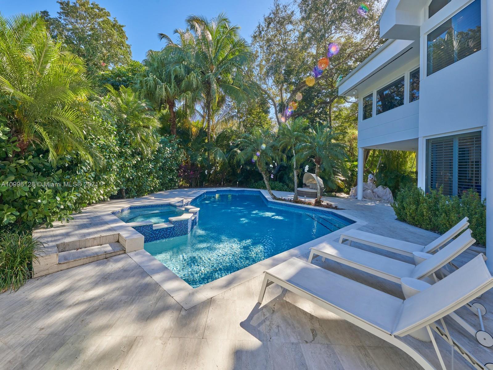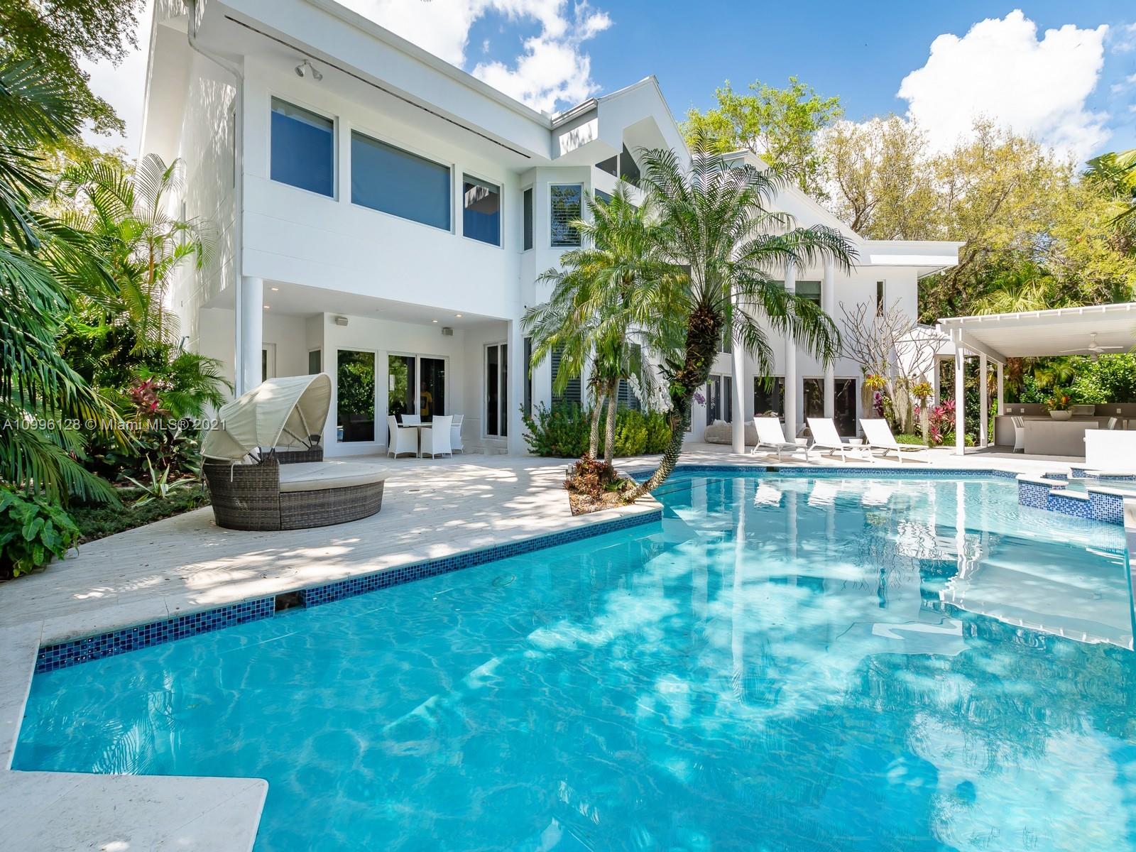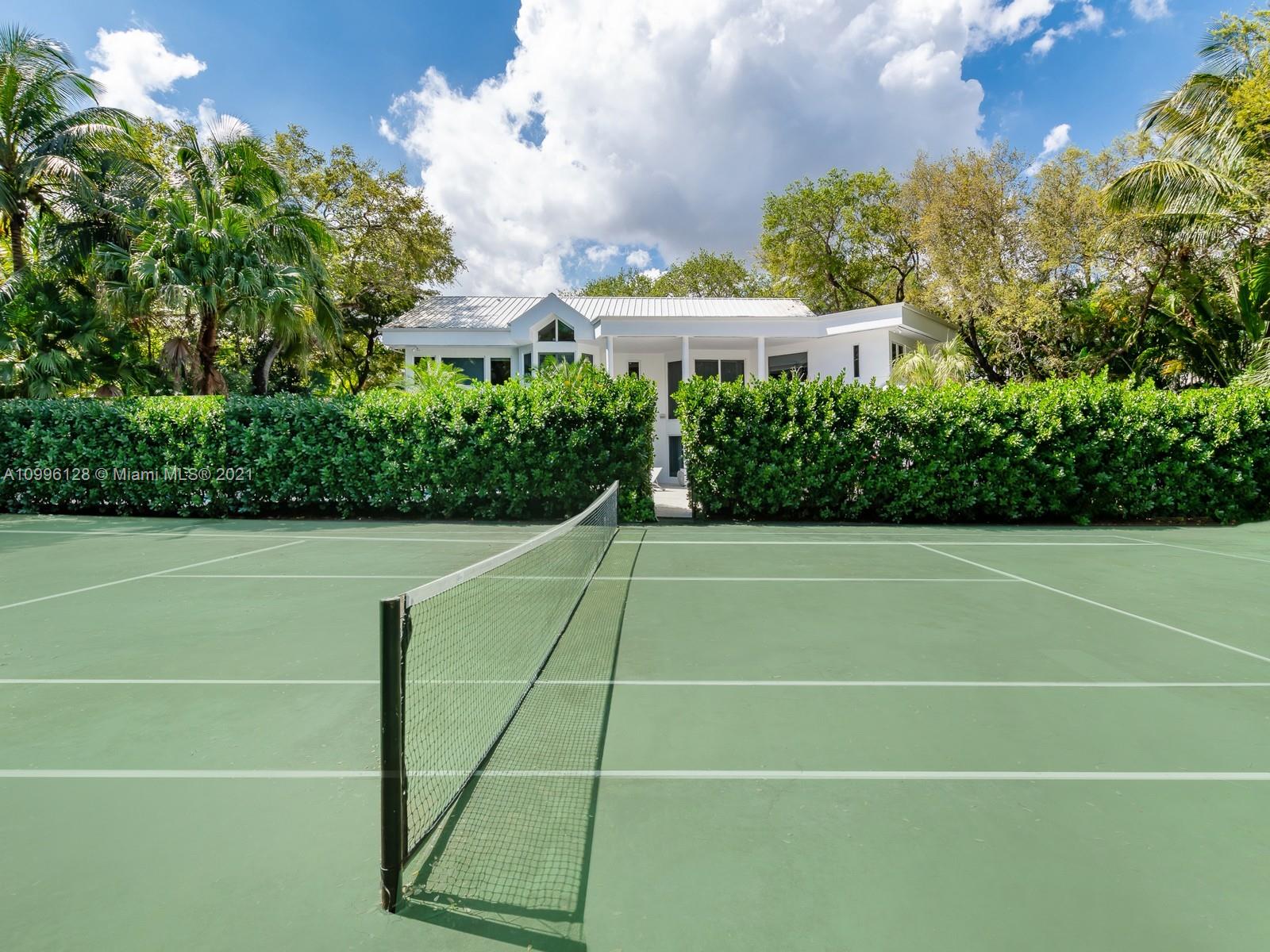 This MODERN Gem sits on nearly on a 38,161SF LOT nestled in a quiet enclave in CORAL GABLES.Take advantage of this unique opportunity to own a completely updated home featuring a tennis/basketball Ct,summer kitchen,pool+expansive garden made for entertaining.This beautiful home features 6 Bds,7 bths inside of its 8196 SF Total,w flr to ceiling windows which provide ample light throughout the house.On the 1st floor offers formal living+dinning room,completely updated kitchen w top of the line wolf appliances+built in Nespresso Machine,office,guest suite,family room.Upstairs offers master suite w oversized his+her closets,+3 adtl bedrooms.Equipped with tin roof,generator,2 car garage+2 carports,impact windows throughout,surround sound+security system,this gated home is a family’s dream!