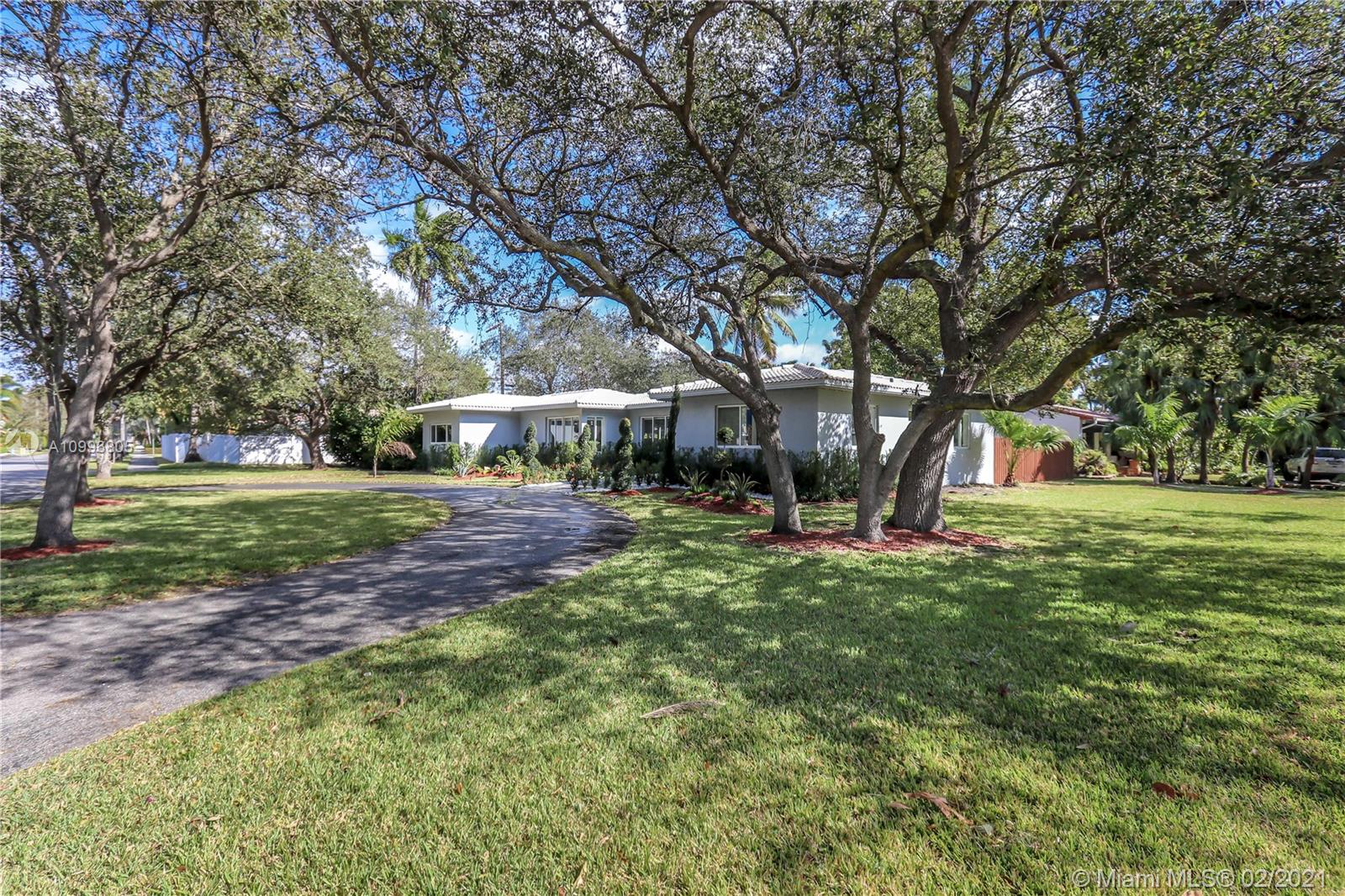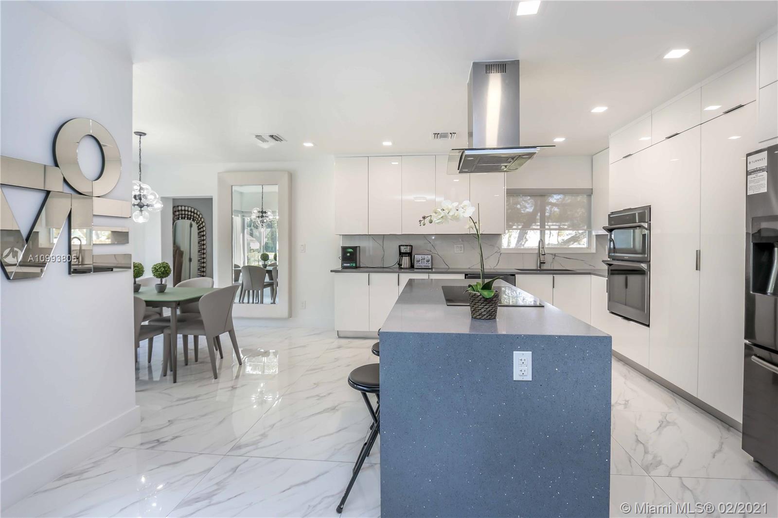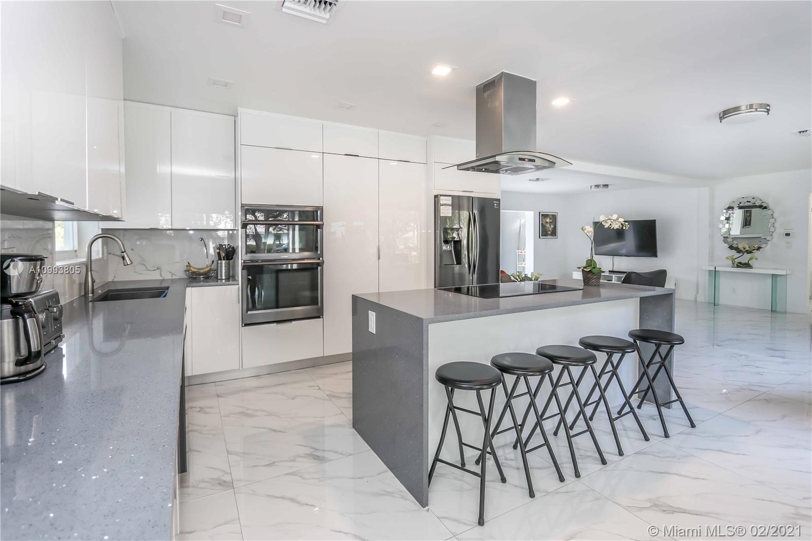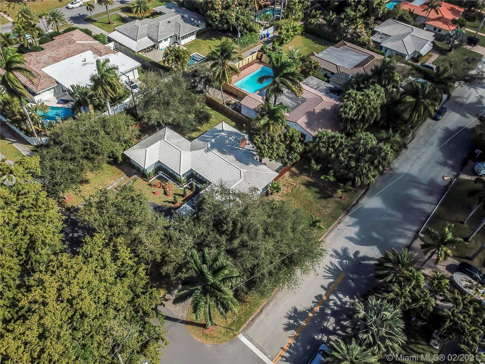 Great corner property, double lot, with over 15 thousand sq ft lot, this house features 4 Bedrooms, 3 Baths, updated kitchen and bathrooms, 32 x 32 porcelain tiles throughout, open concept split floorplan, kitchen with island, quartz countertop, new stainless steel Samsung appliances, white cabinetry, spacious laundry room, room for pool, circular driveway, fenced backyard, impact windows throughout, tankless water heater, roof redone in 2008, electrical redone in 2018 all new interior doors.