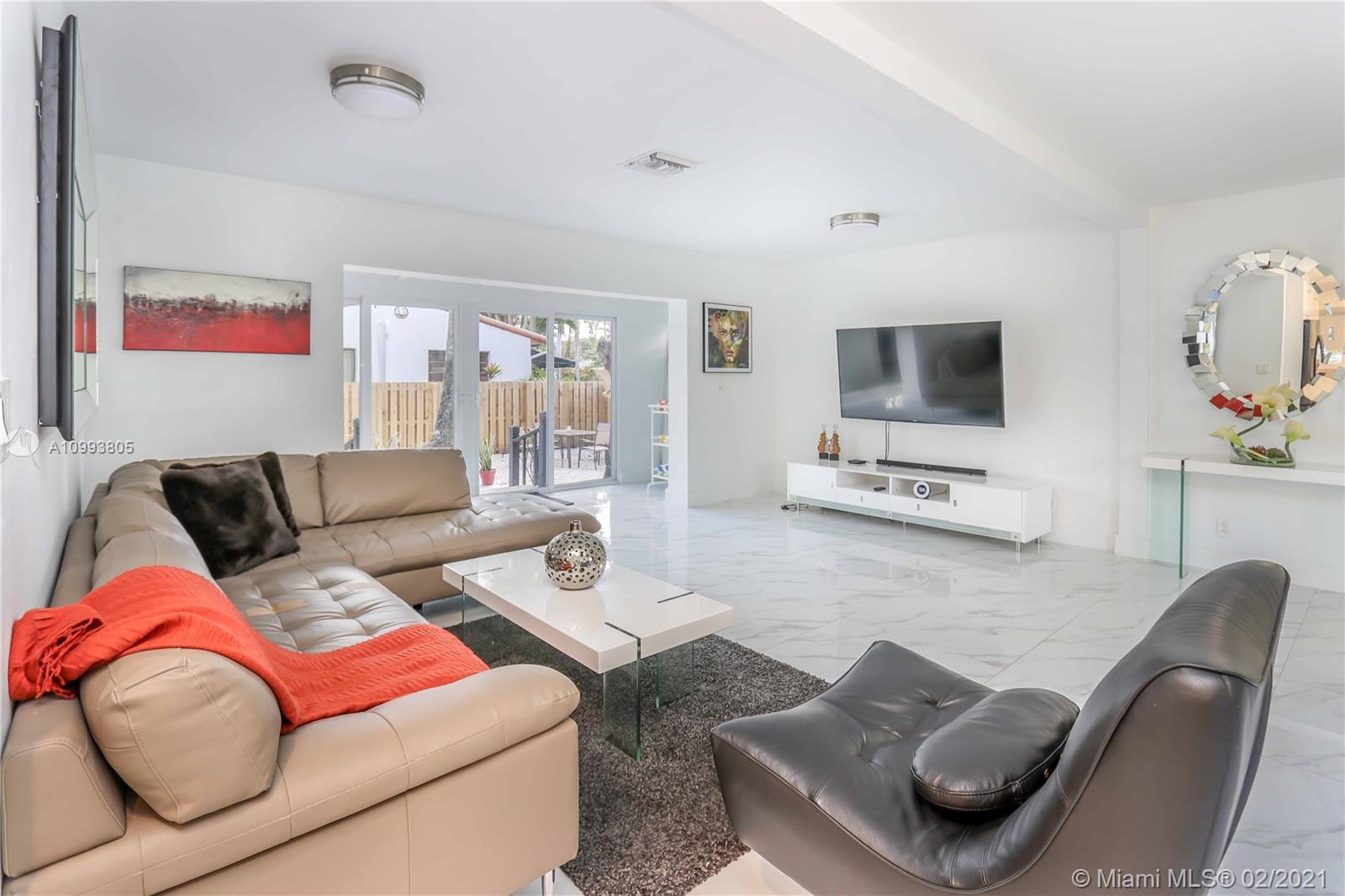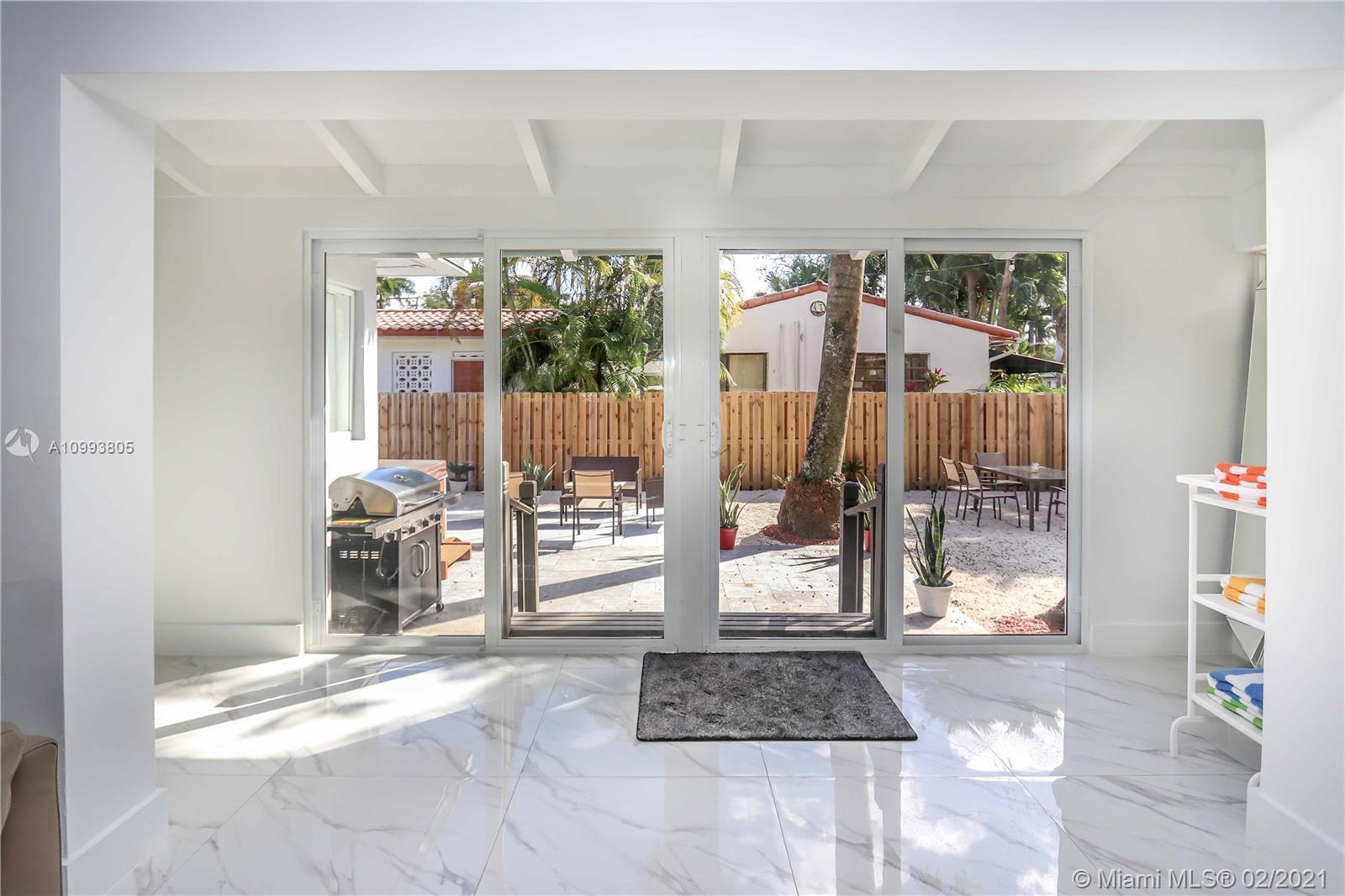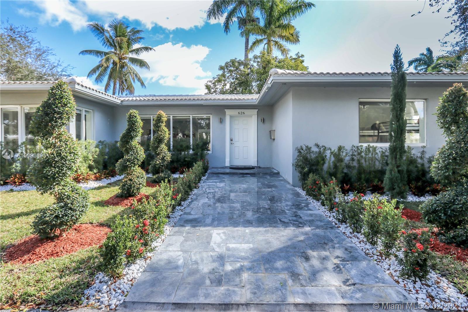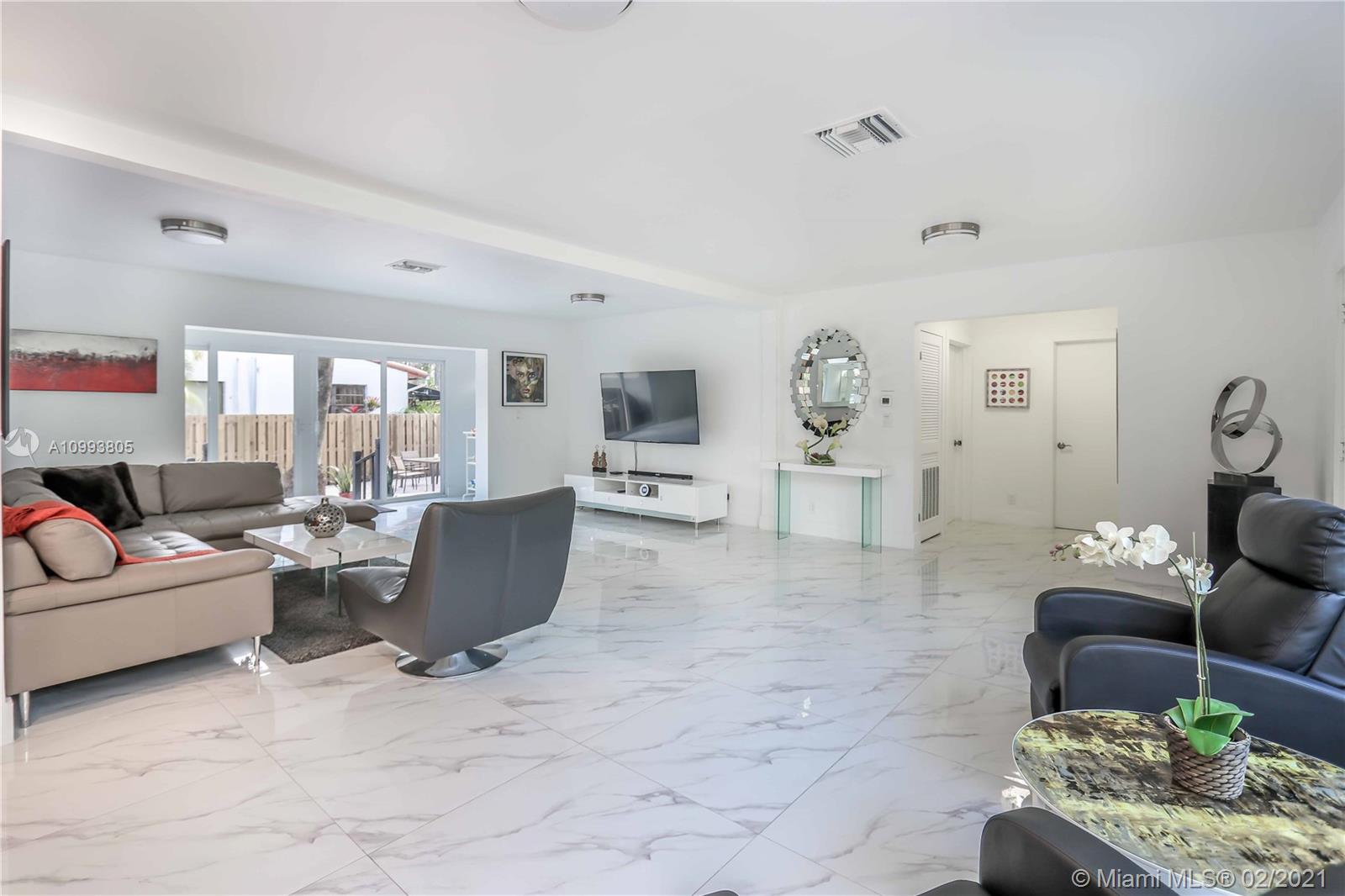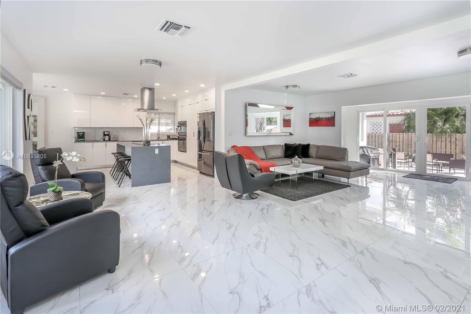 Great corner property, double lot, with over 15 thousand sq ft lot, this house features 4 Bedrooms, 3 Baths, updated kitchen and bathrooms, 32 x 32 porcelain tiles throughout, open concept split floorplan, kitchen with island, quartz countertop, new stainless steel Samsung appliances, white cabinetry, spacious laundry room, room for pool, circular driveway, fenced backyard, impact windows throughout, tankless water heater, roof redone in 2008, electrical redone in 2018 all new interior doors.