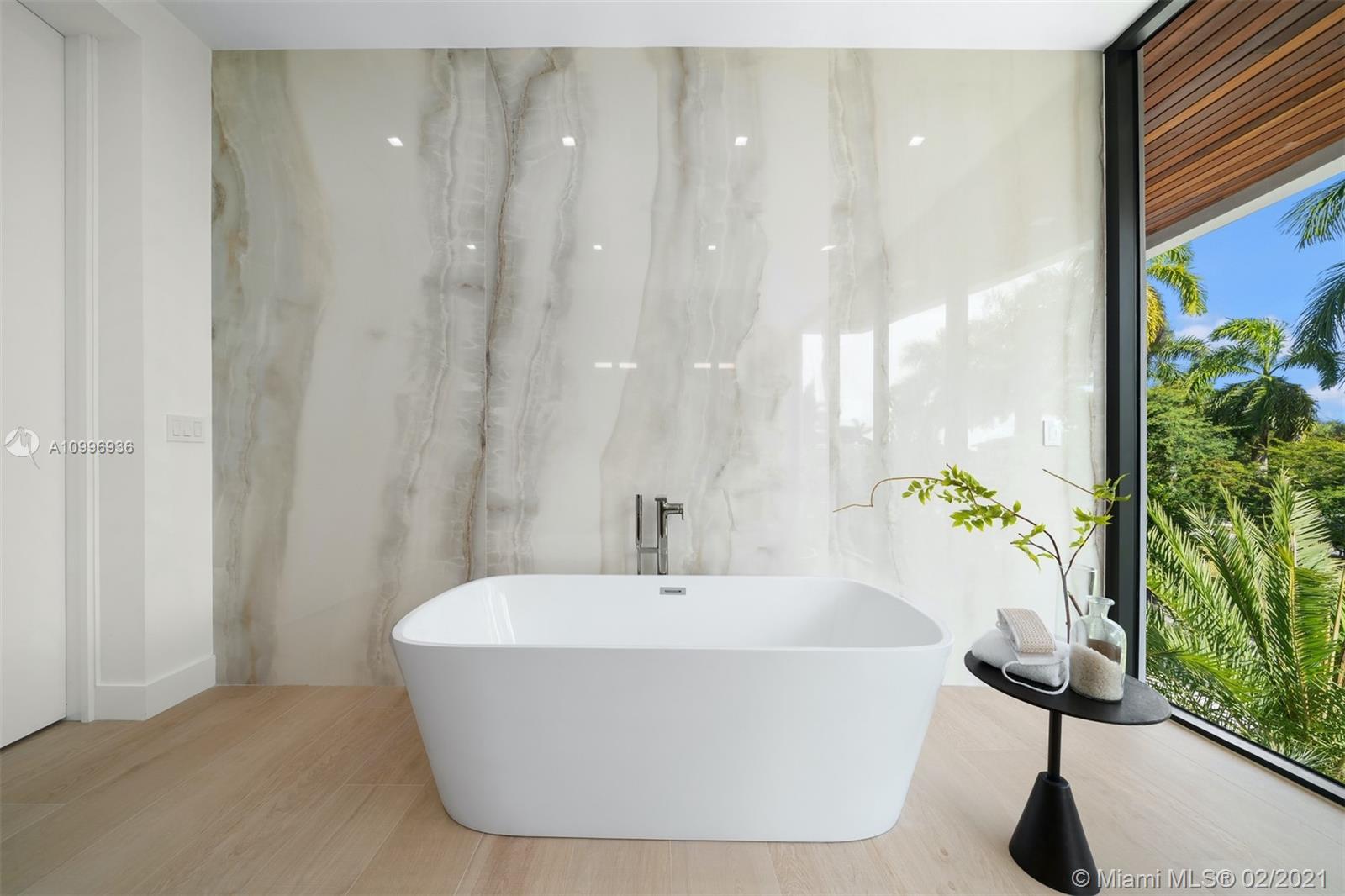 Enjoy being the first to live in this new construction modern oasis, completed in 2021. Located on guard gated Hibiscus Island, this 5BR/5+2BA features direct park views and private 9,750 SF oversized lot. This artfully appointed 4,434 Sf home boasts soaring ceiling heights, open living and chef’s kitchen, top of the line finishes and views of the backyard and sparkling pool throughout. This home epitomizes casual elegance & effortless indoor/outdoor living, w/ glass walls of hurricane impact floor-to-ceiling windows & sliding doors, opening up to a covered outdoor living and dining room. Primary suite w/ large balcony, luxurious bath with soaking tub and oversized shower+ walk-in closet. Multiple balconies & a spiral staircase leading to a rooftop allow for outdoor lounging throughout!