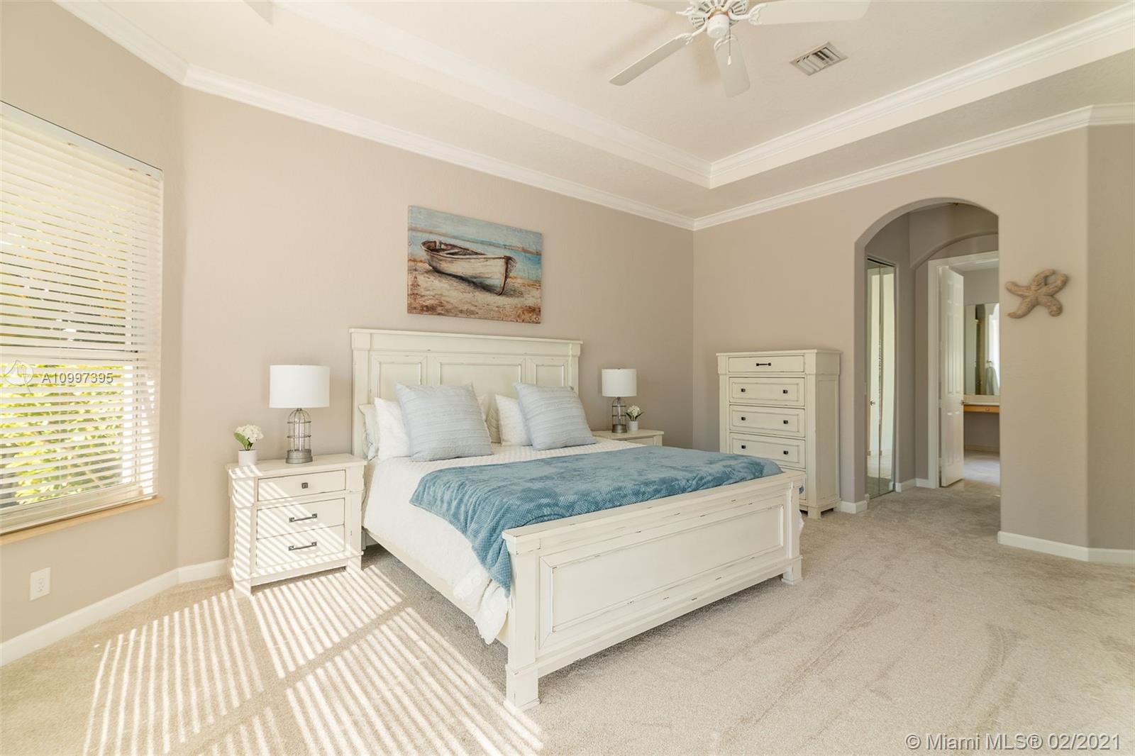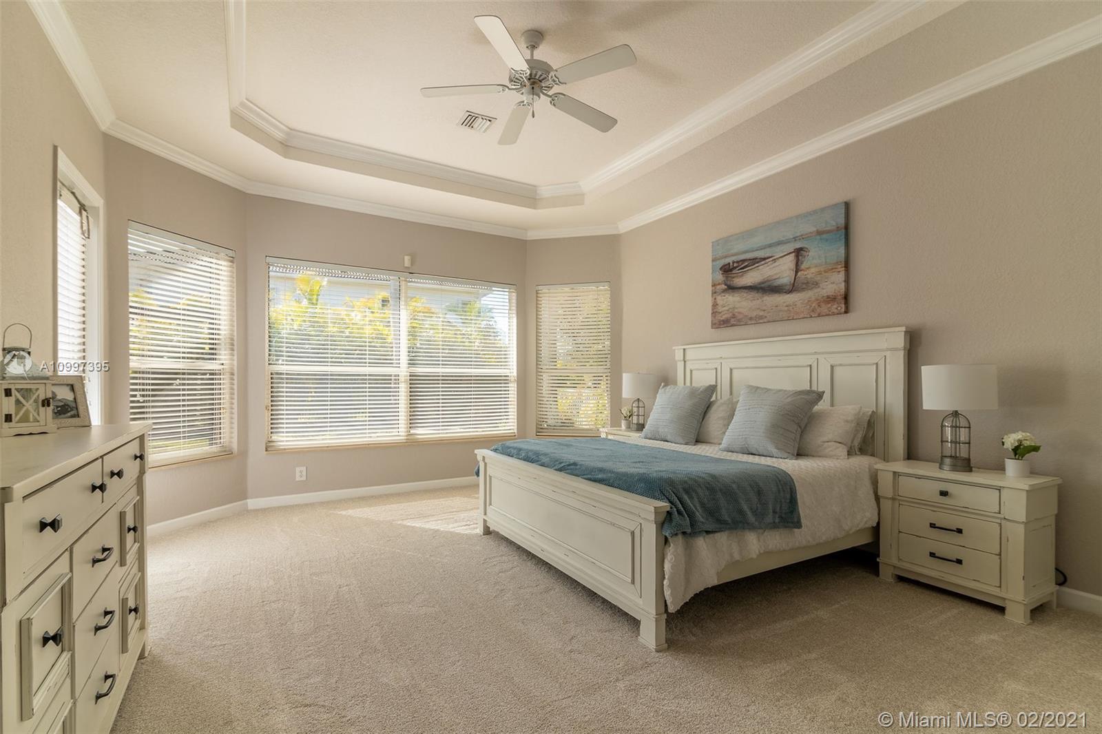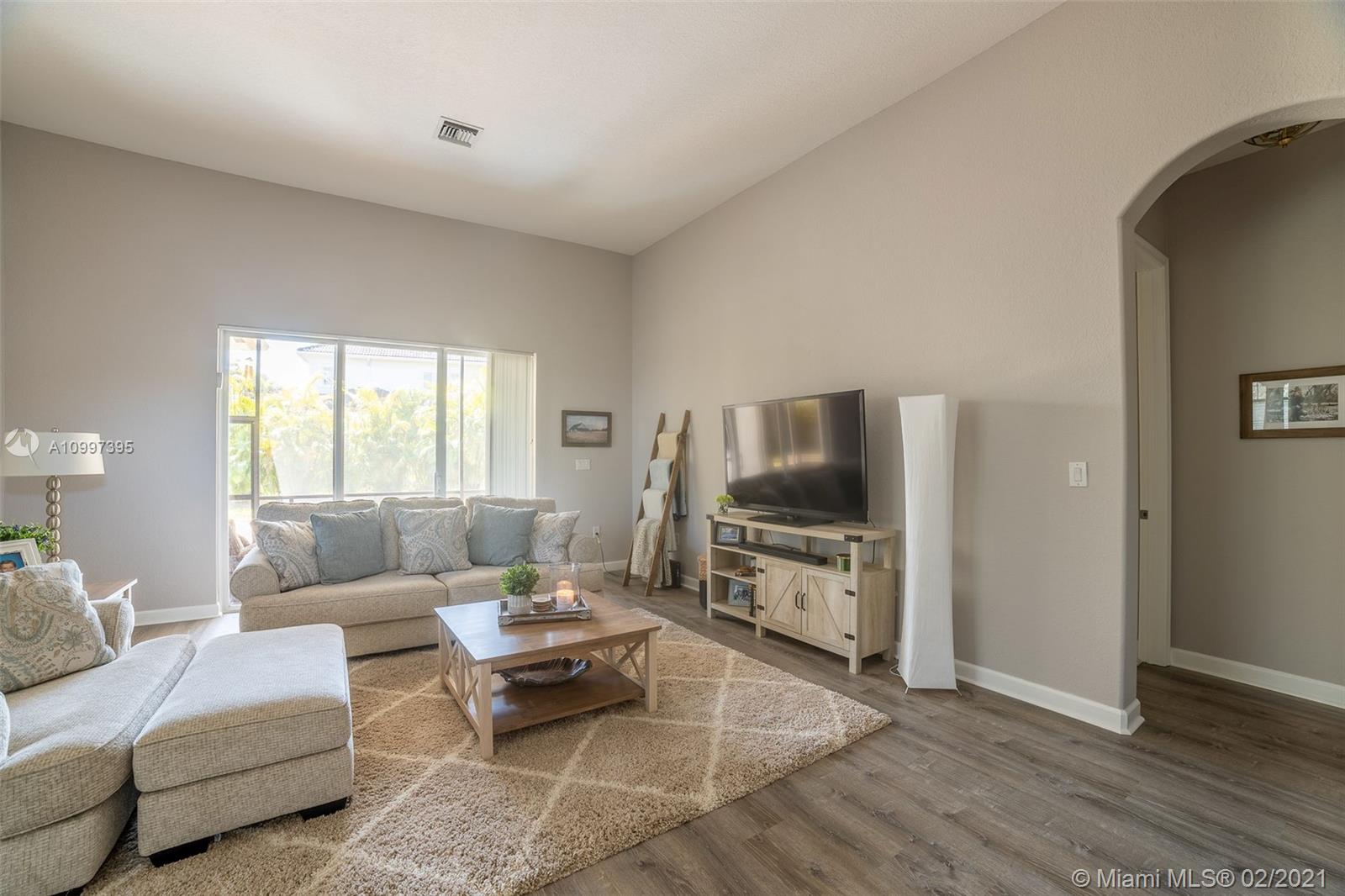 Stunning one-story residence located inside of the prestigious community of Sunset Lakes. Enjoy the privacy of living in a corner lot home that is situated on an oversized 11,889 sq. ft. lot. As you walk inside, you will be amazed by the 12' volume ceilings in all living areas of the property, and the privacy of having a split bedroom floor-plan that separates the master bedroom from the rest of the bedrooms in the home. New roof installed June 2020, freshly painted in August 2020, New carpet and new vinyl flooring in living area, hallway, and dining room., the pool has a heating and cooling system. Water filtration system, open family room with access to the outdoor screened-in terrace, 1/2 bathroom that serves as a cabana bath with direct access to the patio/pool area.