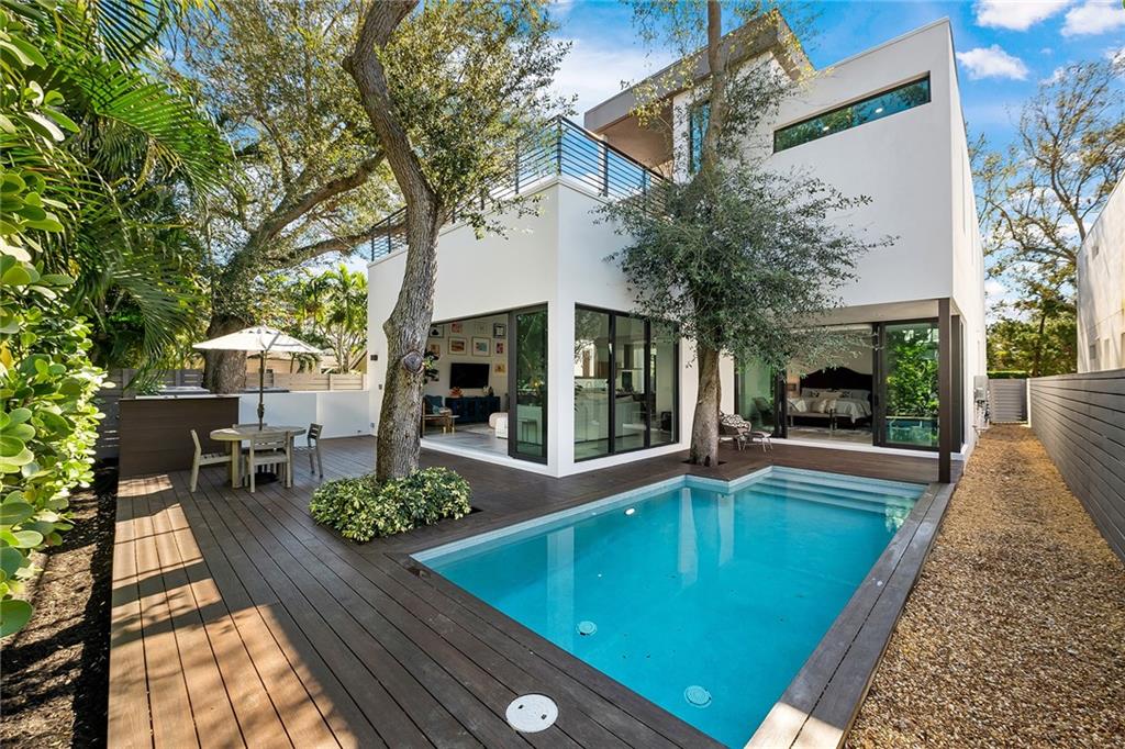 Located in the heart of Rio Vista! Fabulous contemporary style home (built in 2017) offering 5 bedrooms, 5 baths/2 half baths has walls of glass and soaring ceilings which allows for wonderful natural light creating a tranquil ambience throughout living areas. Sophisticated kitchen w/grand island, gas cooktop, top of the line Sub Zero/Wolf appliances. Sumptuous master bedroom has floor to ceiling sliders which open on to the beautiful patio/pool area with tree lined backyard and privacy fence. All guest bedrooms on second floor are ensuite. Laundry room on second floor along with a rooftop terrace perfect for private entertaining includes its own powder room. All impact windows and doors. Gorgeous cascading waterfall wall at front entry. A true pleasure to show this spectacular home.