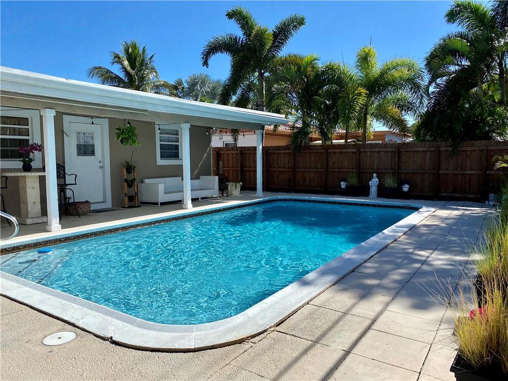 Beautifully remodeled, spacious home in desirable Harbor Village. This 3 bedroom, 3 full bath, plus Full size office (was 4th bedroom), is located on a great street, just blocks from restaurants, beach and all the activities that trendy Pompano Beach has to offer. Kitchen completed & pool resurfaced in 2019. Baths and flat roof all redone in the past 3 years. CAST IRON PIPES WERE REPLACED under home for peace of mind! Garage converted into spacious in-law suite with walk-in closet and private bath. Light abounds in this open floorplan where cook is always part of the action. Fenced yard offers security and plenty of privacy around the sparkling pool. Circular drive and additional driveway area means that parking is abundant. This is a fabulous place to call home. Come see!
